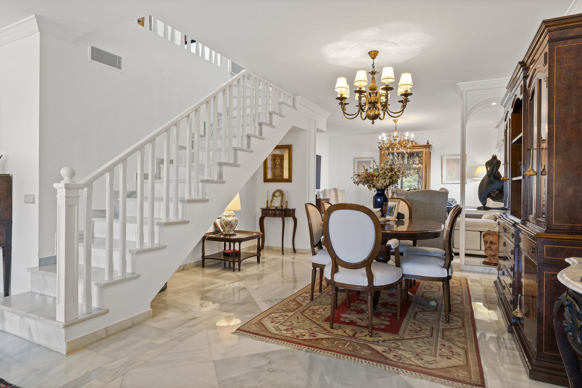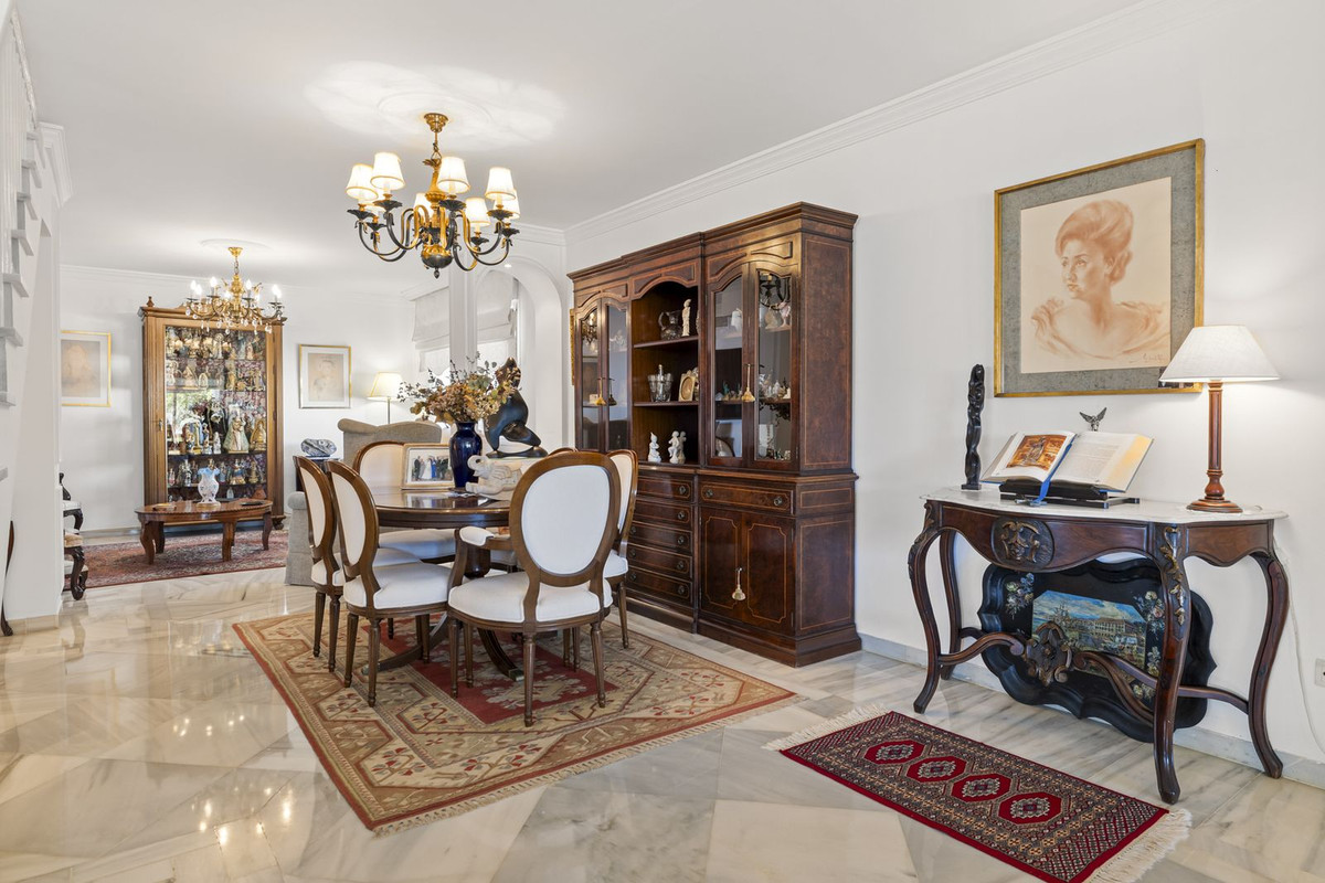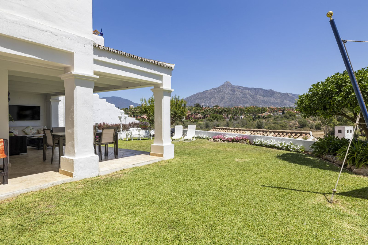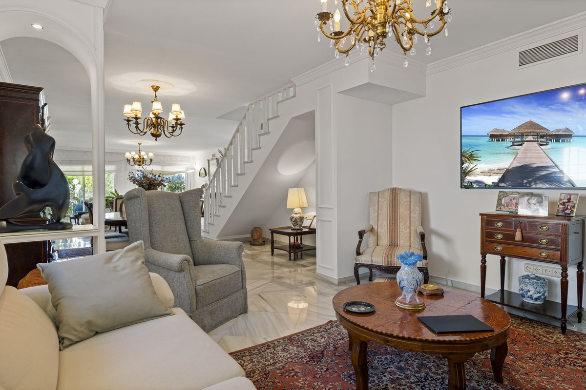Spacious townhouse just steps from Puerto Banús and the beach, featuring La Concha views, private garden, large terraces, and three en-suite bedrooms. Includes fireplace, modern kitchen with Bosch appliances, private parking, and access to a communal swimming pool.