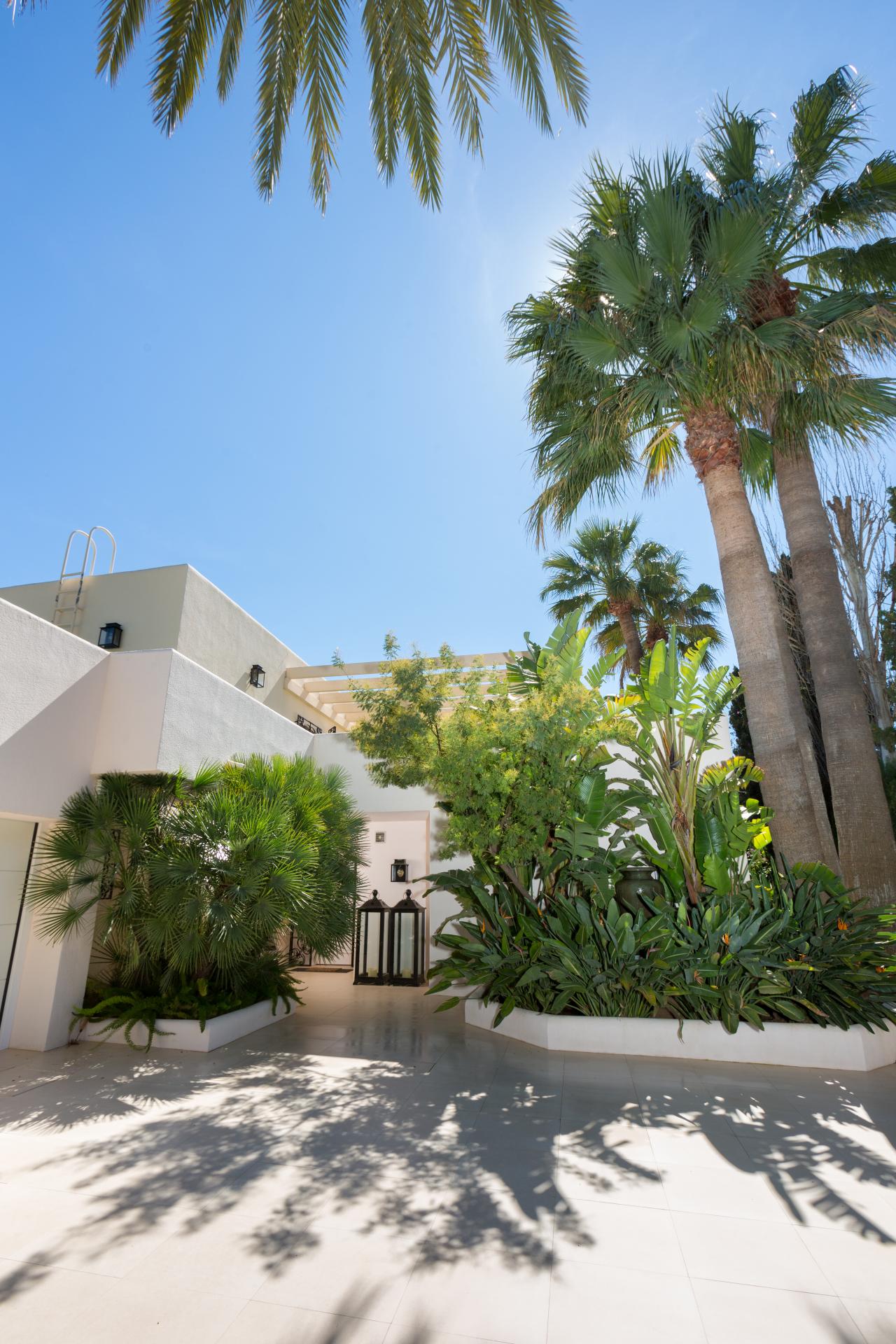 PROPERTY DETAILS Completely reformed in 2019 this private and stunning property has been designed with large glass expanses to frame the unobstructed views of the sea. No expense has been spared in creating this beach front villa which is evident in the premium materials, high end appliances and luxurious décor. Sleek elegant styling that includes a welcoming hallway with marble flooring and staircase with a hand forged decorative wrought iron balustrade and light fittings that become wall art, sliding doors open to the large open layout lounge with an open fire, a bespoke cocktail bar perfect to serve guests pre dinner drinks before dining in the formal dining area with a feature fireplace and floor to ceiling glass expanses to enjoy the stunning sea views and which open to the outside terracing and pool oasis area, a gourmet kitchen that is a chef´s delight with integrated appliances and an adjoining casual dining area with a feature fireplace, for those looking to work from home there is a private office which could also be used a cinema/games room, 4 bedrooms with 4 ensuite bathrooms that includes a Miami inspired guest bedroom and the fabulous master bedroom suite with a comfortable sitting area, bespoke his and hers walk-in dressing room and decadent ensuite bathroom with a separate water closet. Did we mention the mirrored gymnasium with a steam room, Finnish sauna, and the treatment/massage/beauty room for all year-round wellness, relaxing and some well-deserved pampering? To complete what is your very own private paradise step outside to enjoy the pool oasis, with its own private small beach, the pool is heated for out of season/winter months, and an abundance of al fresco areas for dining and relaxing and for hosting the most amazing parties, the Moroccan inspired roof terrace has a decked dining area with Pergola and a chill out lounge facing the sea.