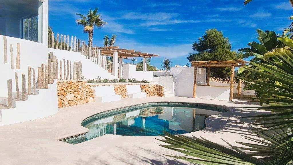 PROPERTY AT A GLANCE Step into your own slice of Ibiza paradise with this stunningly renovated villa boasting a contemporary white aesthetic and sea views. Every inch of this property, from the pool to the terracing is new and has been meticulously designed to embody the essence of Mediterranean living.