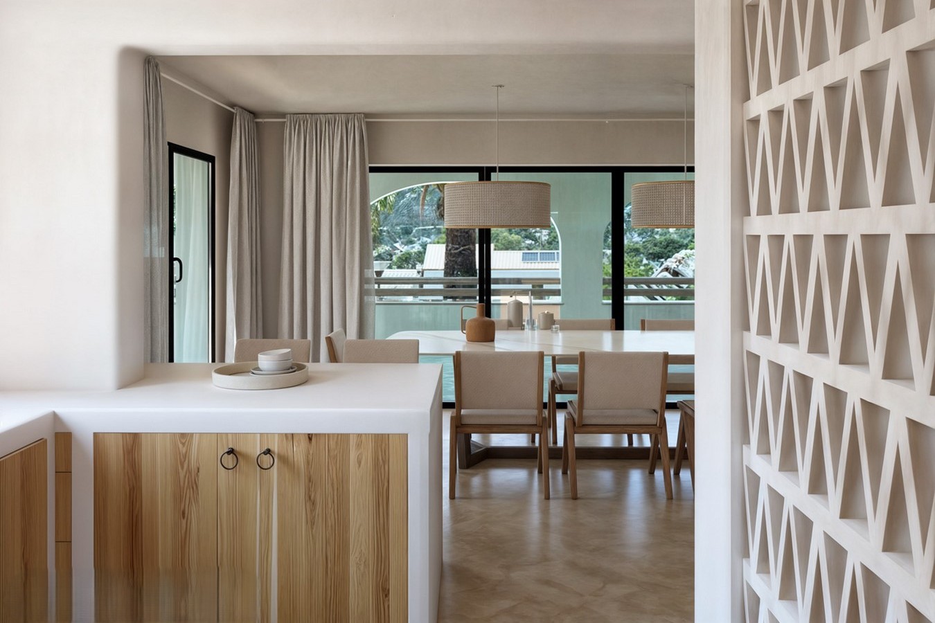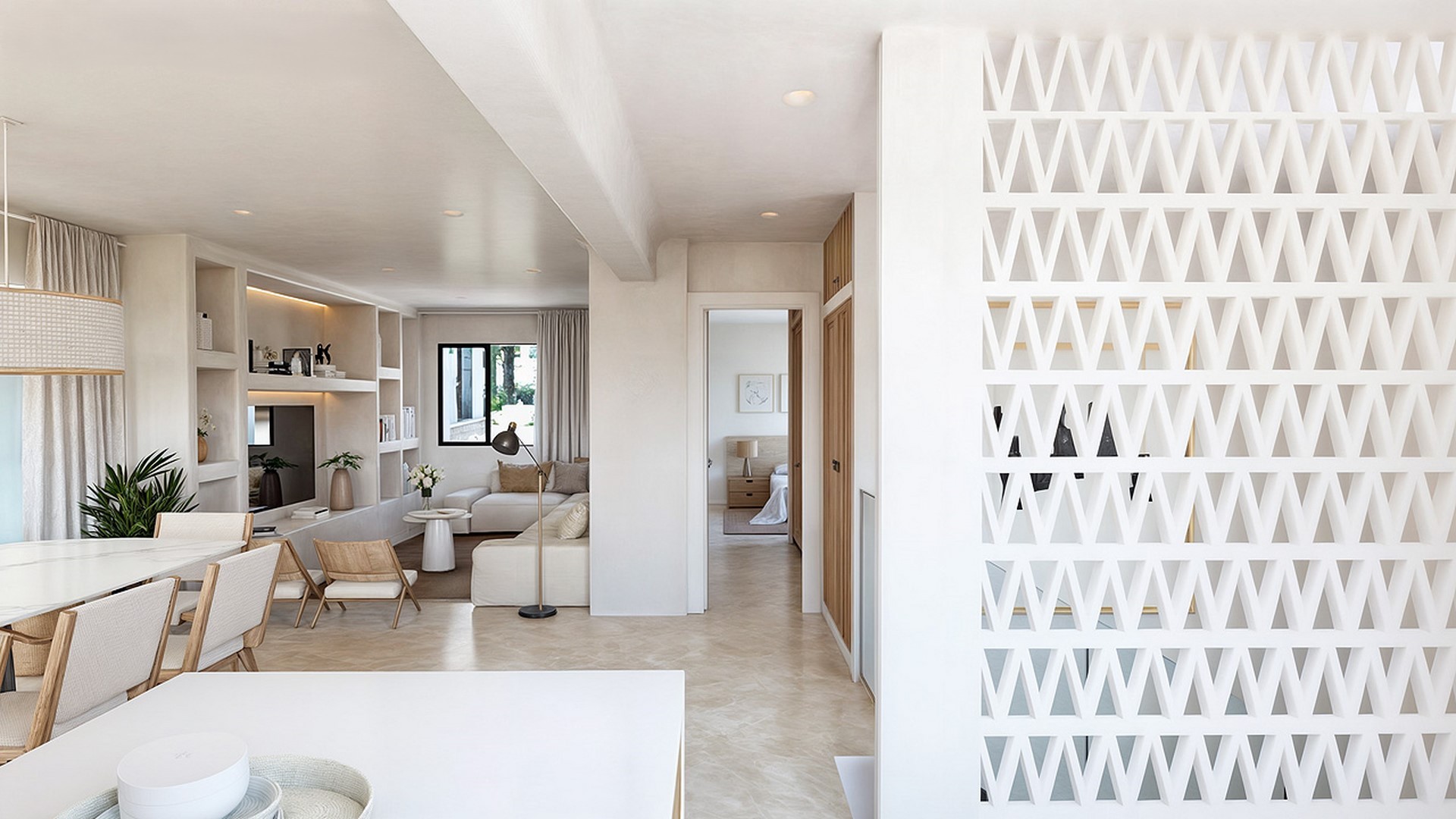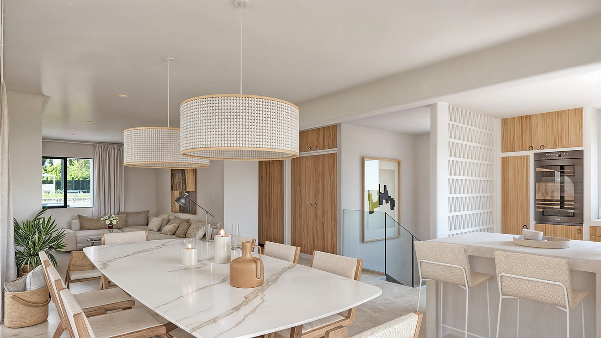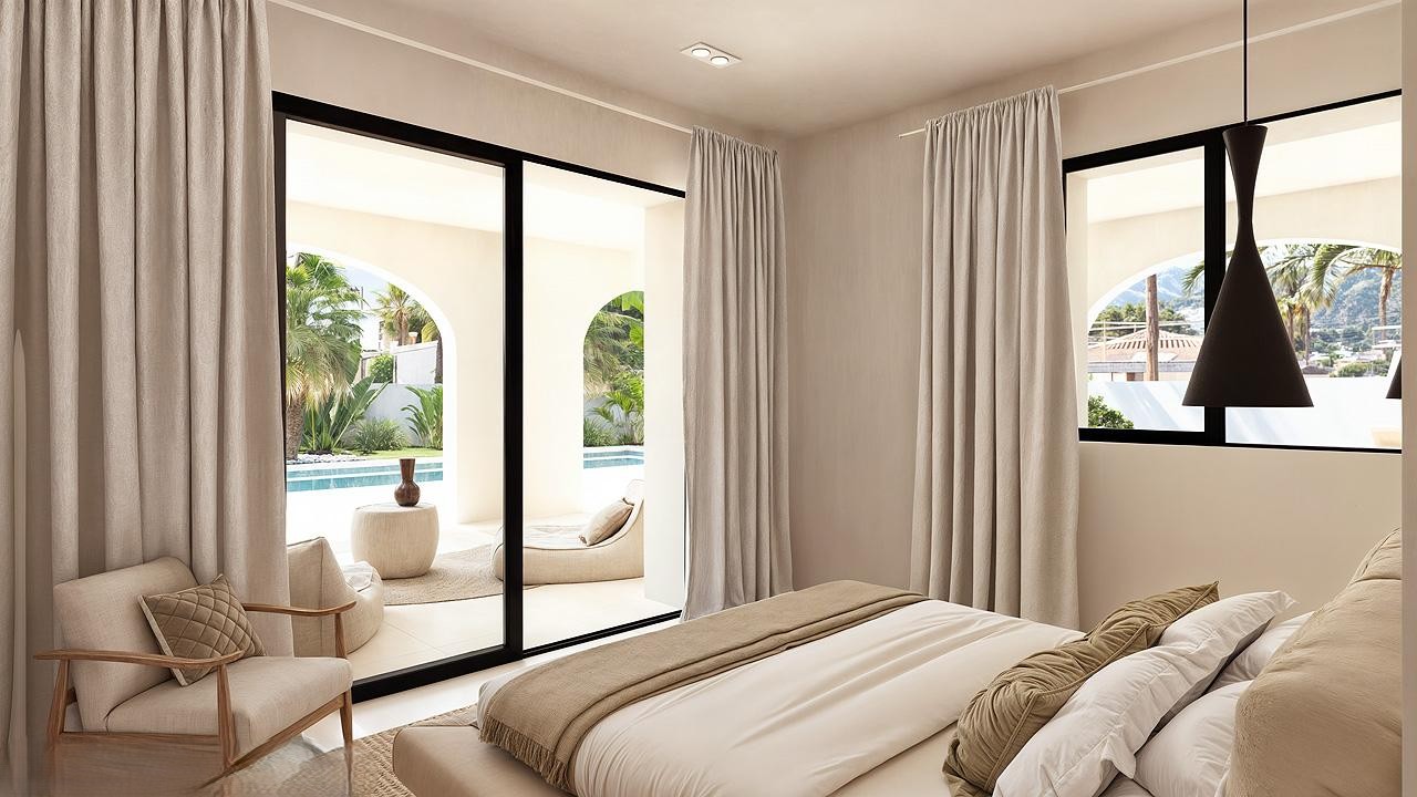 PROPERTY DETAILS Architecture & Design This newly constructed villa reflects the essence of Mediterranean Ibizan design, defined by its clean lines, whitewashed façade, natural wood accents, and elegant arches. Traditional charm meets modern precision, offering a timeless aesthetic that sits harmoniously within the lush Costa Blanca North landscape. The property is distributed across two levels, with a harmonious internal staircase connecting each floor. Every detail has been thoughtfully considered to enhance flow, light, and the visual impact of the southwest-facing orientation.