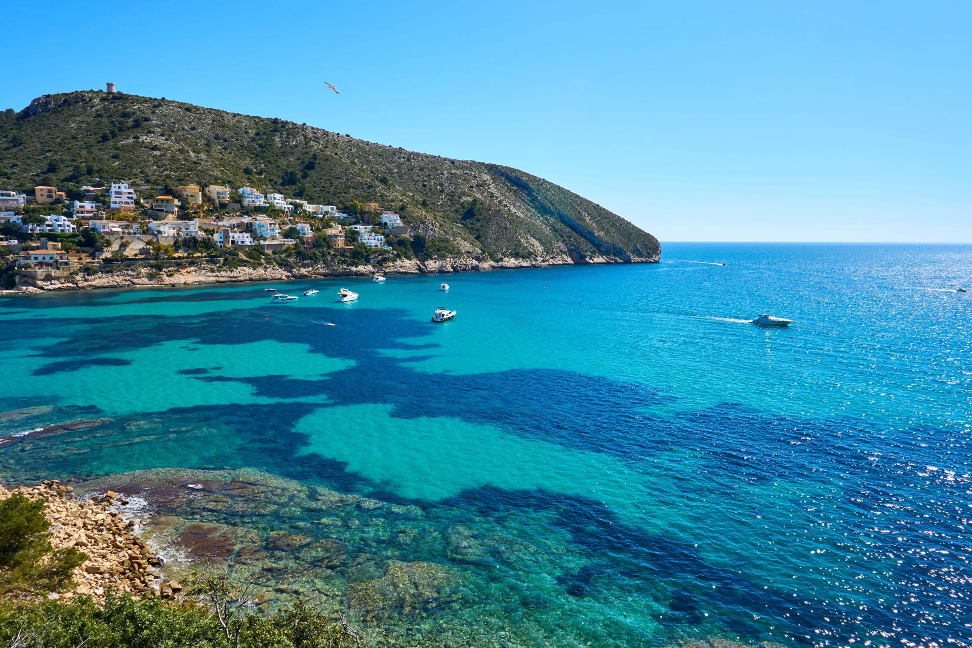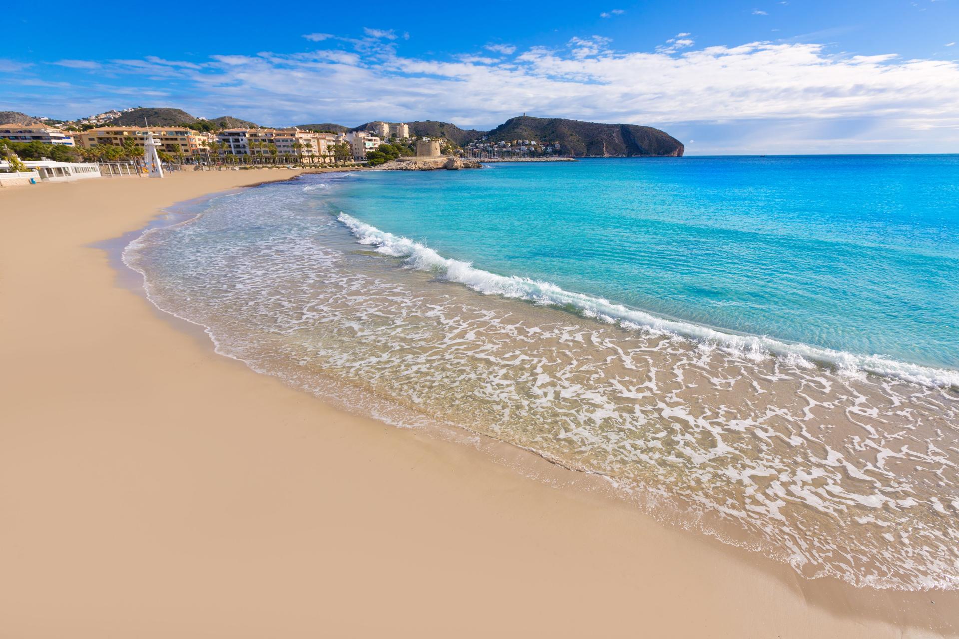 A picturesque small coastal town it has eight beaches including the blue flag beach of El Portet, a beach of fine sand with crystal clear turquoise waters, small and horseshoe shaped it is one of the most attractive areas in Moraira often compared to a Caribbean Bay.