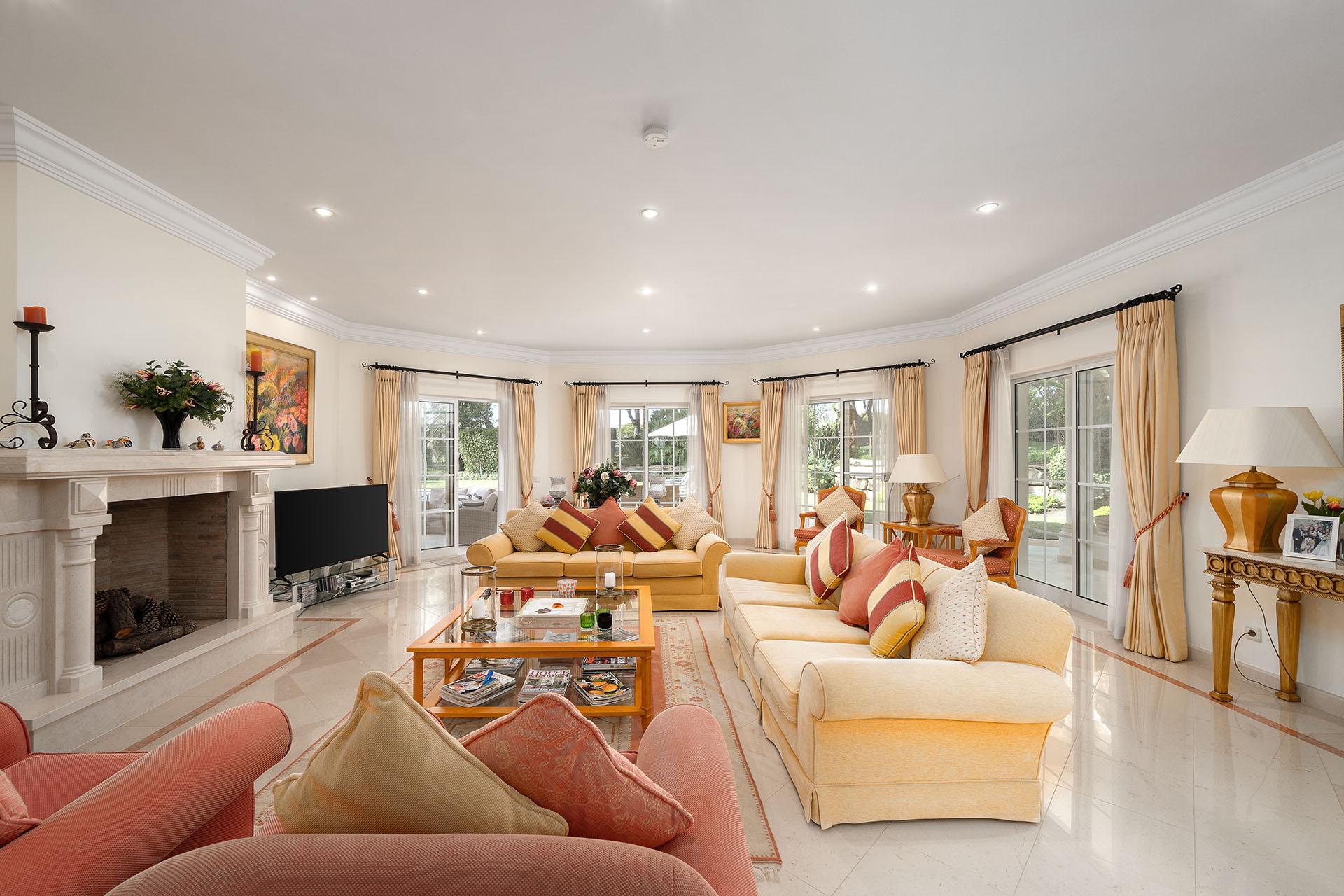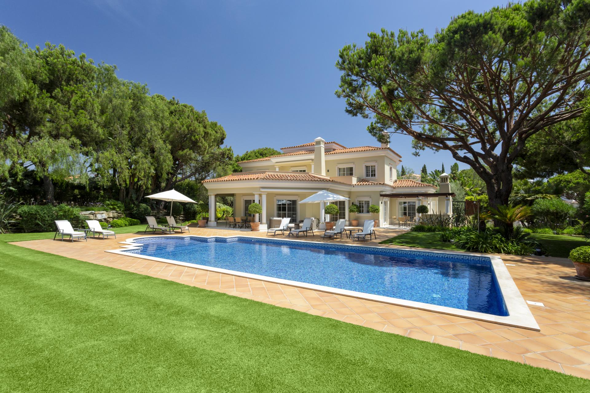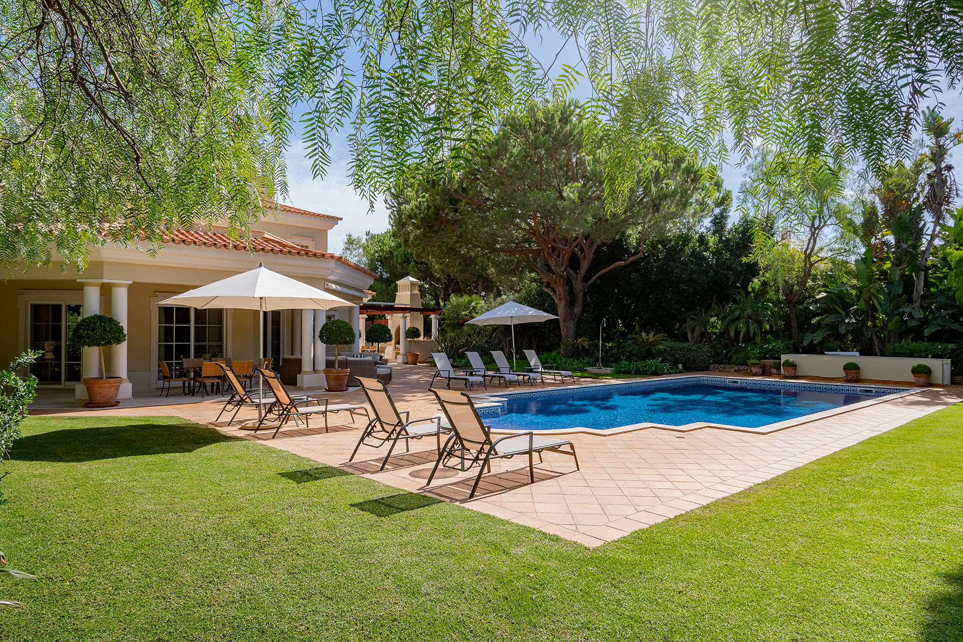 An immaculate home offering generous accommodation with 4 bedrooms and 4 bathrooms filled with natural light. Living space includes a large, sun-filled southwest-facing living room with adjoining kitchen and dining area, under-floor heating as well as a wonderful terrace among its many highlights. The villa has a large basement with games room, storage and garage area. Built in 2003, this impressive property is set within a mature landscaped garden with impressive grounds, a wonderful heated swimming pool, covered terraces and plenty of privacy within its ample plot. Offering amazing views over the Quinta do Lago North Course and tranquil lake, making this remarkable property a dream place to reside, both inside and out.