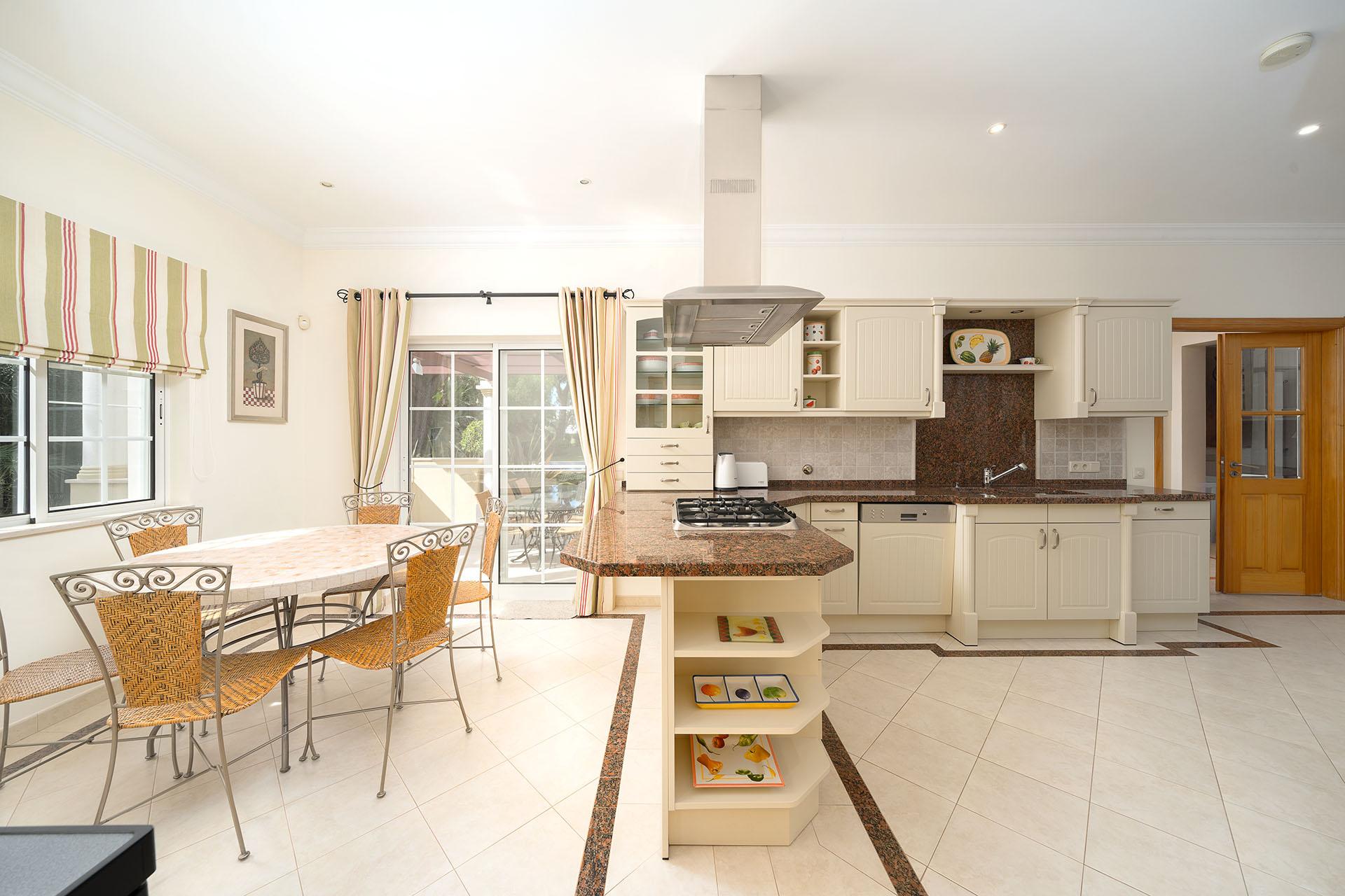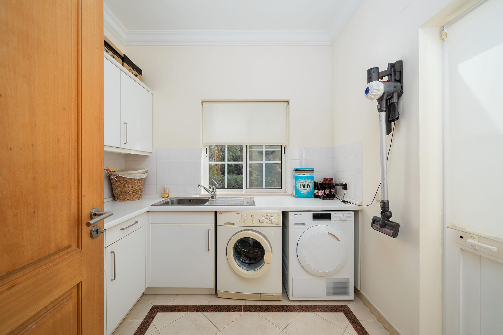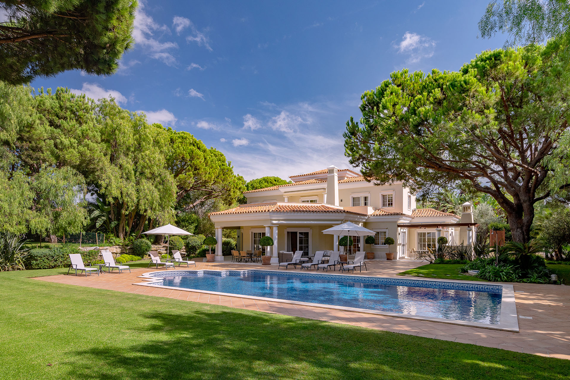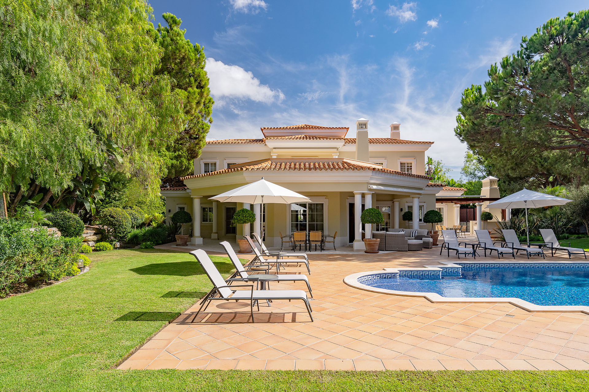 An immaculate home offering generous accommodation with 4 bedrooms and 4 bathrooms filled with natural light. Living space includes a large, sun-filled southwest-facing living room with adjoining kitchen and dining area, under-floor heating as well as a wonderful terrace among its many highlights. The villa has a large basement with games room, storage and garage area. Built in 2003, this impressive property is set within a mature landscaped garden with impressive grounds, a wonderful heated swimming pool, covered terraces and plenty of privacy within its ample plot. Offering amazing views over the Quinta do Lago North Course and tranquil lake, making this remarkable property a dream place to reside, both inside and out.