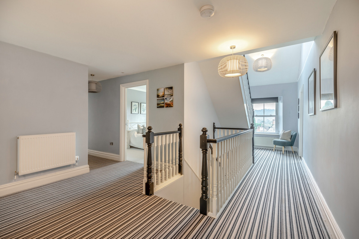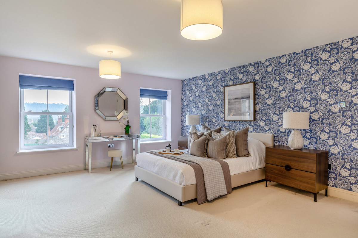 The first floor offers a truly indulgent principal bedroom suite, complete with a dressing room and chic shower room. Two additional double bedrooms, both with countryside views, are complemented by a gym (or optional bedroom) and a family bathroom finished in Italian marble.