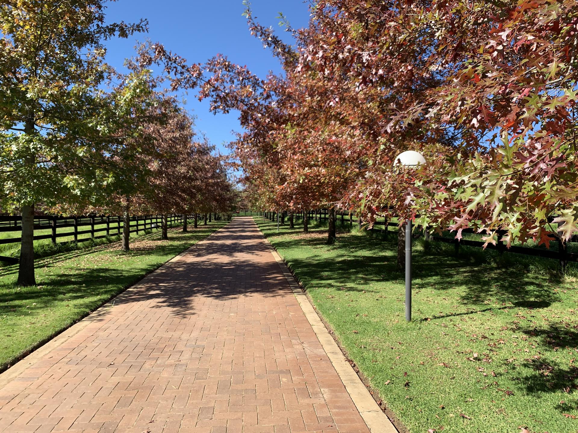 Lunging ring, 5 irrigated paddocks, and wide, landscaped riding paths.