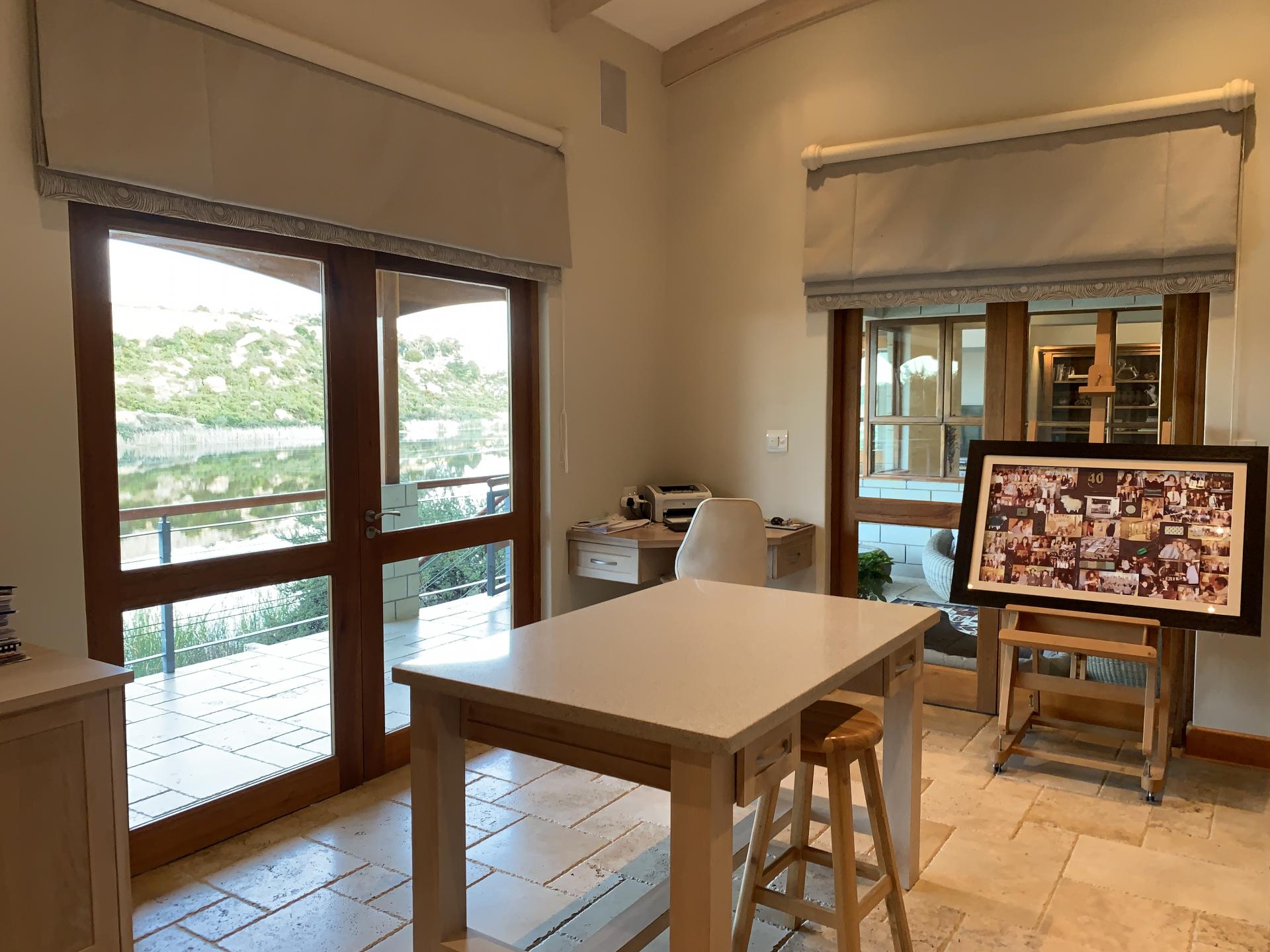 This 3-bedroom, double-storey sandstone manor blends seamlessly with its environment and offers panoramic views of the surrounding nature and water.