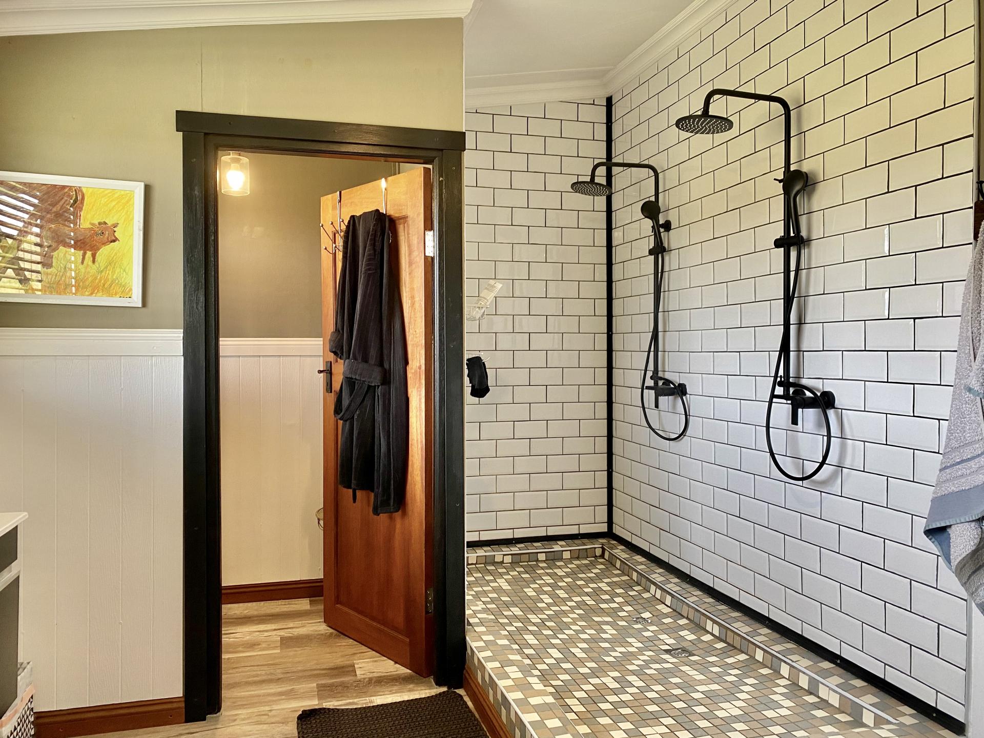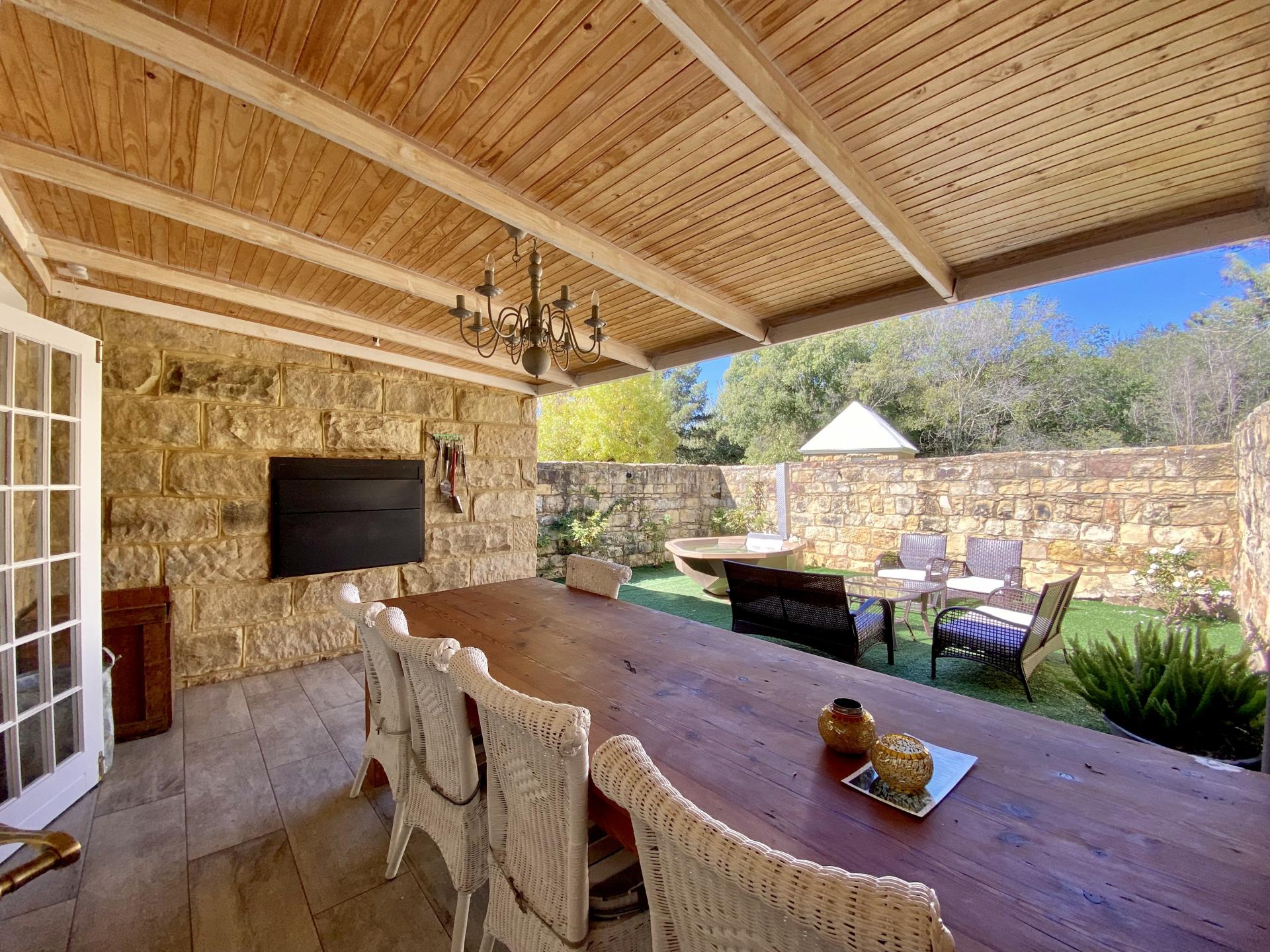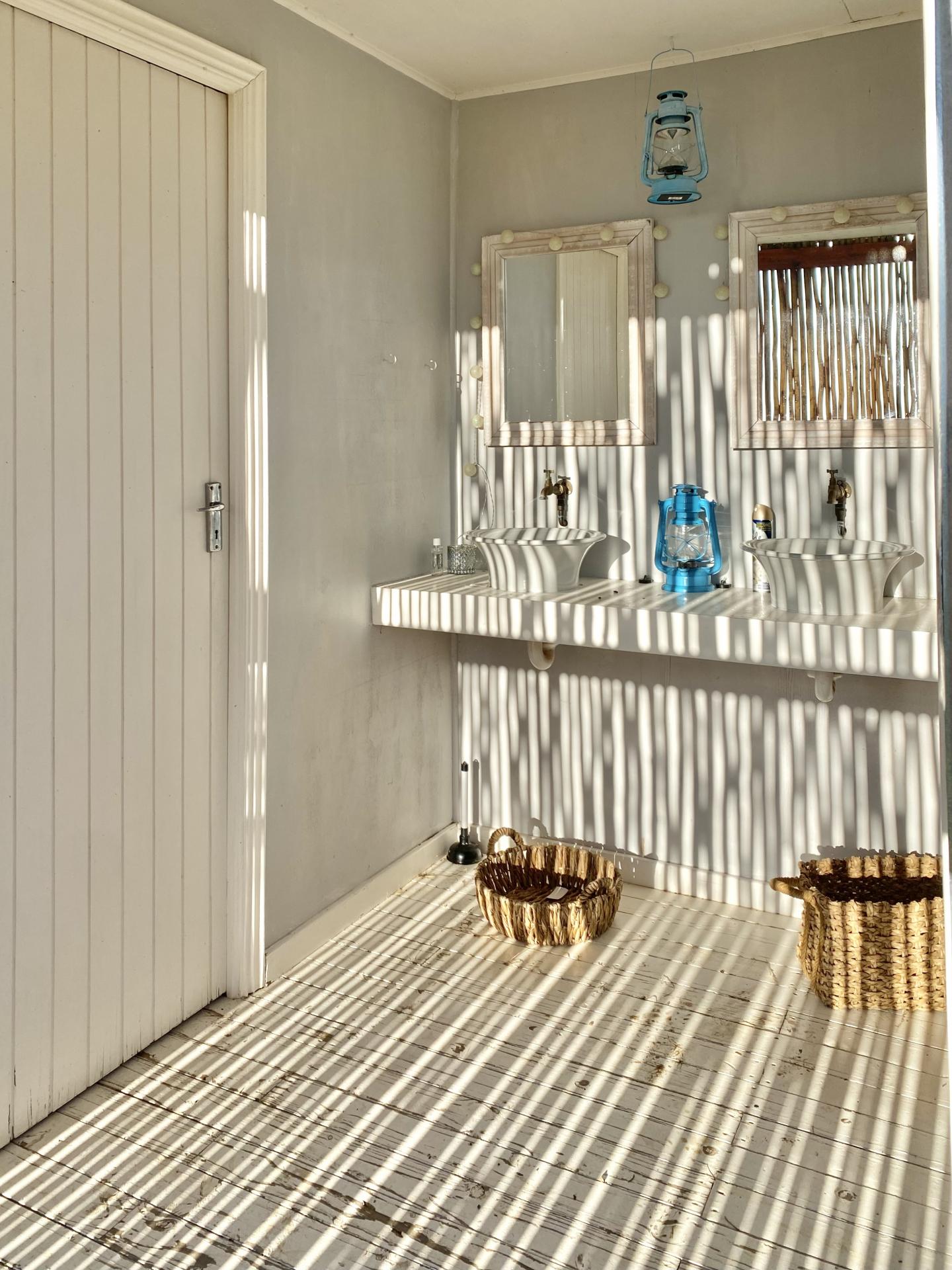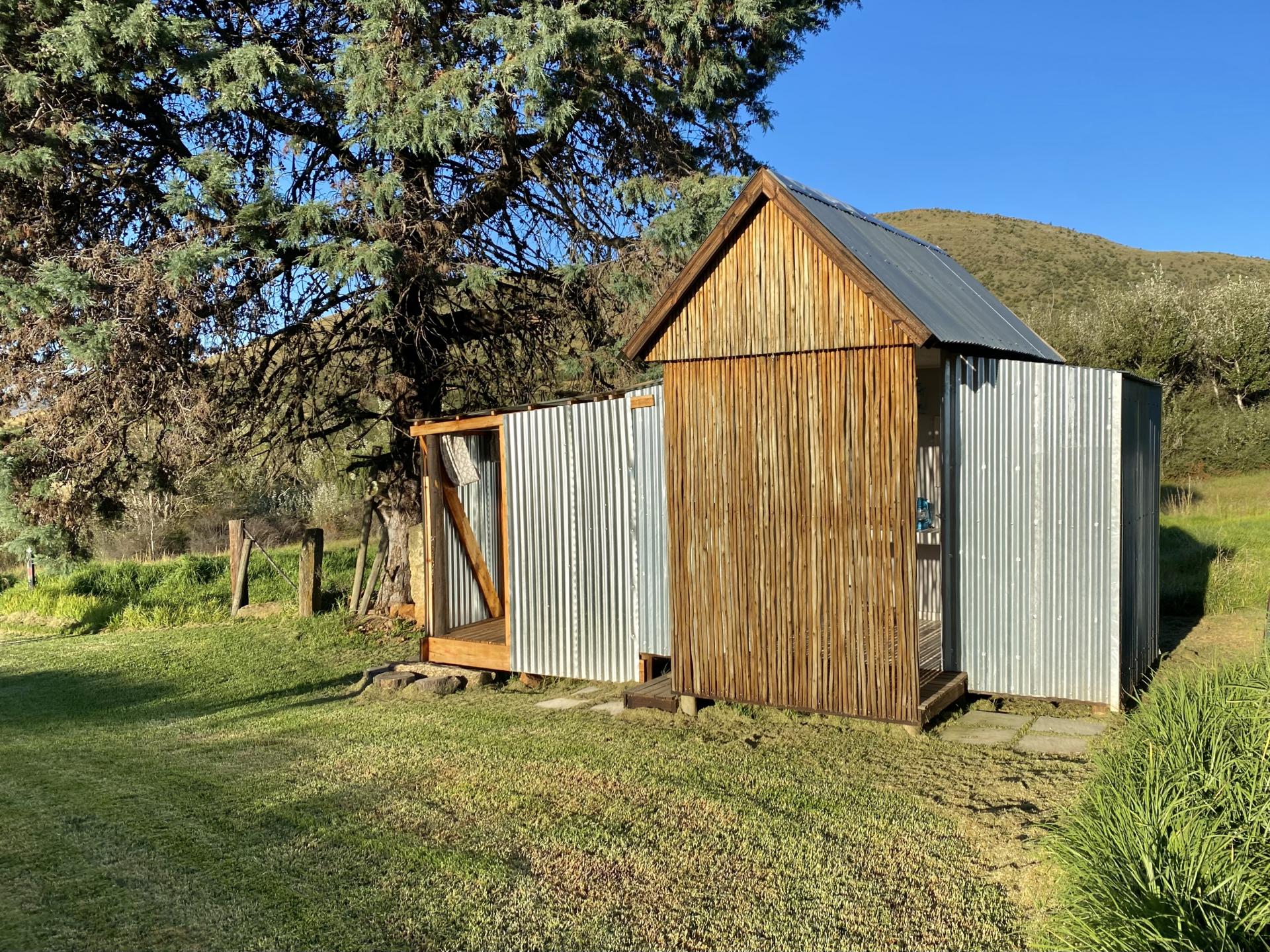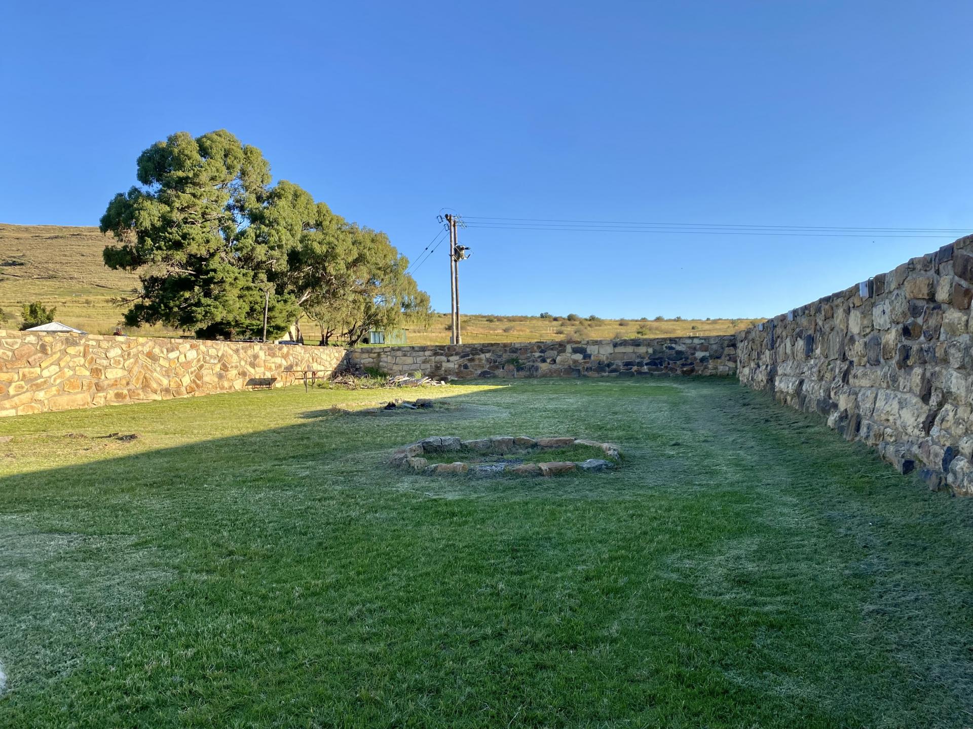 Large Sandstone Kraal with lighting, electrical outlets and fire pits, ideal for outdoor functions and events, together with nearby ablutions consisting of 2 showers heated by gas geysers, and 2 toilets.