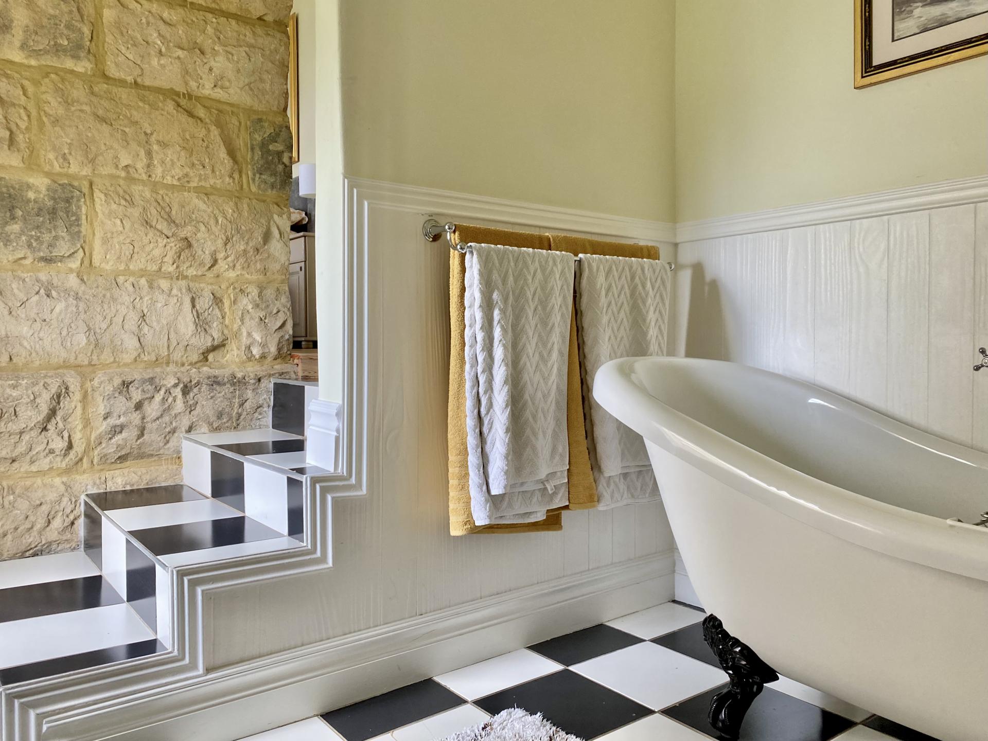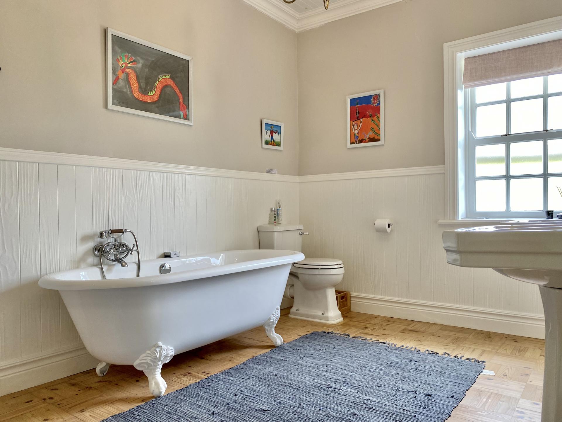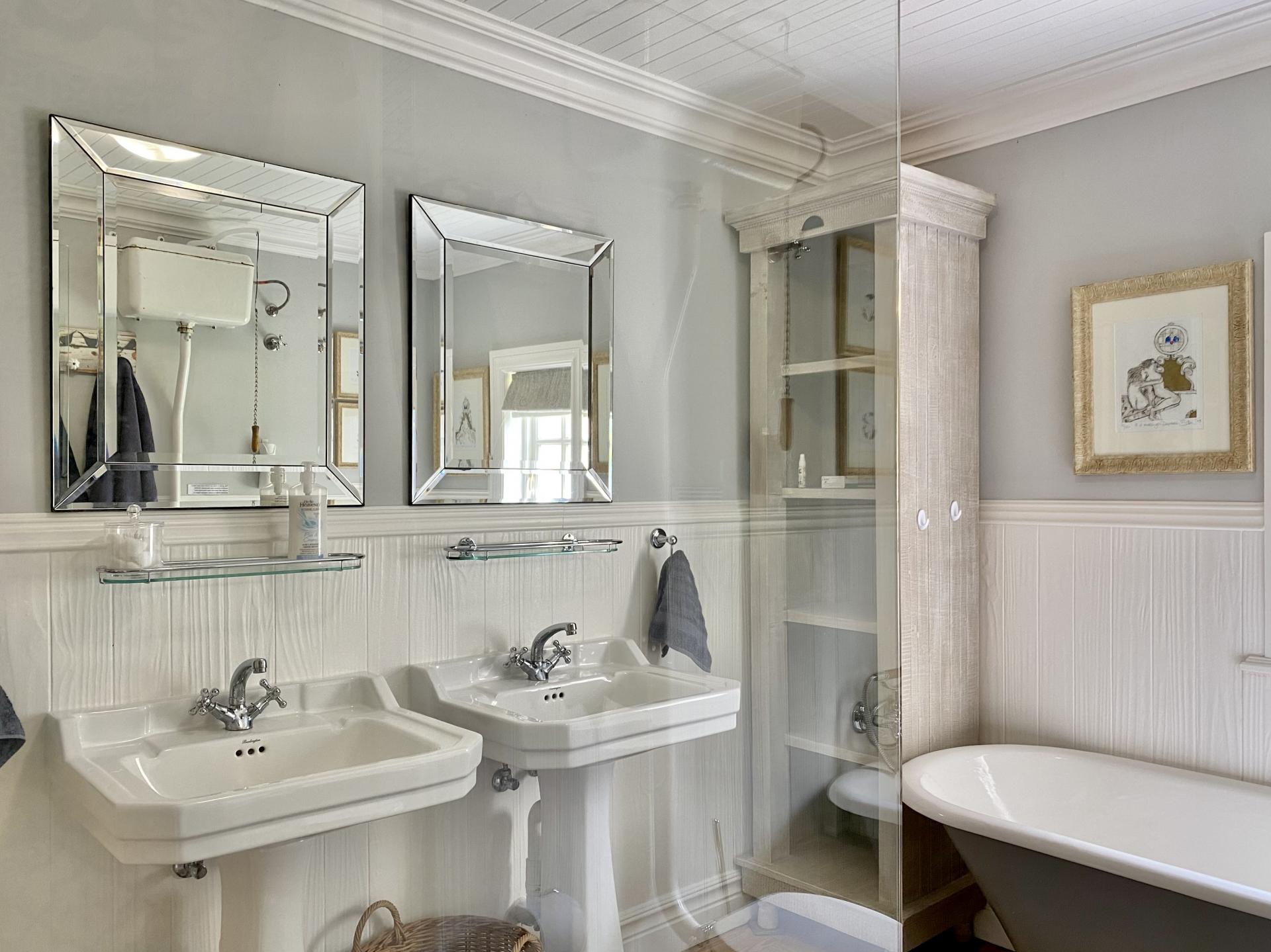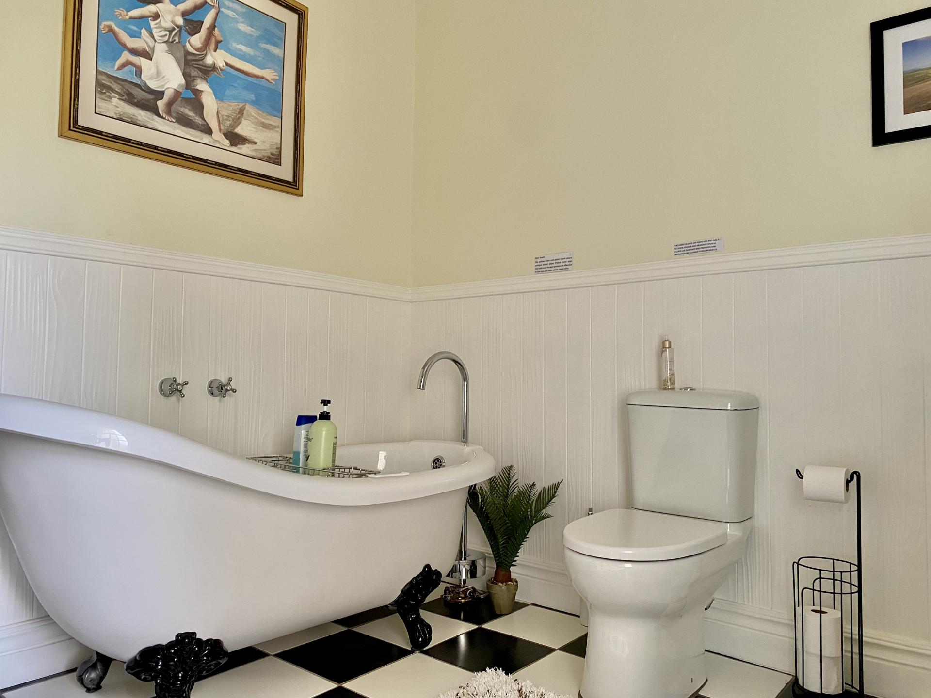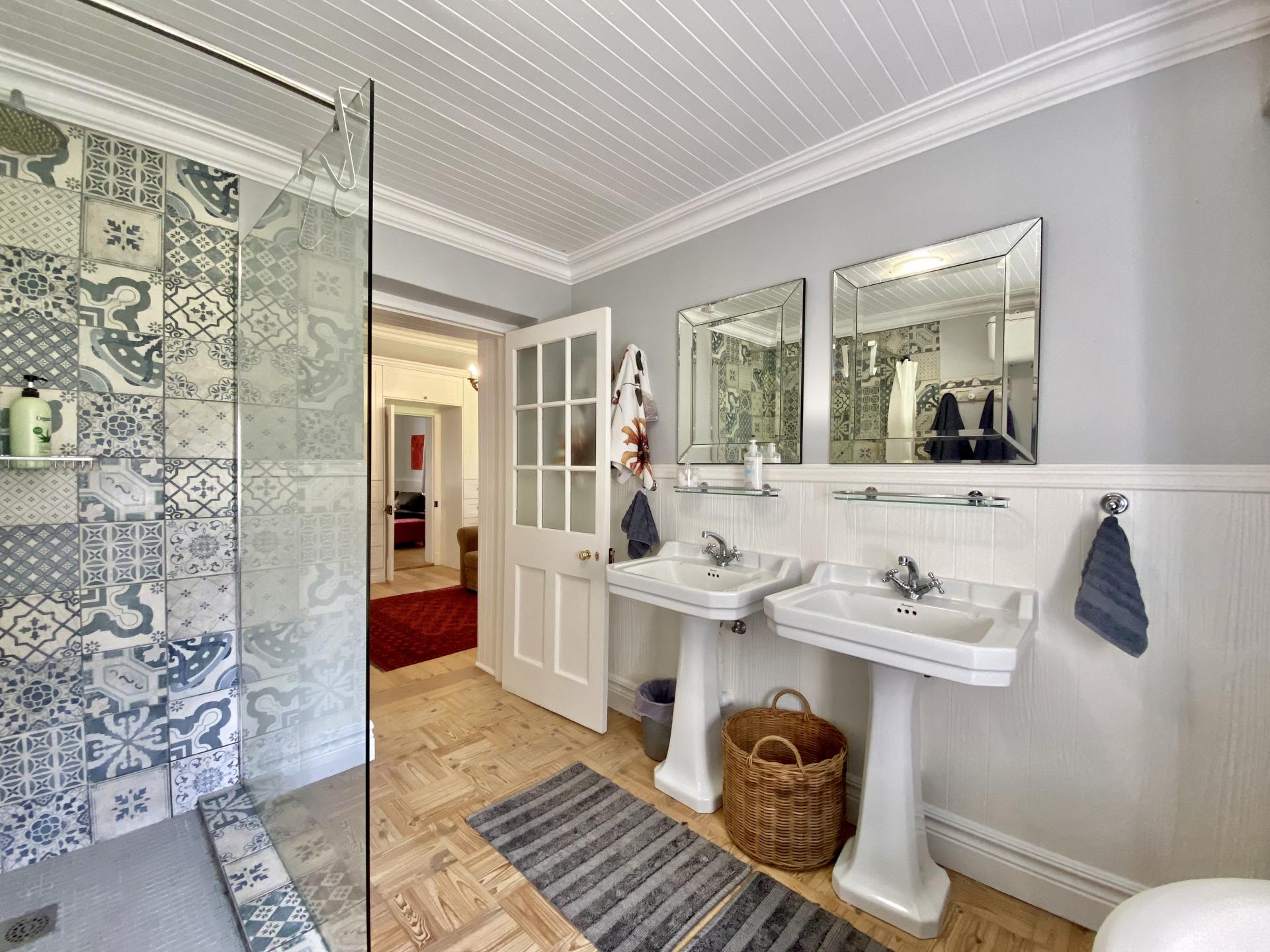 • Bedroom 2 is a spacious room with an en-suite Victorian bathroom with bath, shower, 2 x basins and toilet