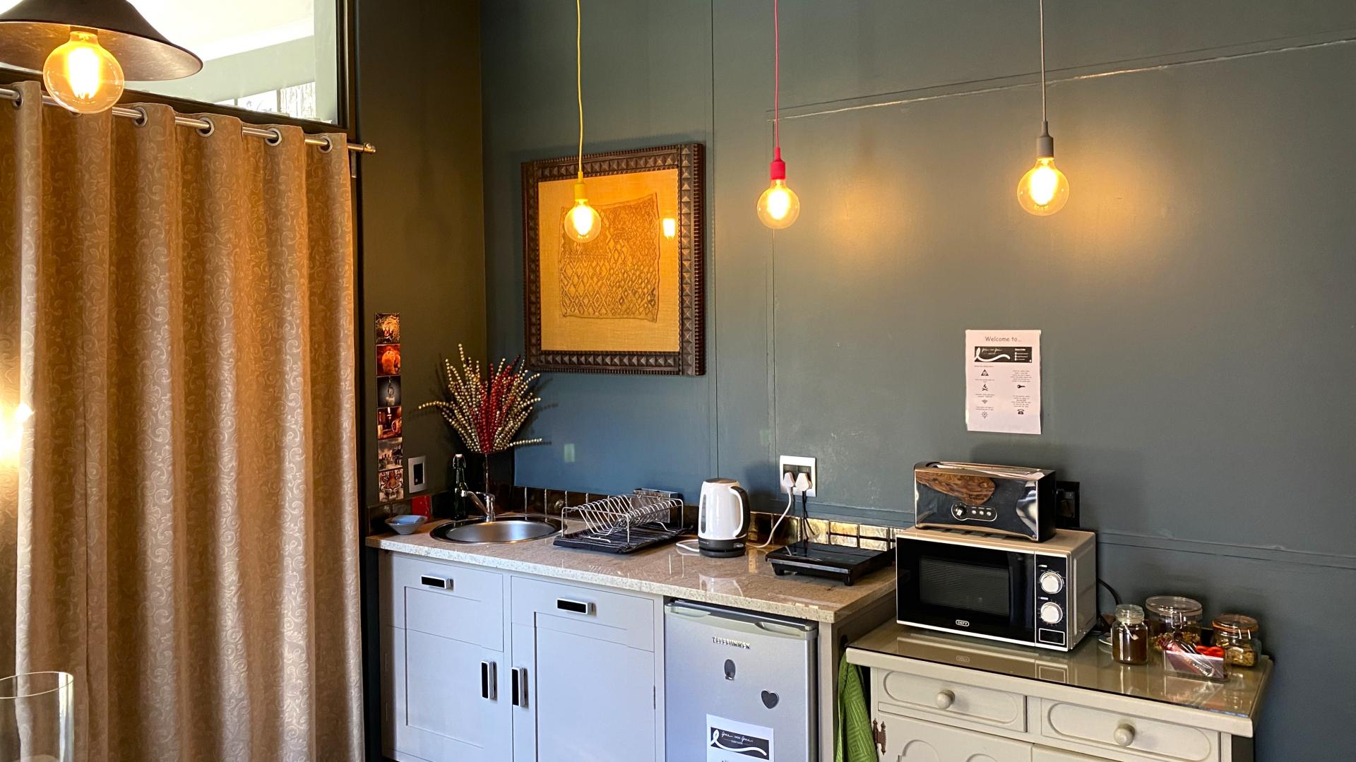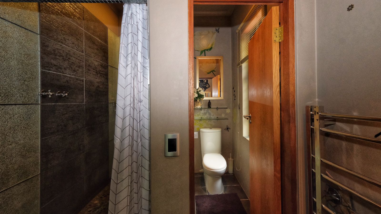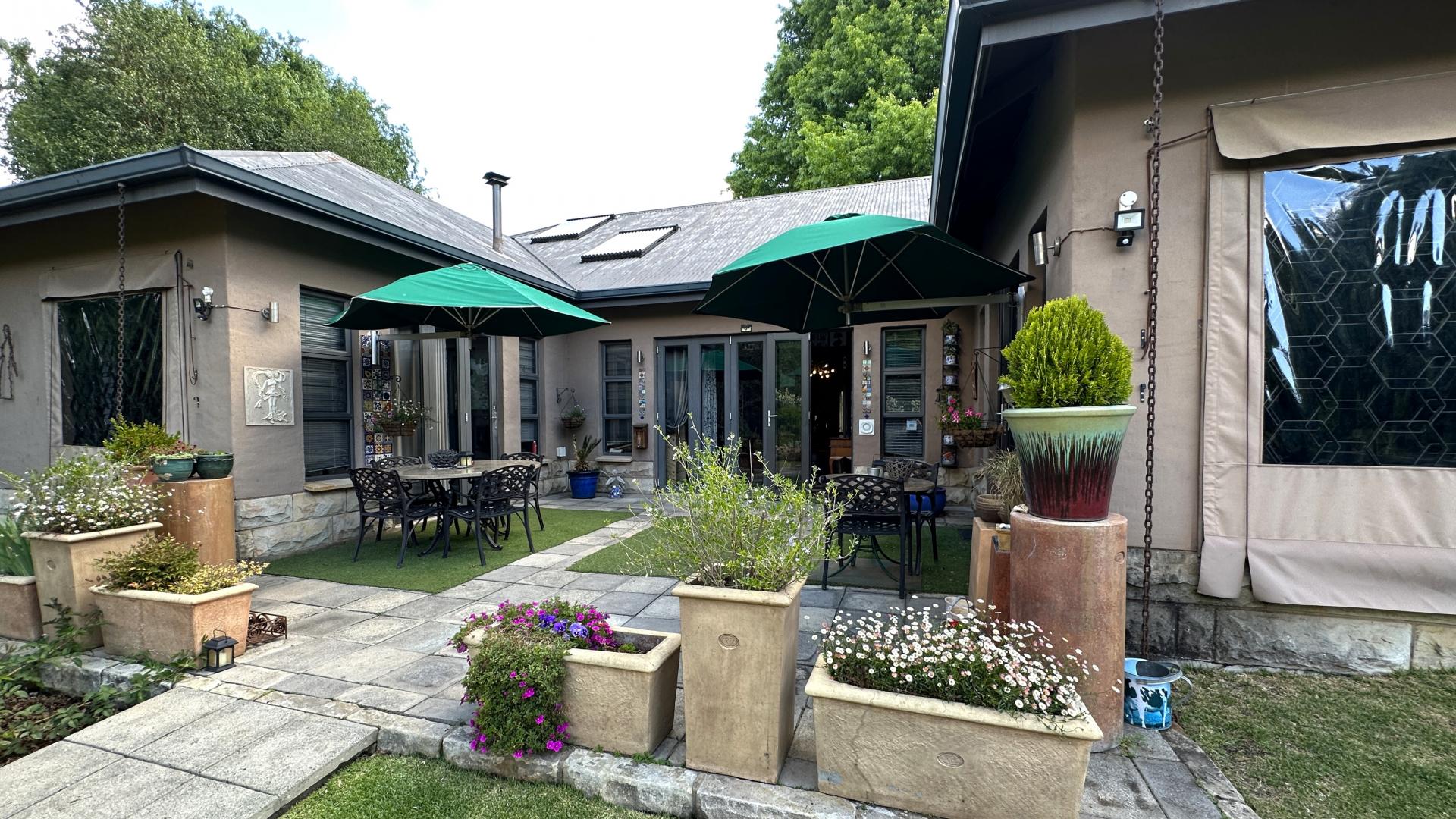 We proudly present this strikingly artistic home with four large suites currently operating as a self-catering guesthouse with a private residency, providing a seamless dual-purpose living experience.
