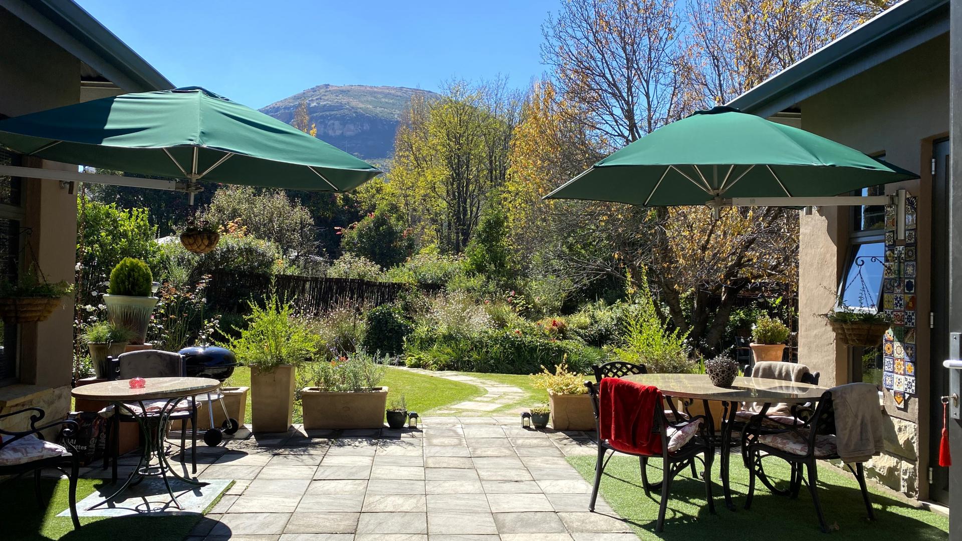 This meticulous and exceptionally well-built home caters to all aspects of luxury living. The residence features a sleek galley kitchen with Caesar stone finishes. The main residence and bigger guest unit are wheelchair friendly. The dining room area exits through aluminium doors onto a spacious enclosed patio overlooking a lush and established garden with beautiful mountain views.