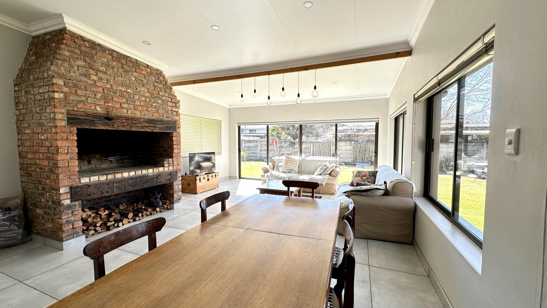 The north-facing braai room is another standout feature, with large sliding doors that open to the garden, creating a seamless indoor-outdoor flow. The built-in braai is generously sized, ideal for entertaining.