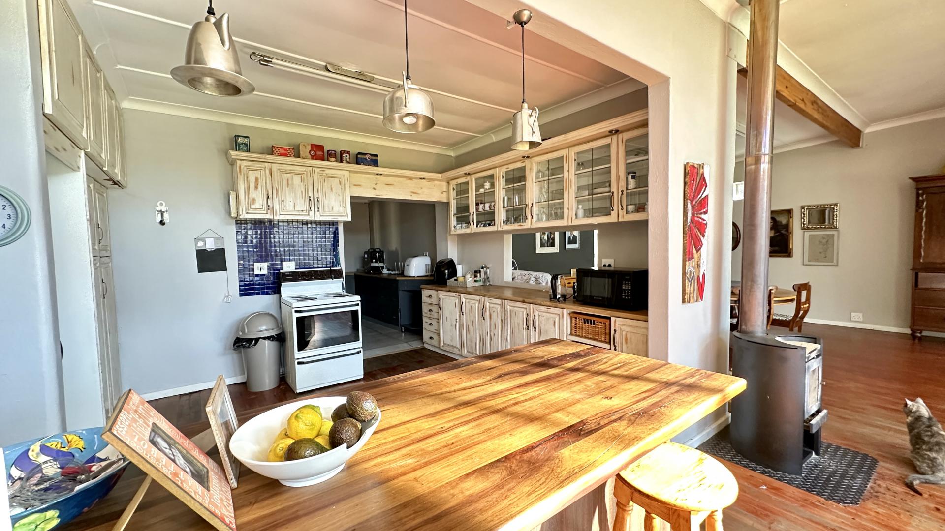 Inside, the home features a spacious open-plan kitchen, dining, and lounge area with beautiful wooden flooring throughout. The well-planned kitchen, complete with a separate scullery, is centrally located to effortlessly serve both the entertainment and dining areas.