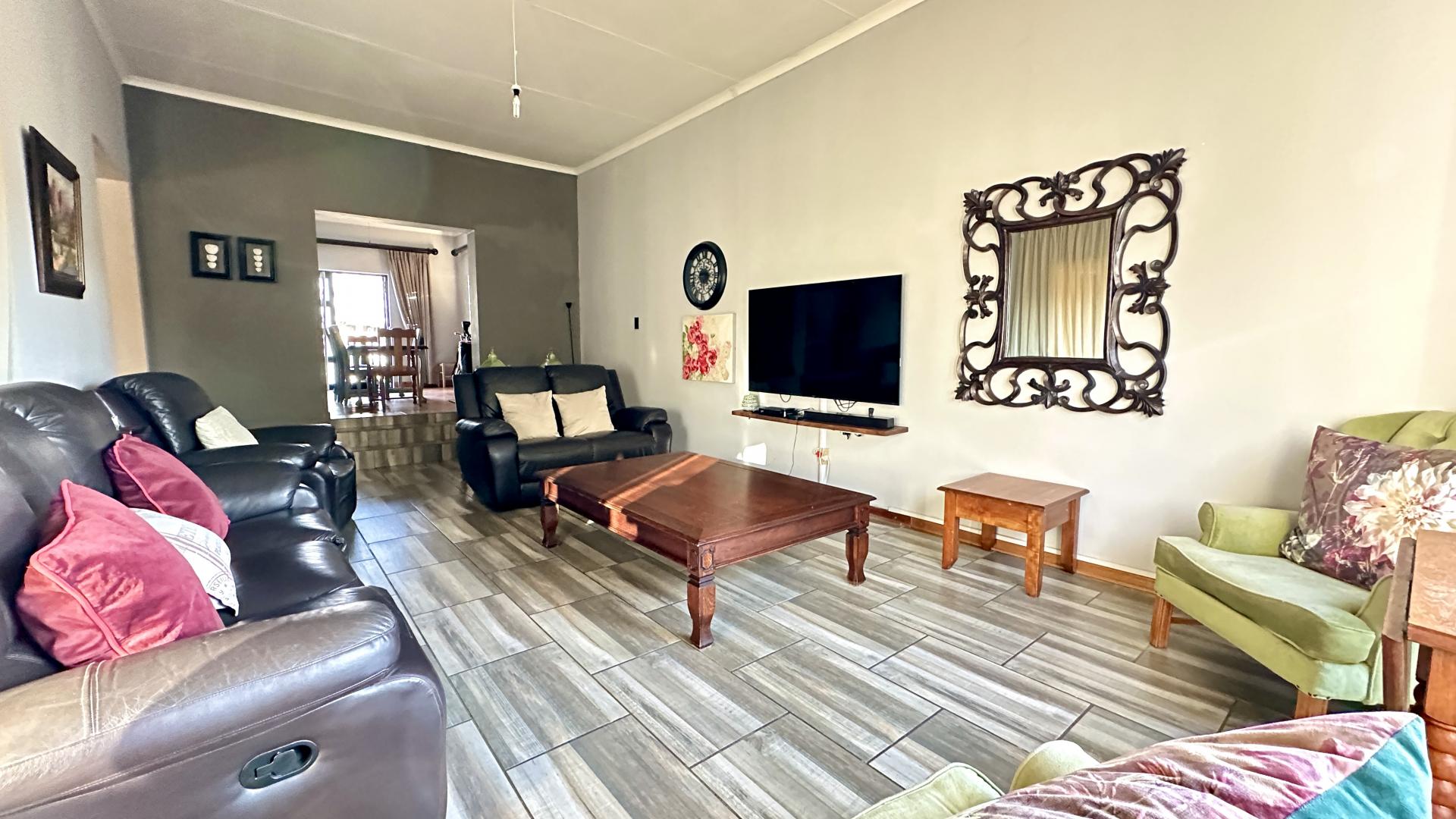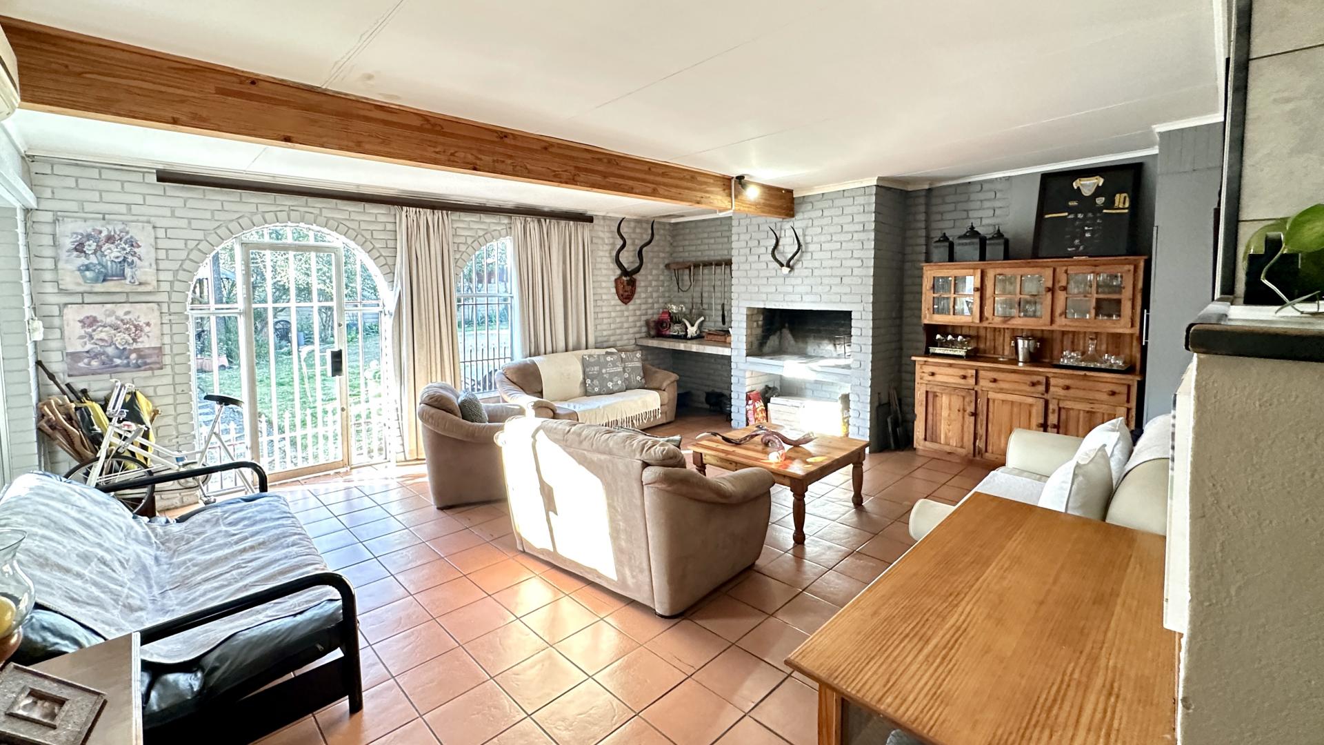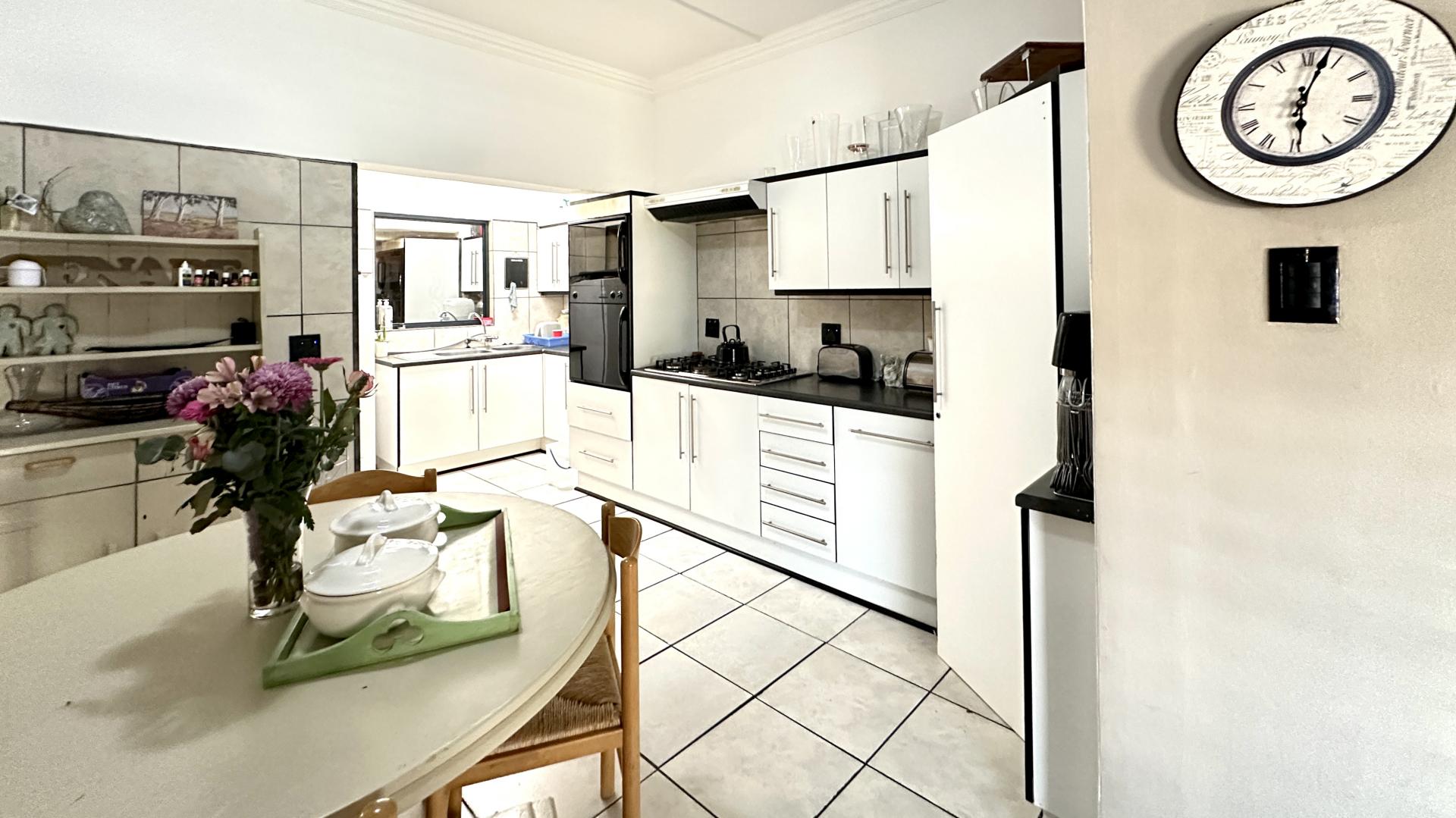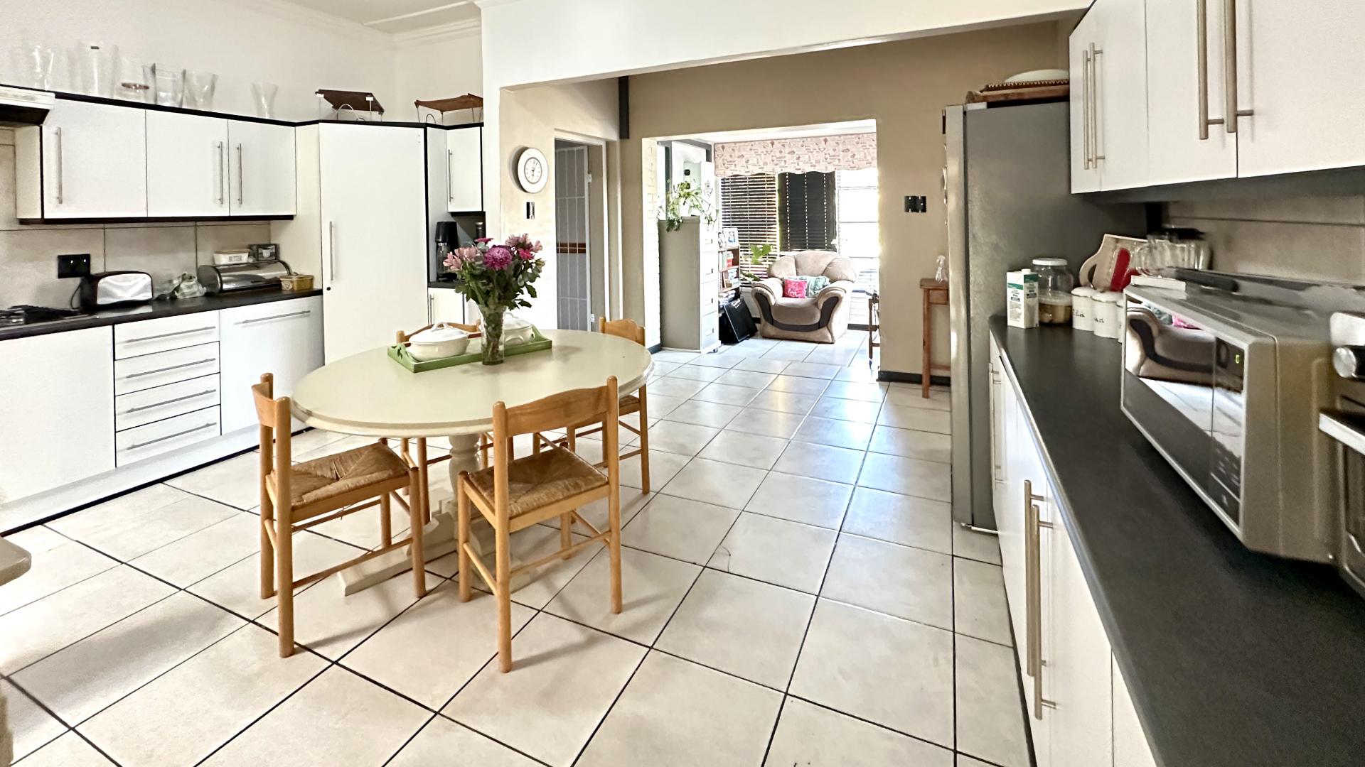 The home boasts sunny, open-plan living areas with an inviting indoor braai and adjacent TV room—perfect for entertaining or relaxing. The modern kitchen is equipped with an eye-level oven and gas hob, ideal for cooking enthusiasts.