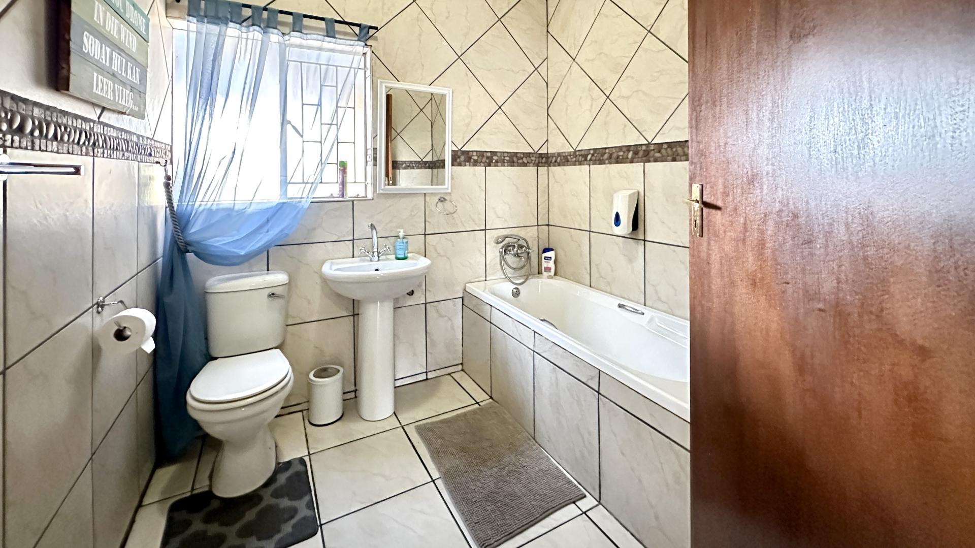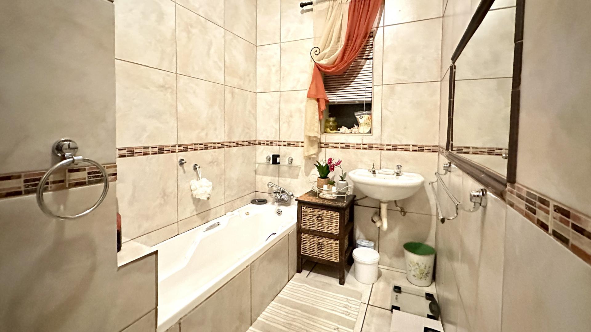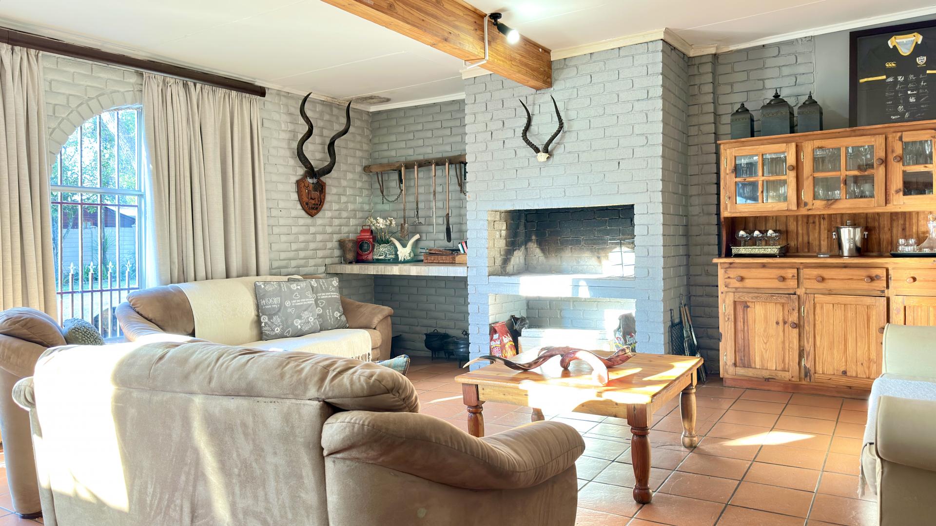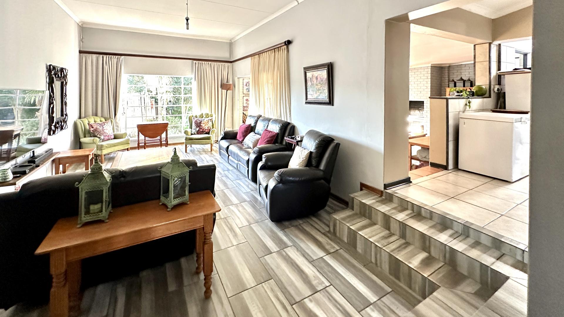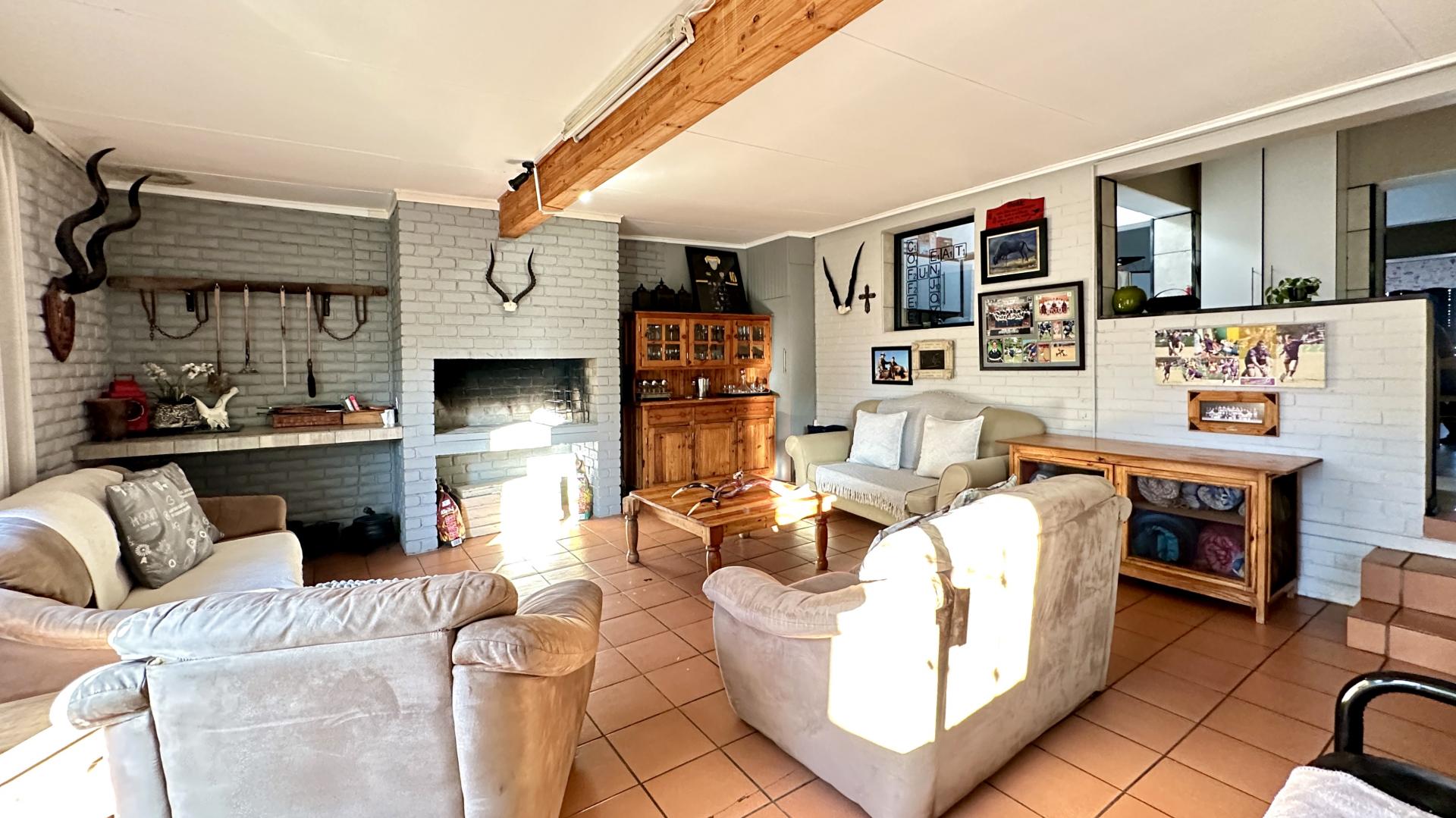 The home boasts sunny, open-plan living areas with an inviting indoor braai and adjacent TV room—perfect for entertaining or relaxing. The modern kitchen is equipped with an eye-level oven and gas hob, ideal for cooking enthusiasts.