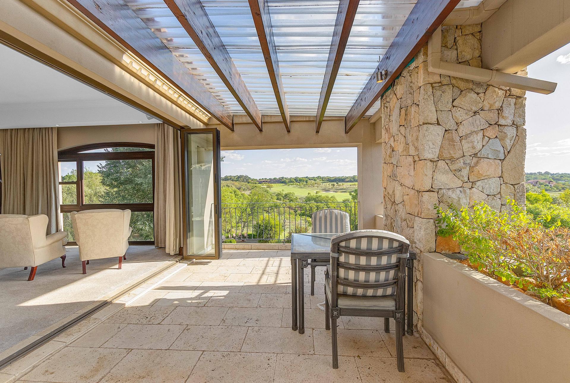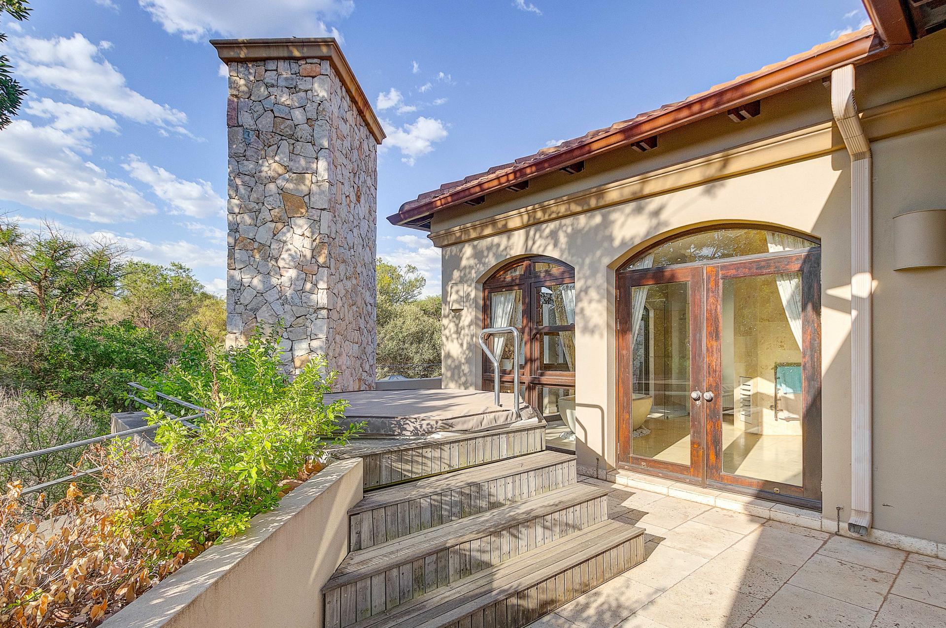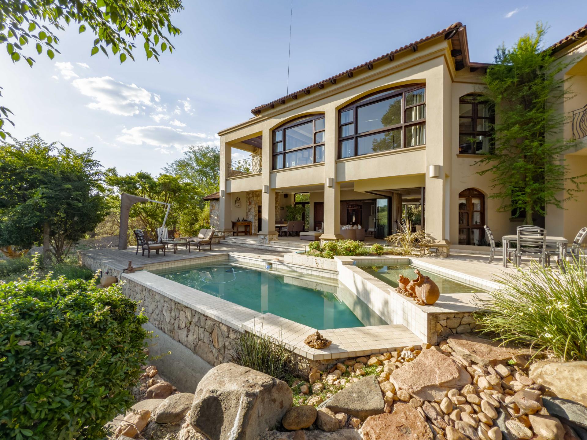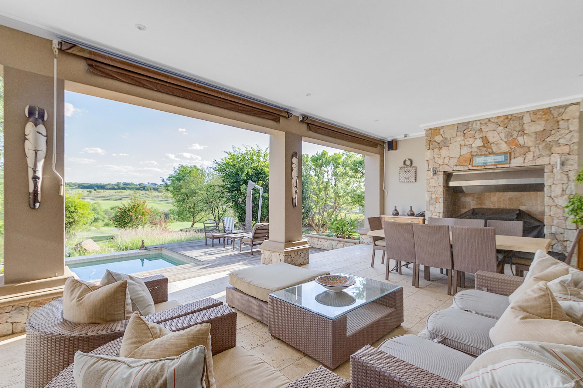 Beautiful solid wood doors, stairways, travertine floors throughout, bathrooms with exquisite stone finishes, a landscaped garden and a bright and sunny conservatory style room looking onto a private garden for winter days and opens up for cool summer days. The home has some of the best views Blair Atholl has to offer and the master bedroom is one of the most beautiful in the estate with an upstairs jacuzzi to take in the views. In addition to the master, two bedrooms are also upstairs with a jack & jill bathroom and two additional bedroom suites are downstairs. The kitchen is welcoming with a large pantry and separate laundry & scullery and also leads onto the large garage with additional space to park a golf cart. The property has BreezeAir installed for cool days, a central vacuum system and WIFI installed. For backup, there is a water tank on the property, a solar water geyser and inverter installed which can be converted into a solar system.