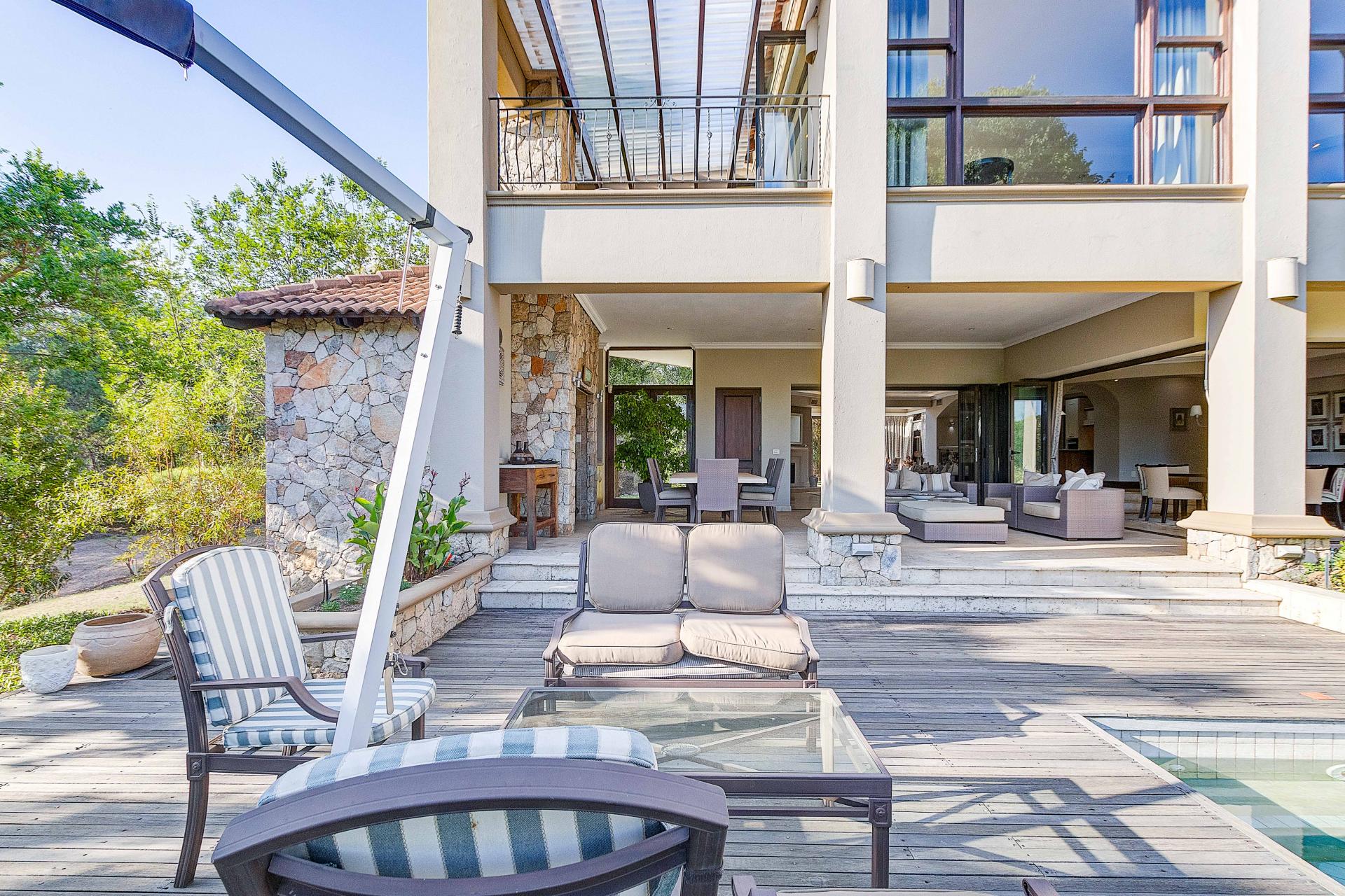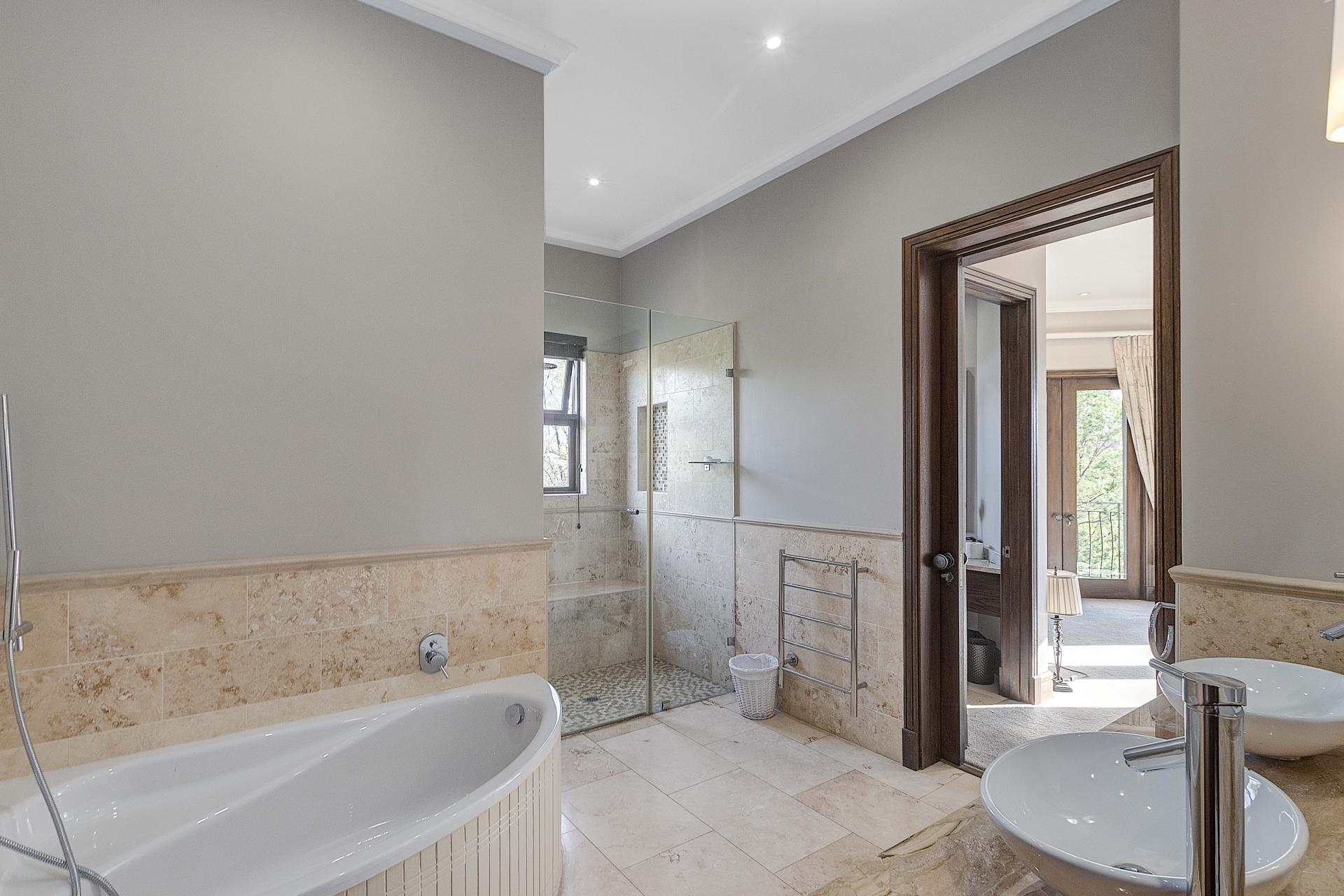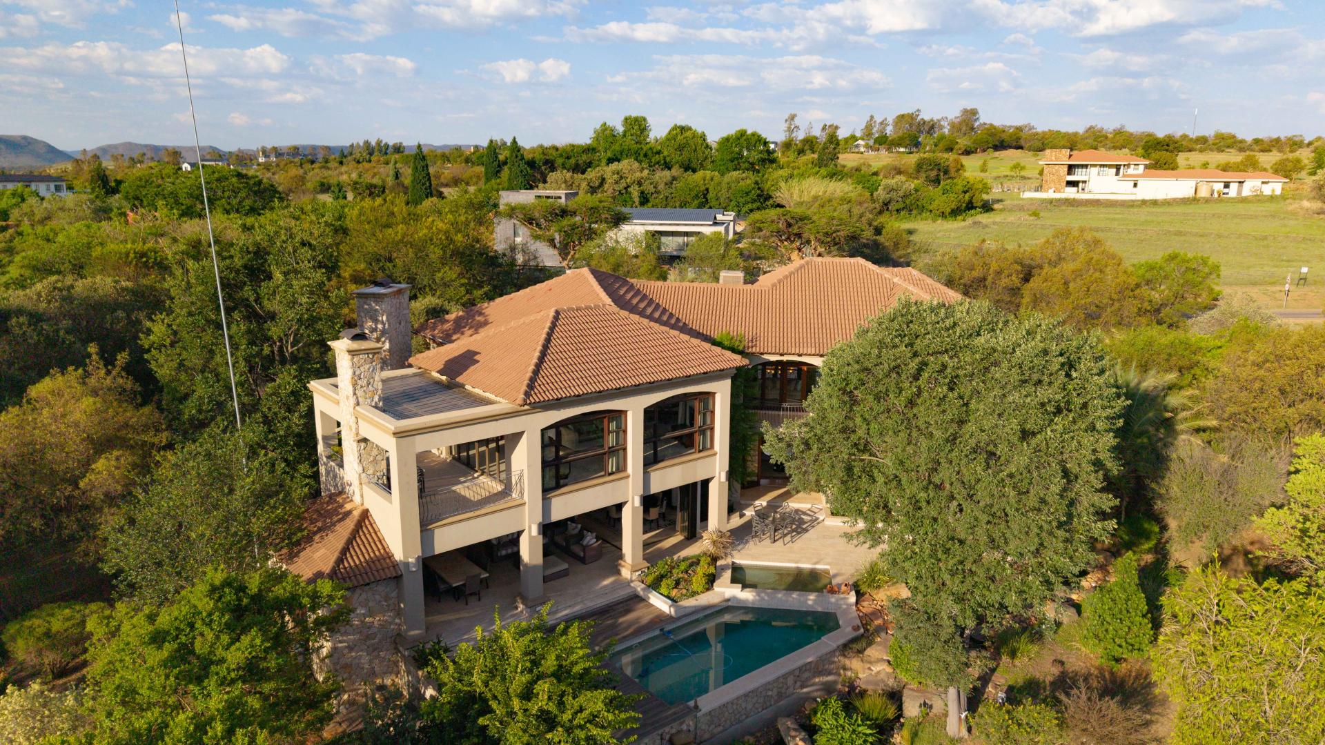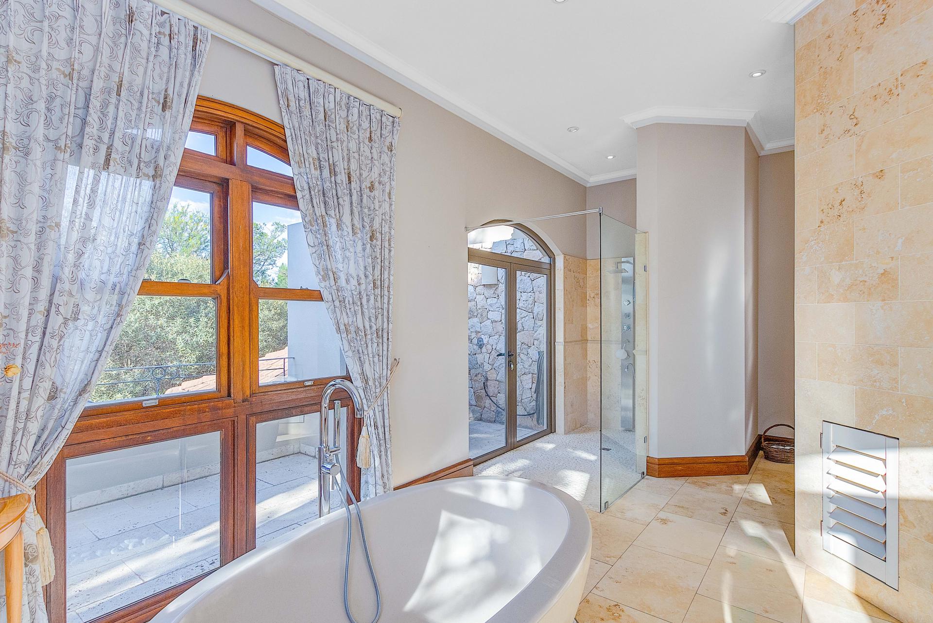 Beautiful solid wood doors, stairways, travertine floors throughout, bathrooms with exquisite stone finishes, a landscaped garden and a bright and sunny conservatory style room looking onto a private garden for winter days and opens up for cool summer days. The home has some of the best views Blair Atholl has to offer and the master bedroom is one of the most beautiful in the estate with an upstairs jacuzzi to take in the views. In addition to the master, two bedrooms are also upstairs with a jack & jill bathroom and two additional bedroom suites are downstairs. The kitchen is welcoming with a large pantry and separate laundry & scullery and also leads onto the large garage with additional space to park a golf cart. The property has BreezeAir installed for cool days, a central vacuum system and WIFI installed. For backup, there is a water tank on the property, a solar water geyser and inverter installed which can be converted into a solar system.