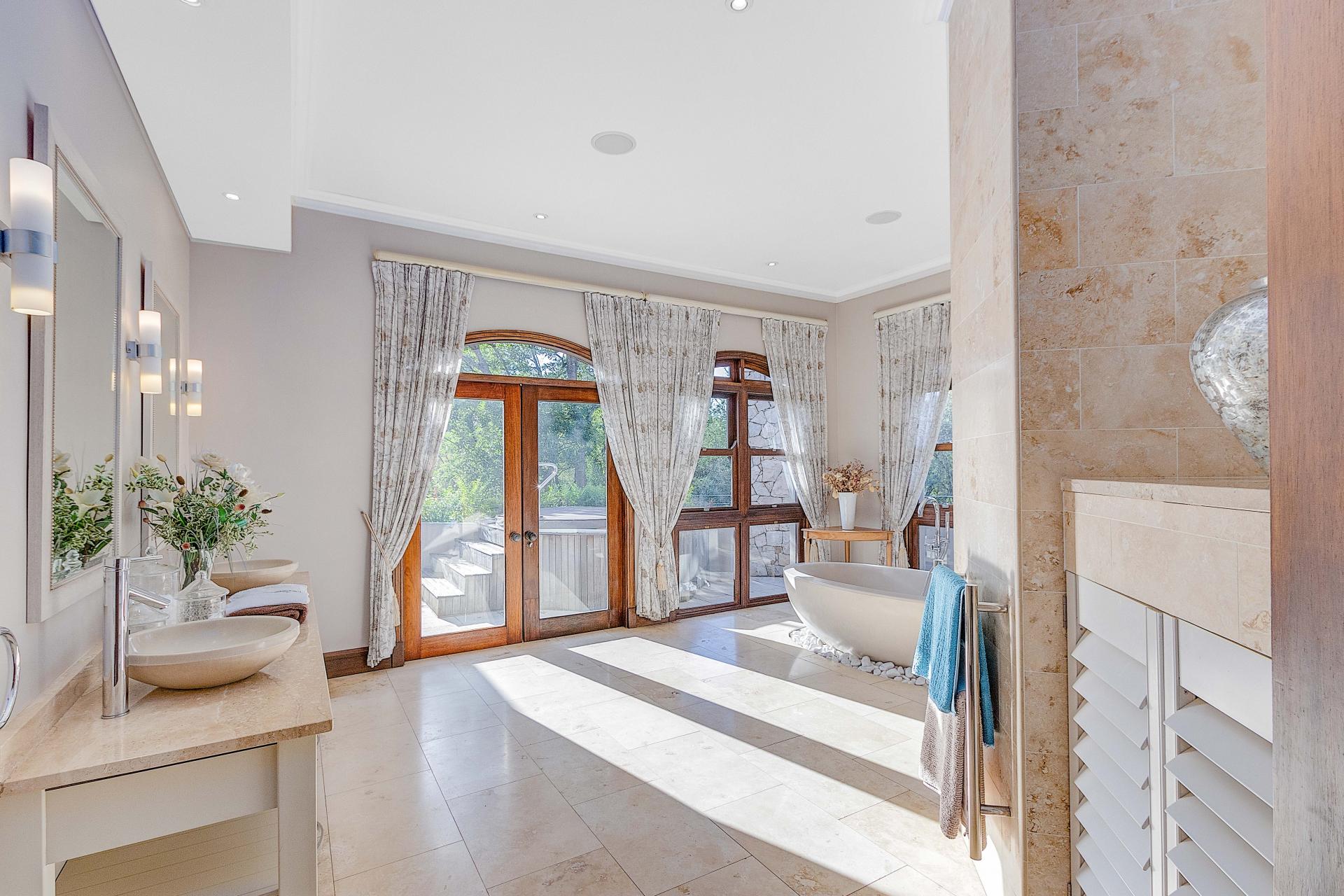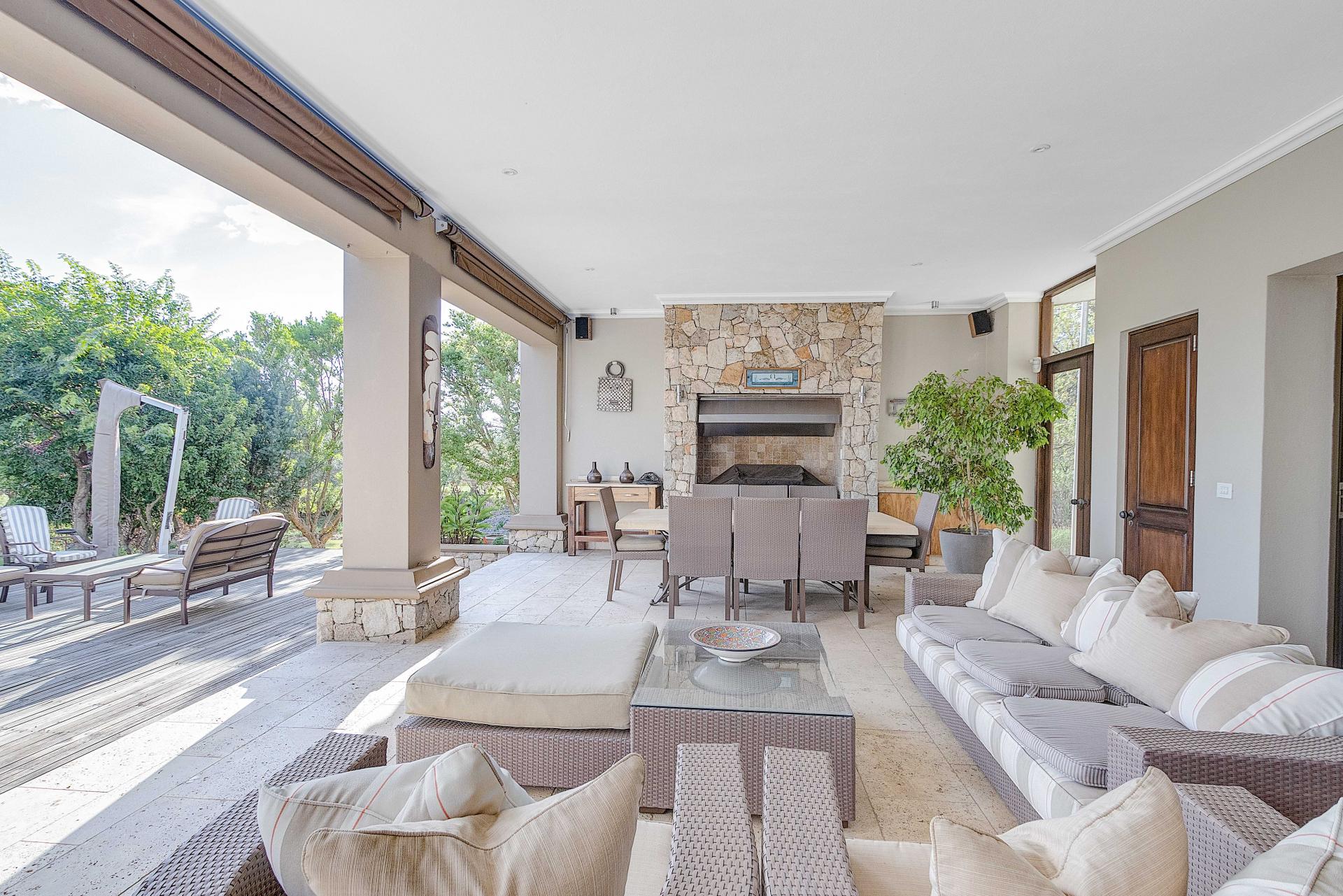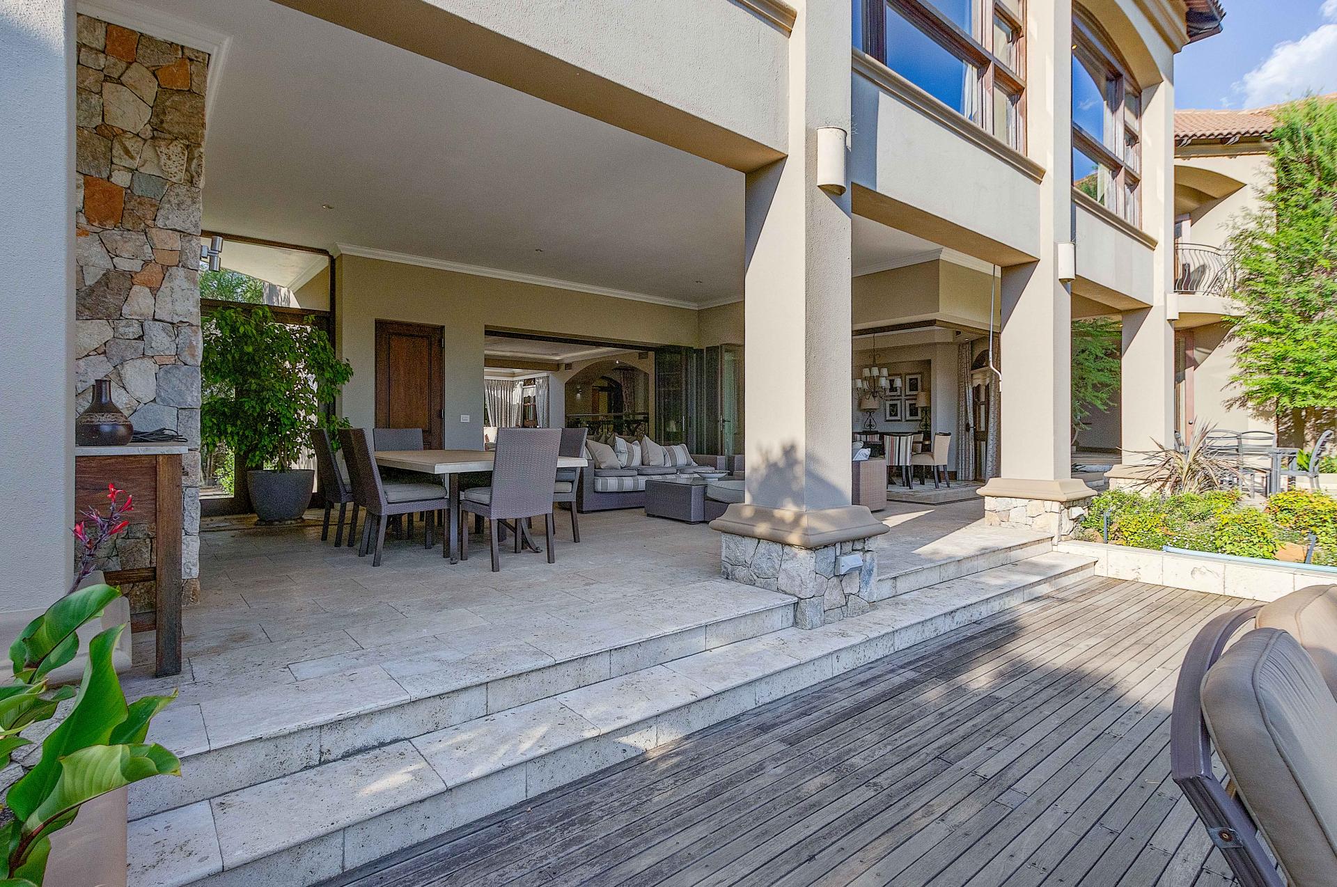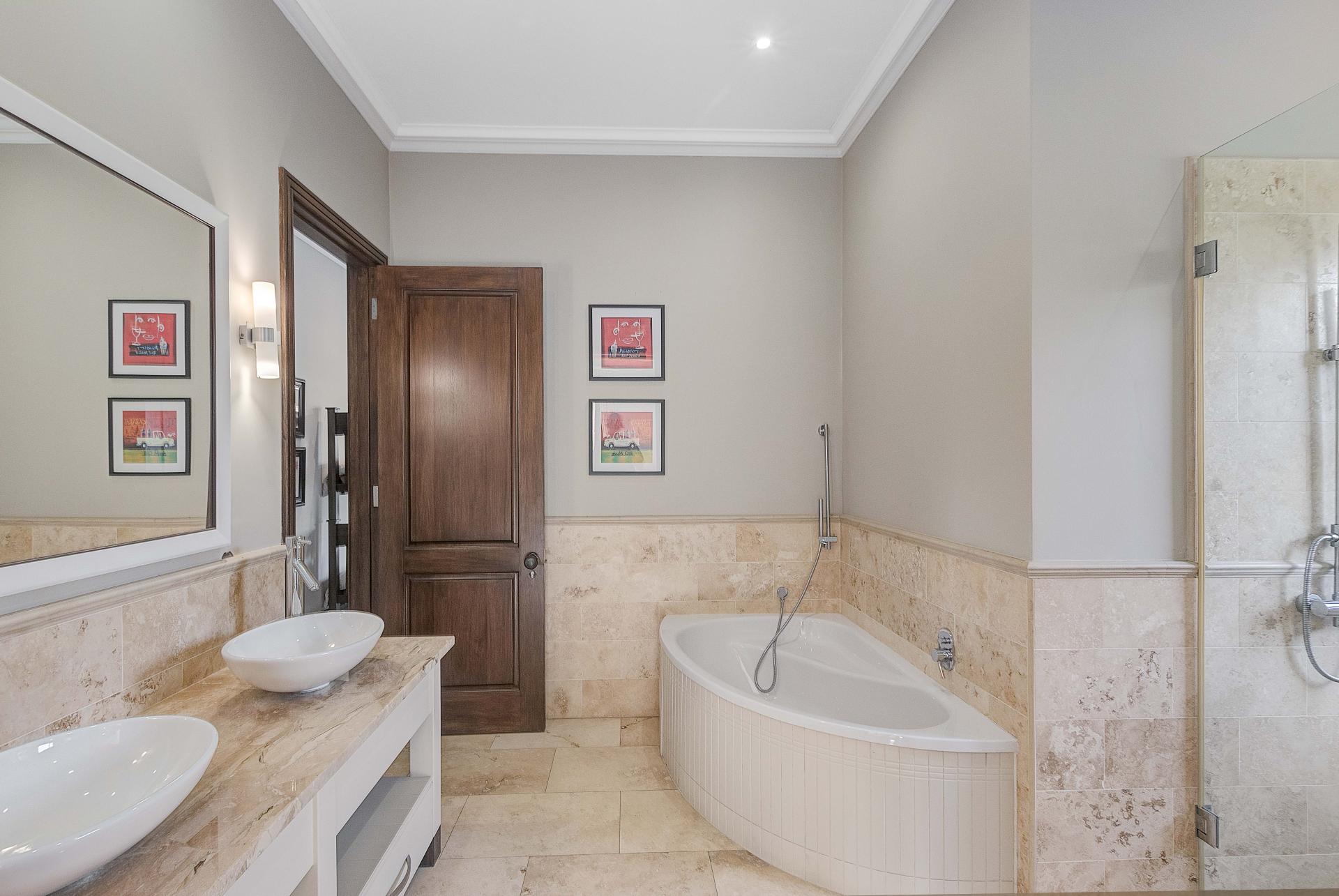 Beautiful solid wood doors, stairways, travertine floors throughout, bathrooms with exquisite stone finishes, a landscaped garden and a bright and sunny conservatory style room looking onto a private garden for winter days and opens up for cool summer days. The home has some of the best views Blair Atholl has to offer and the master bedroom is one of the most beautiful in the estate with an upstairs jacuzzi to take in the views. In addition to the master, two bedrooms are also upstairs with a jack & jill bathroom and two additional bedroom suites are downstairs. The kitchen is welcoming with a large pantry and separate laundry & scullery and also leads onto the large garage with additional space to park a golf cart. The property has BreezeAir installed for cool days, a central vacuum system and WIFI installed. For backup, there is a water tank on the property, a solar water geyser and inverter installed which can be converted into a solar system.