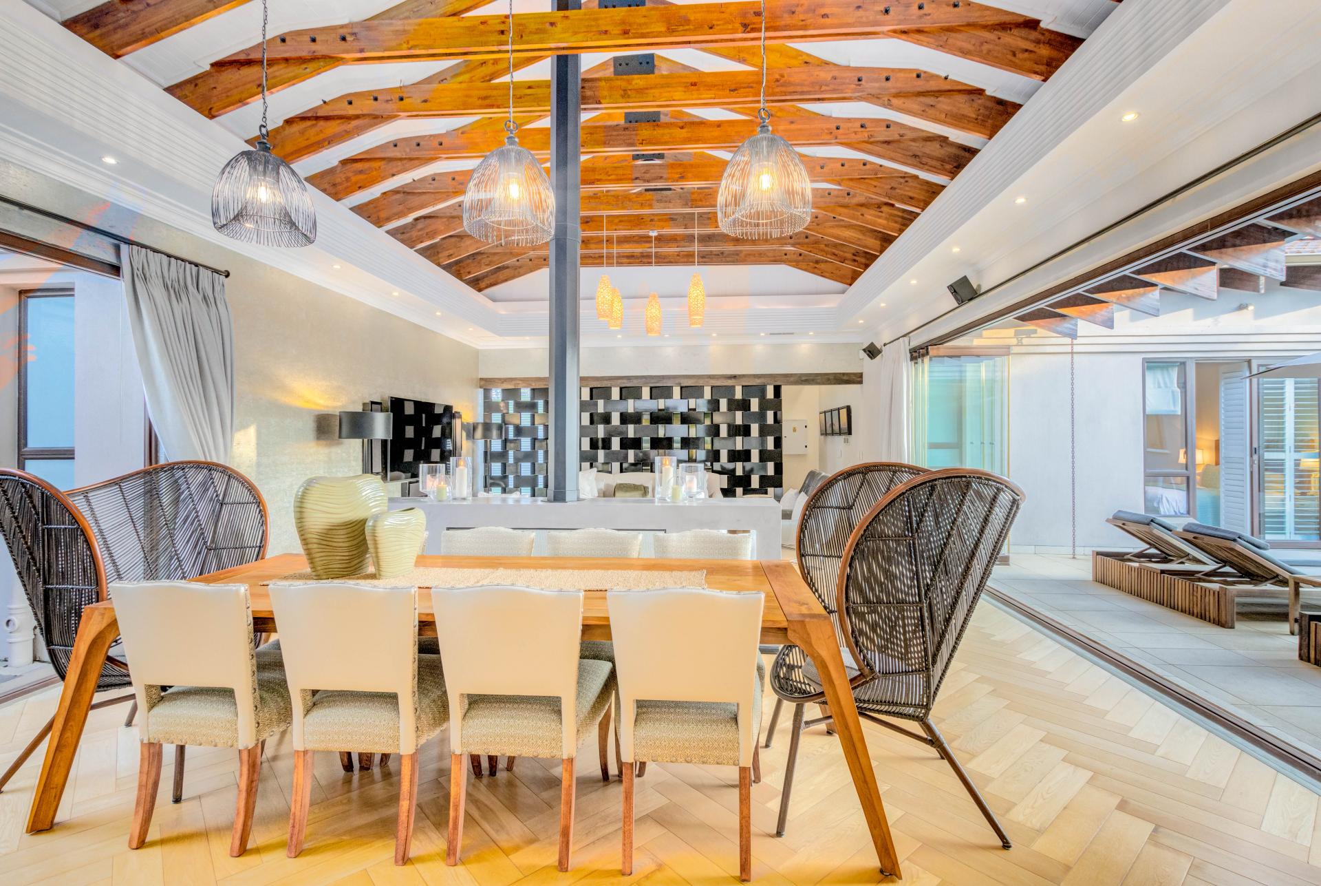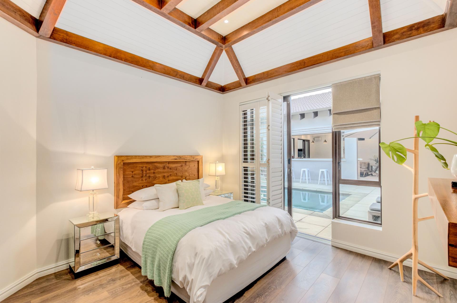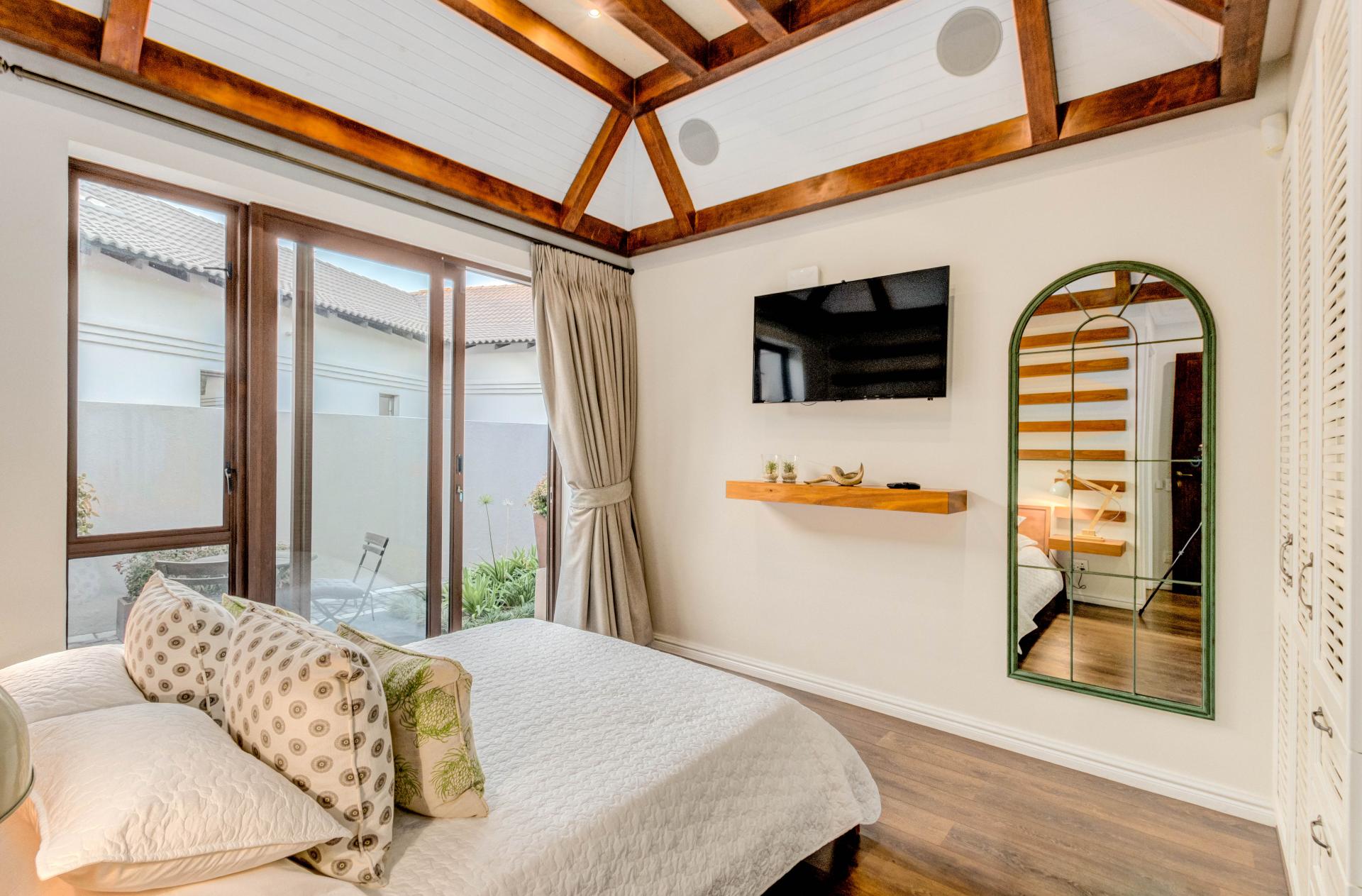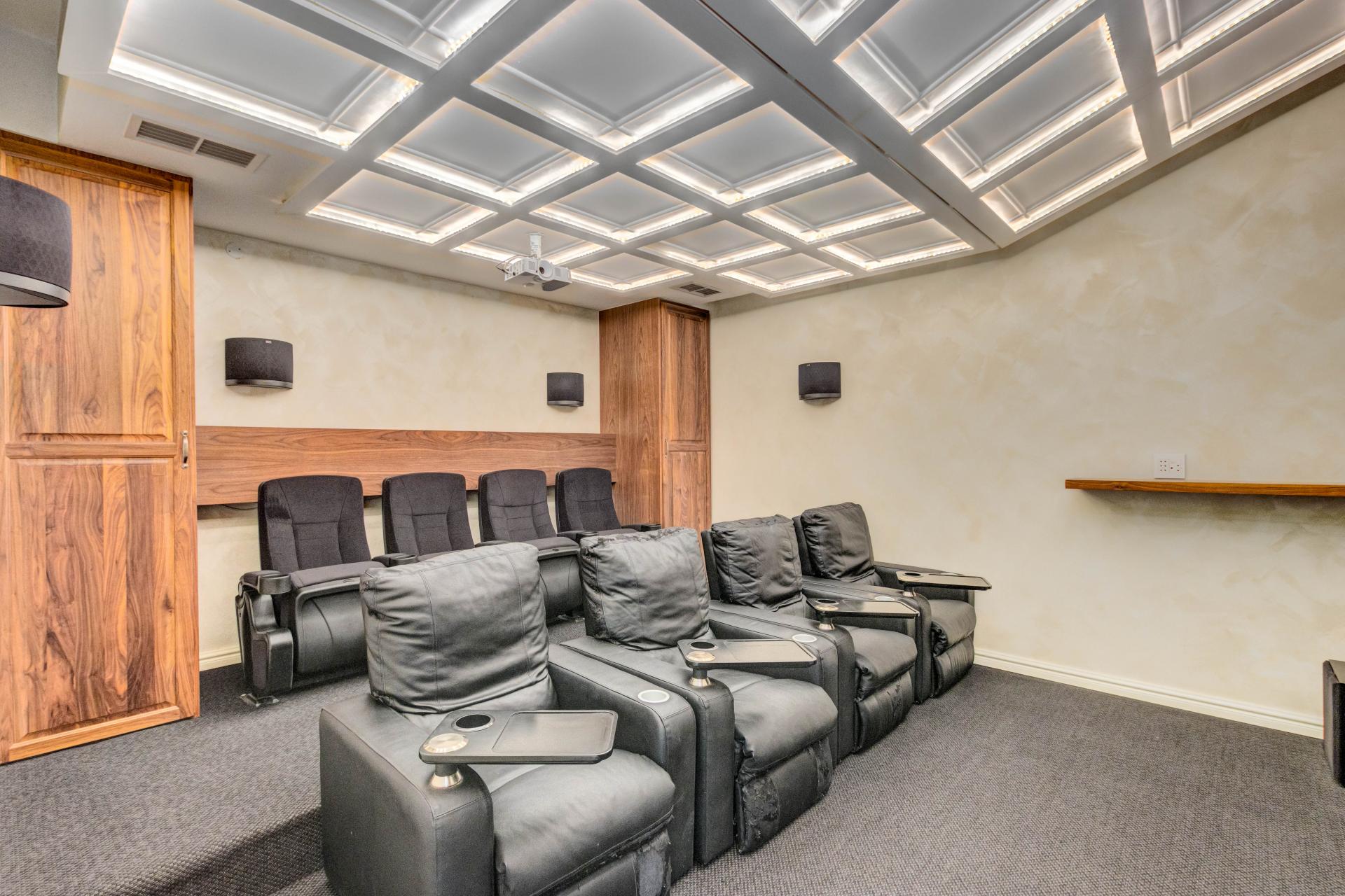 Entertainment has never been better with an 8 seater cinema room with 3D capability and surround sound, multiple entertainment areas from inside going out. Inside has three lounge areas – one private cigar/formal lounge off the wine tasting room, one large lounge by the beautiful bar, and a third tv room lounge off the kitchen near the bedrooms. Outside there is a boma with wood braai and closer to the house is another wood and gas braai. There is also a jacuzzi under an additional covered entertainment area. The garden is beautifully manicured throughout with privacy of utmost importance on this corner stand and very few neighbours surrounding you.