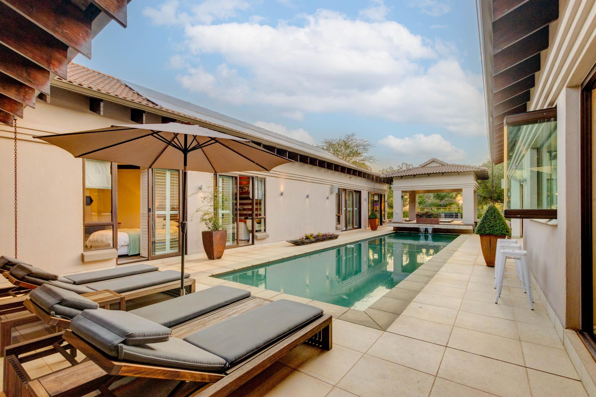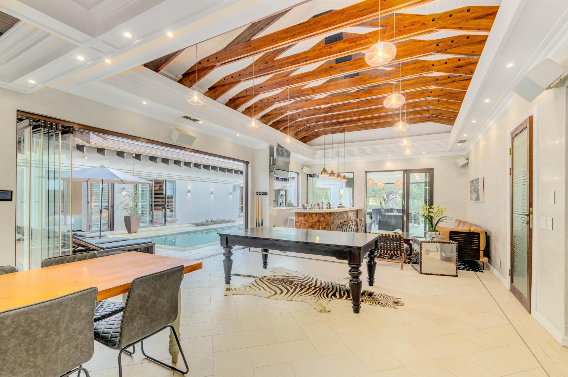 Fine & Country welcomes our latest property to Blair Atholl Golf & Equestrian Estate - a beautiful 800+sqm 5 bedroom single storey home with state of the art solar taking 70% of the property off grid. The home offers multi-generational features and is very family friendly from its single storey structure to the various entertainment areas and large kitchen and laundry/scullery with Miele kitchen appliances and integrated dishwasher/fridge/freezer. The property also benefits from a guest wing encompassing two of the five bedrooms with their own kitchenette. With three lounges, a fire pit, cinema room, jacuzzi, Trackmaster projector and putting green, the family are sure to be impressed! An office and gym with sauna complete this beautiful family home. The bedrooms are all spacious and have wood features with arched ceilings giving a high volume effect with lots of light travelling through the house. With more entertainment options than most, from the exquisite bar to the wine tasting room, this property is above the rest with its luxury lifestyle offerings.