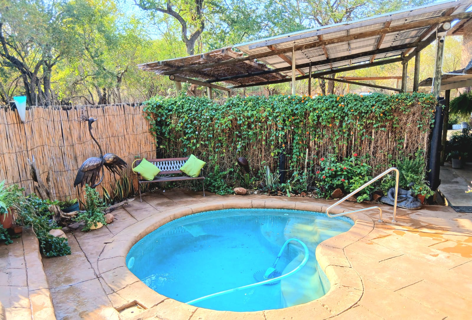 This property is a birder's paradise. Surrounded by mature indigenous trees and overlooking a protected greenbelt, this home is a magnet for Marloth Park's vibrant birdlife - bringing nature's colors and music right to your doorstep.