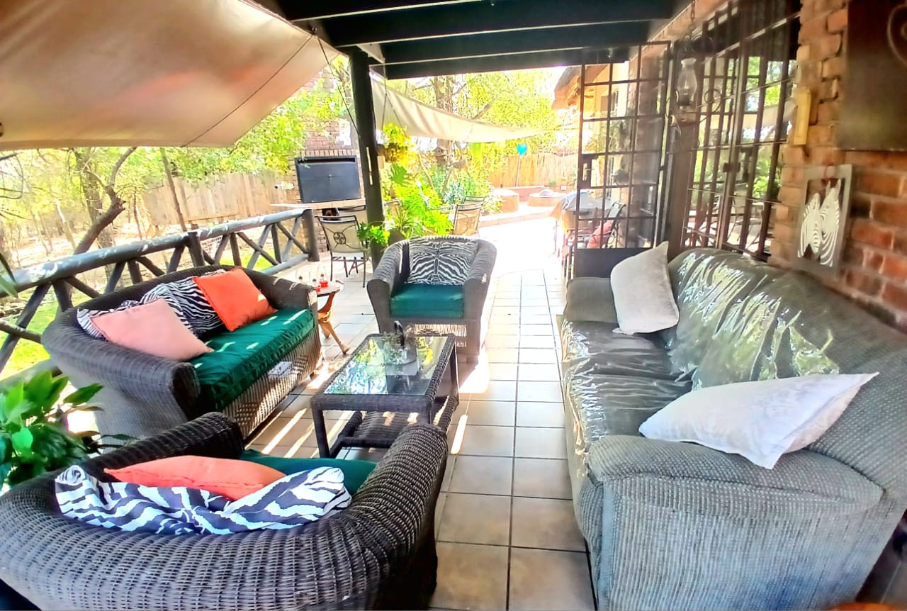 Marloth Park, where wildlife roams freely and serenity is a way of life. Nestled against a lush greenbelt, this magnificent 5-bedroom, all En-suite residence offers off-grid luxury, perfect for permanent living, a holiday escape, or high-yield rental investment.