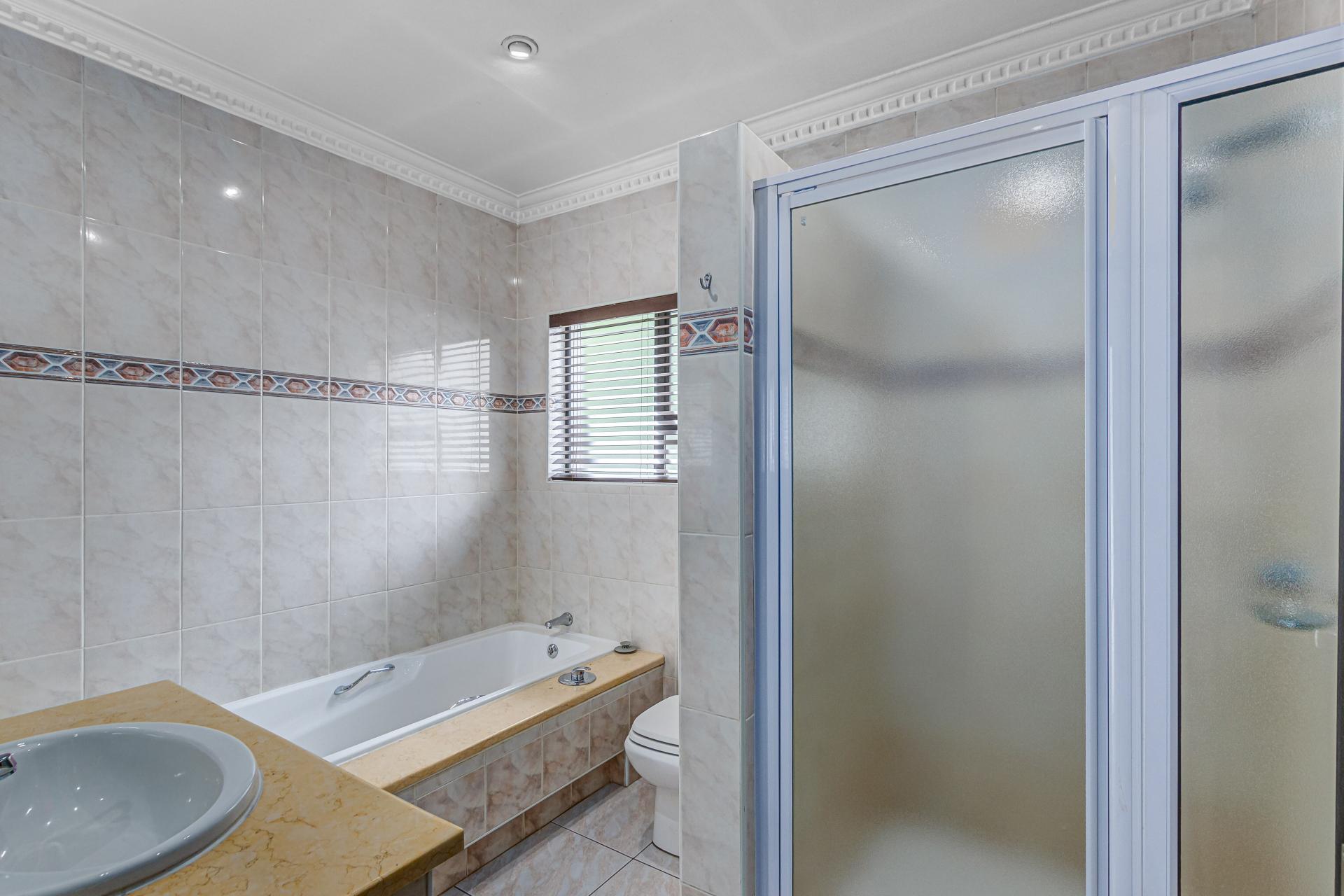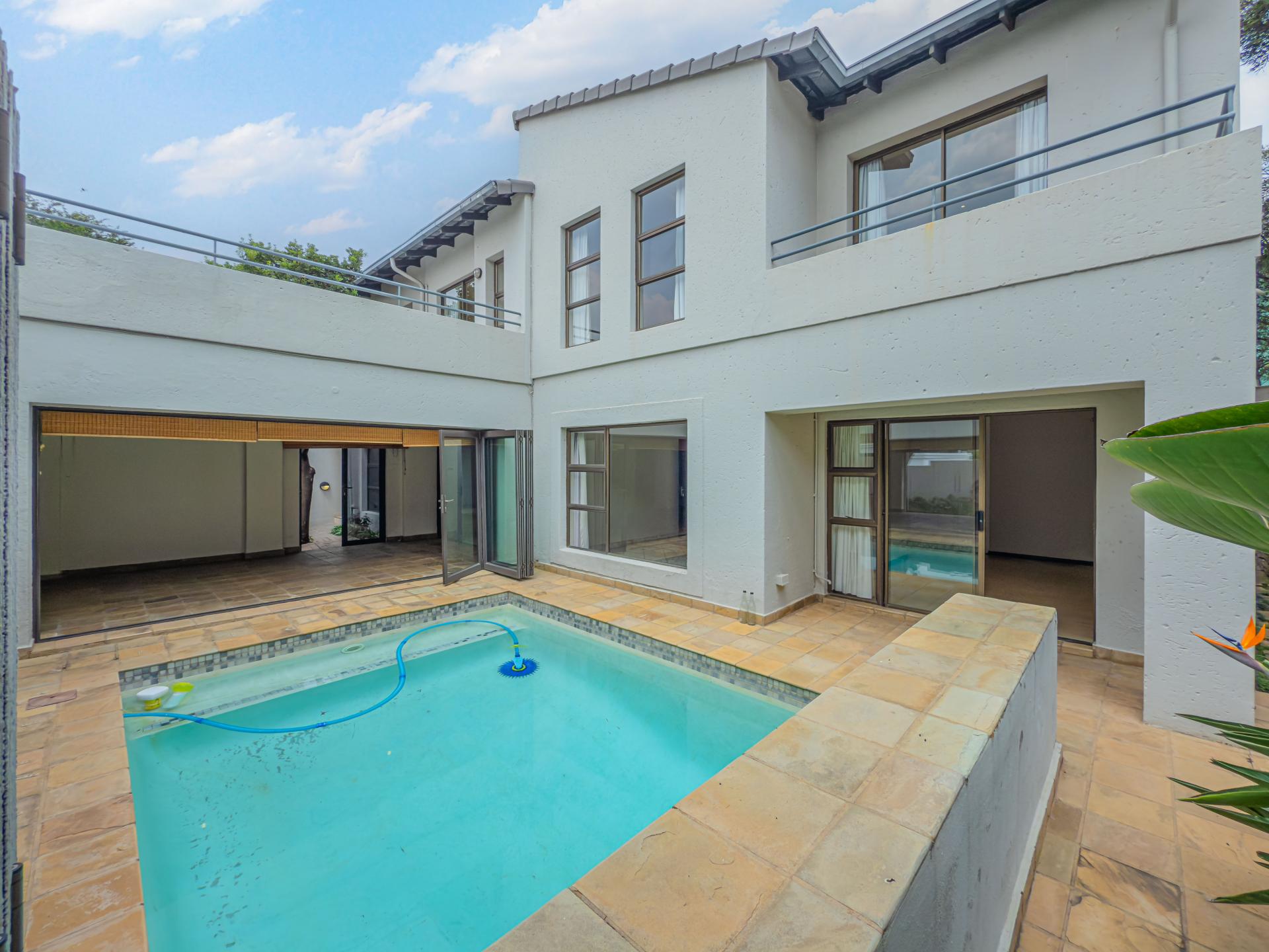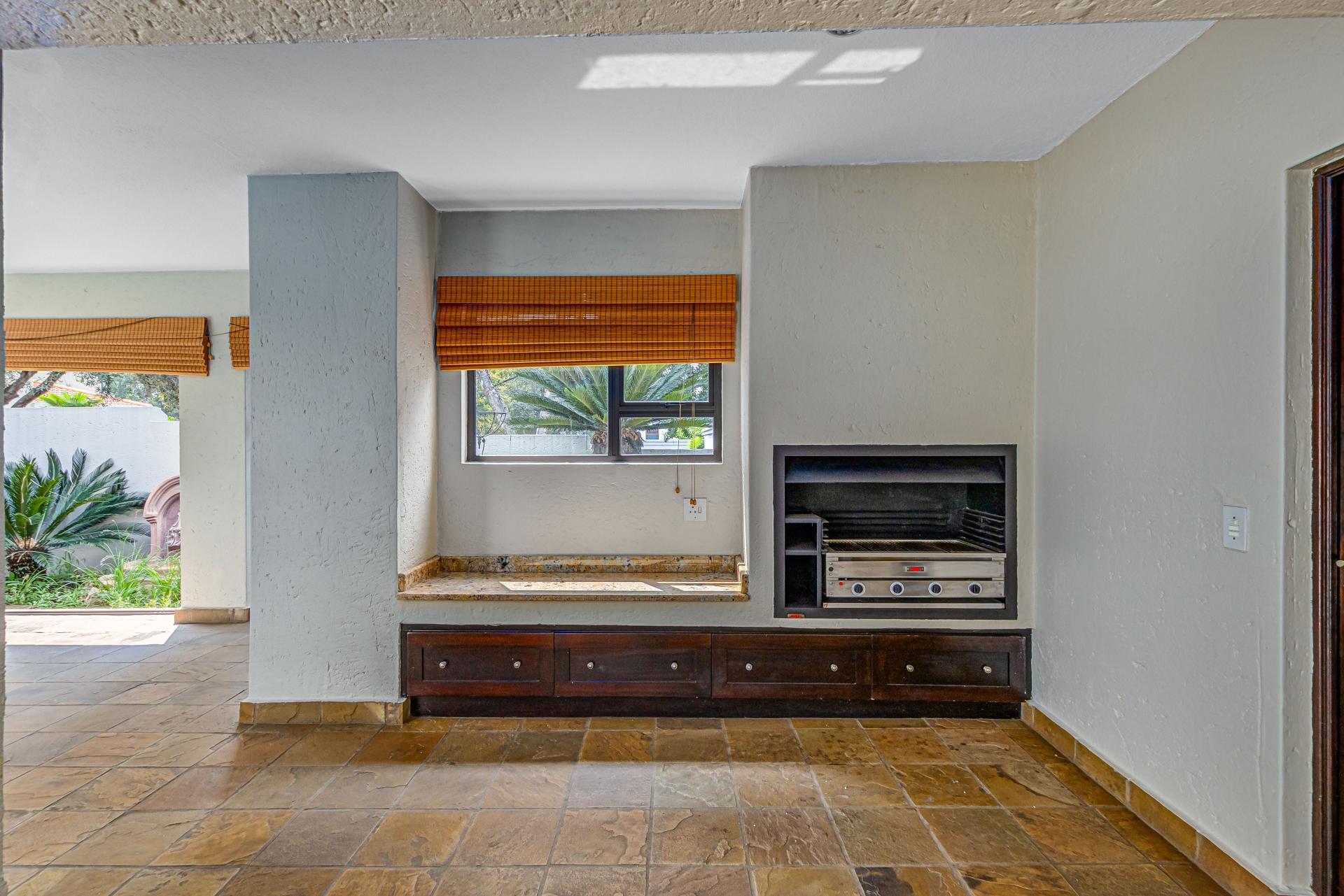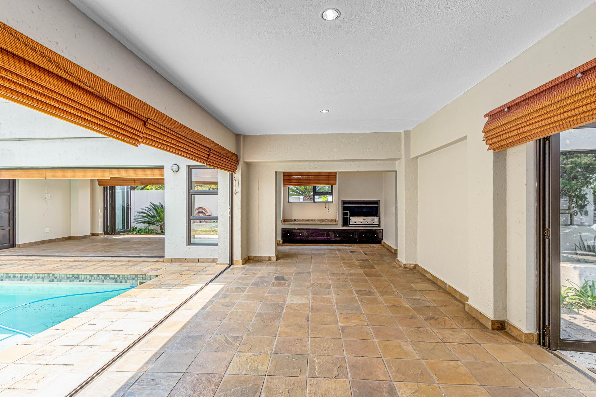 The L-shaped patio is a standout feature, offering a built-in braai and aluminium stack doors that open completely, creating a seamless transition to the sparkling swimming pool—perfect for year-round entertaining.
