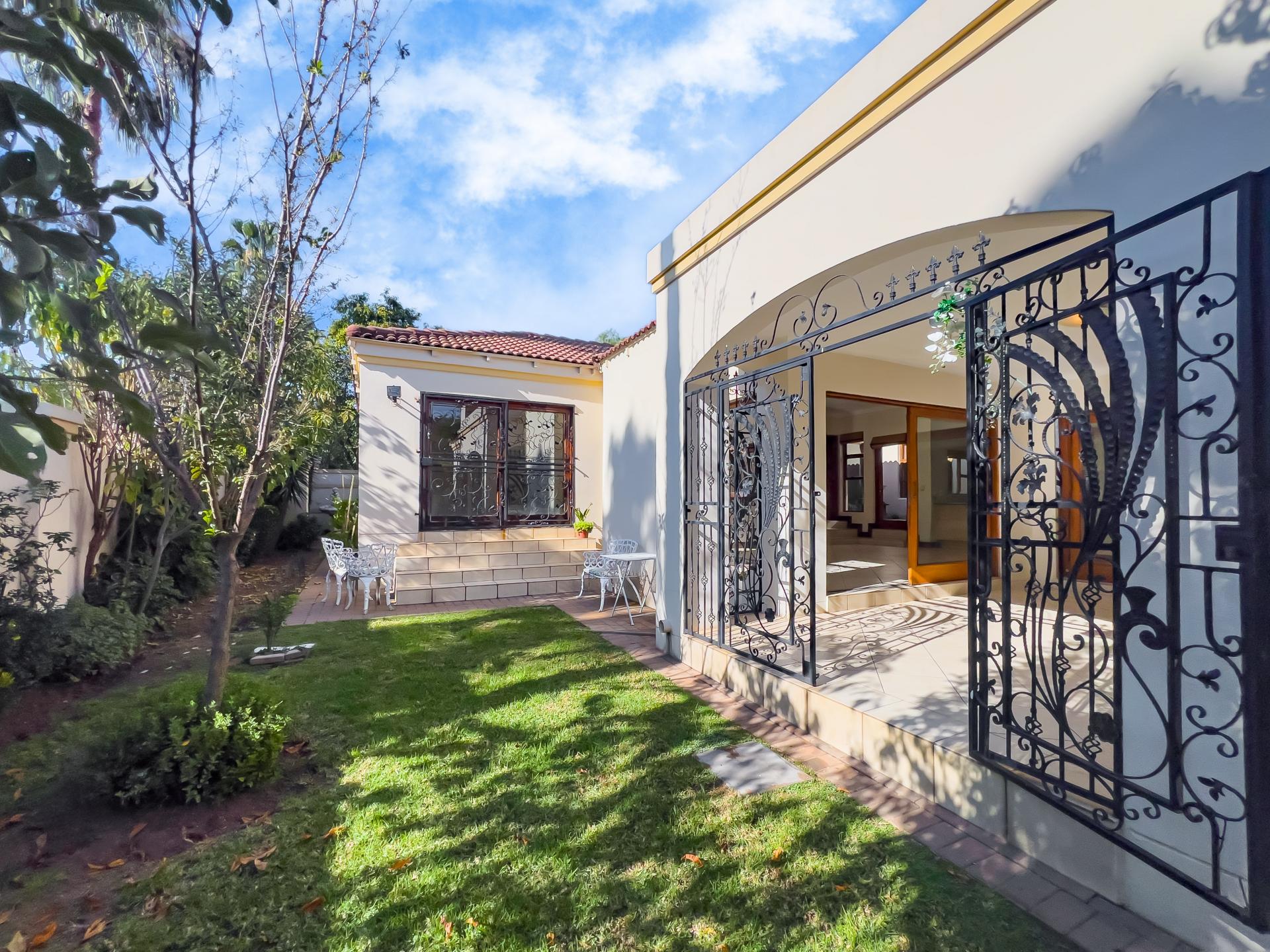 sleeping quarters offer privacy, comprising five bedrooms and two bathrooms, including a spacious, sunlit master suite with direct garden access.