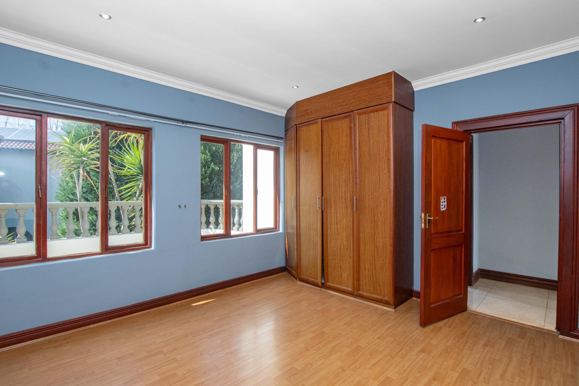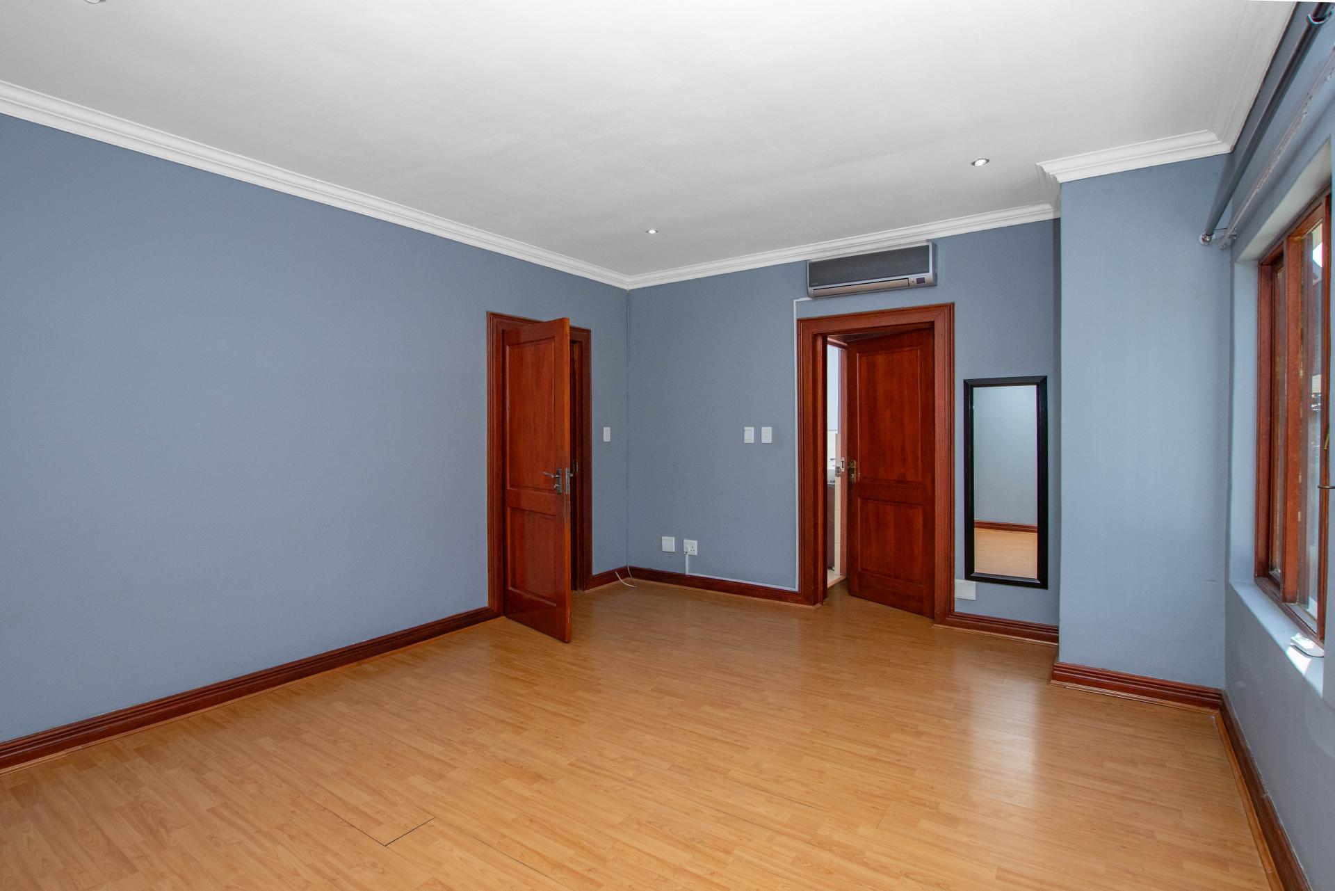 This exceptional property boasts a large en-suite bedroom downstairs, while upstairs, four generously sized bedrooms await. Each room features wooden floors and air conditioning. The master bedroom is a private retreat with a full en-suite bathroom and a private balcony.