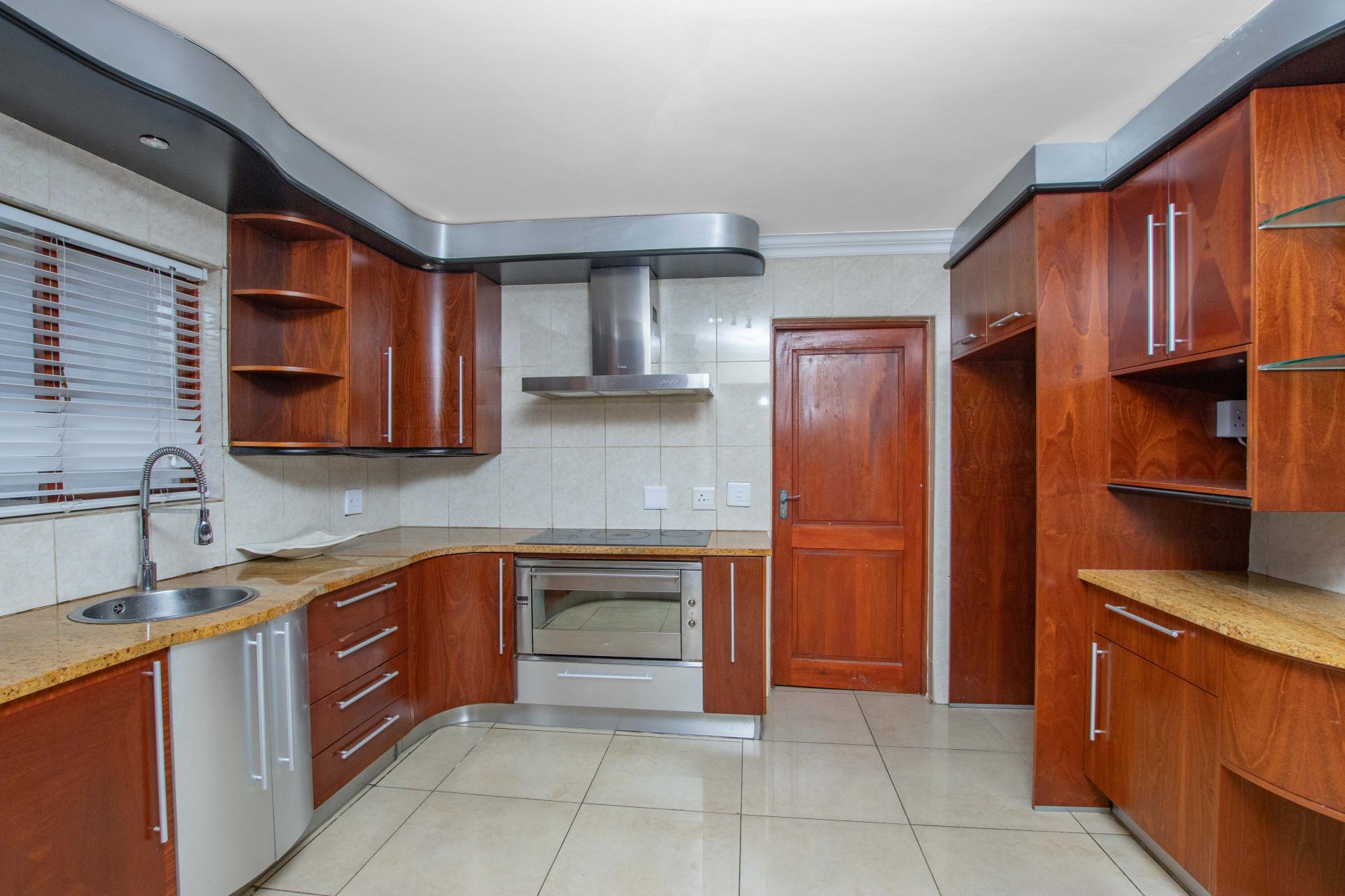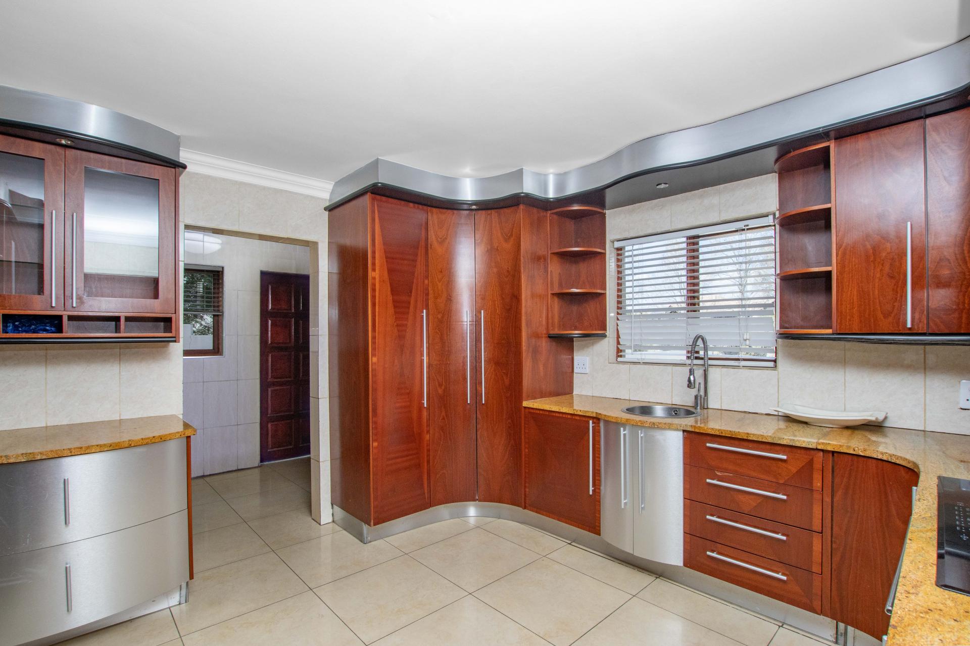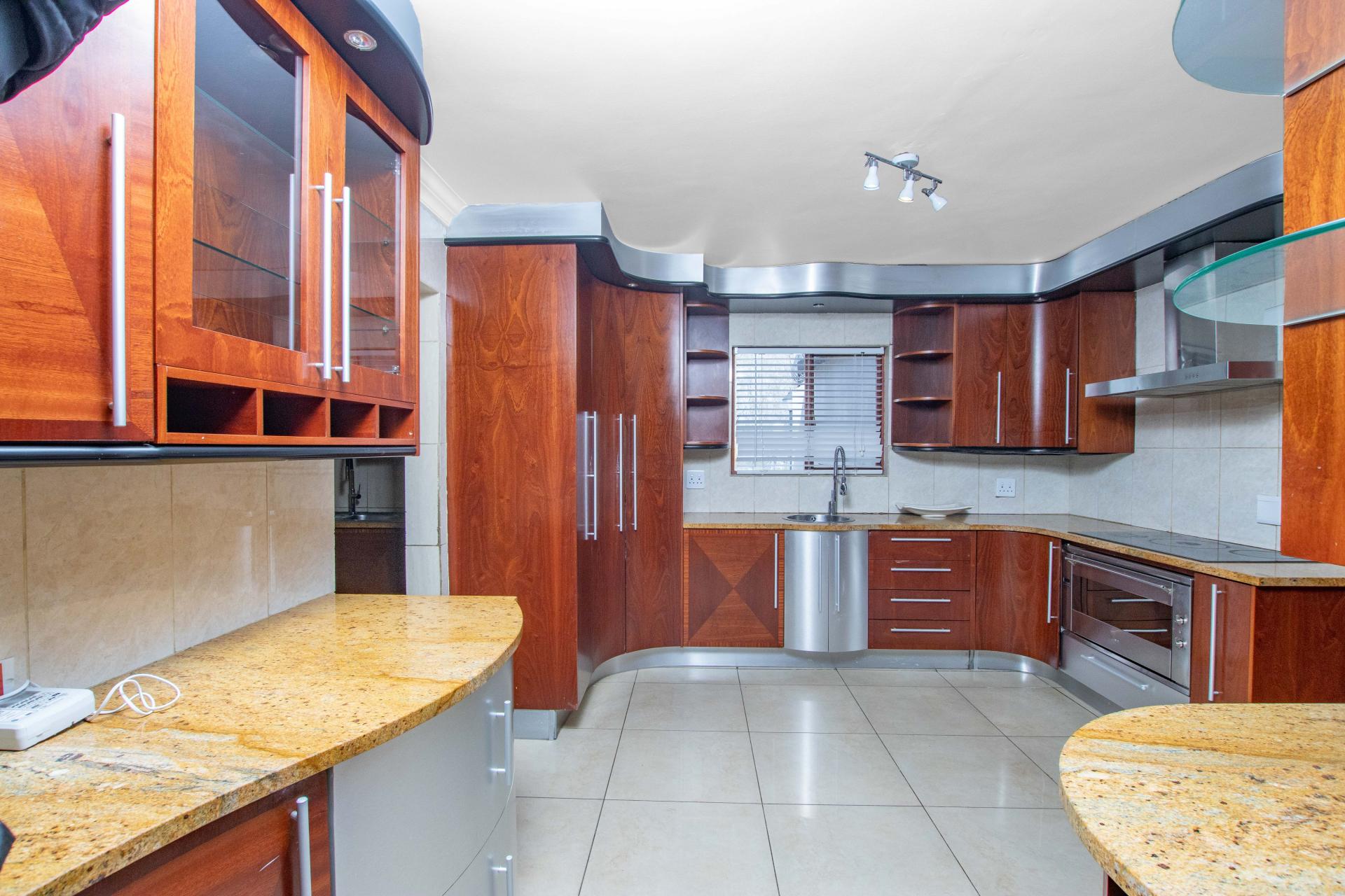 The heart of the home is the gorgeous kitchen, featuring granite countertops, a center island, breakfast bar, and a walk-in pantry. The separate scullery accommodates three appliances and offers ample built-in cupboard space, ensuring functionality and style.