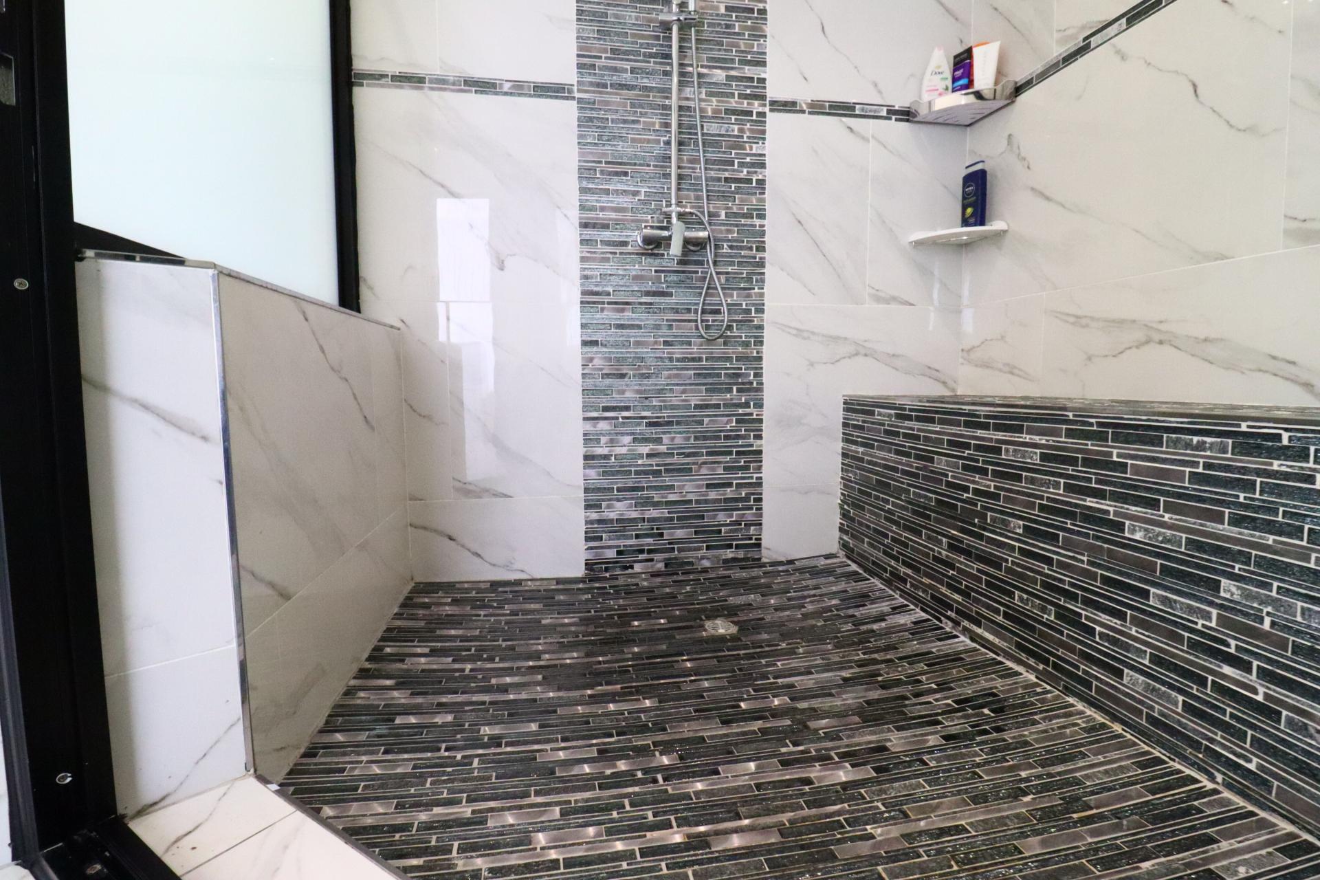 The main bedroom is spacious with a sea view balcony, private dressing room, a full private bathroom with a huge shower, bath, double basinets and WC and additional closet space. Tinted windows, fan, tiled.