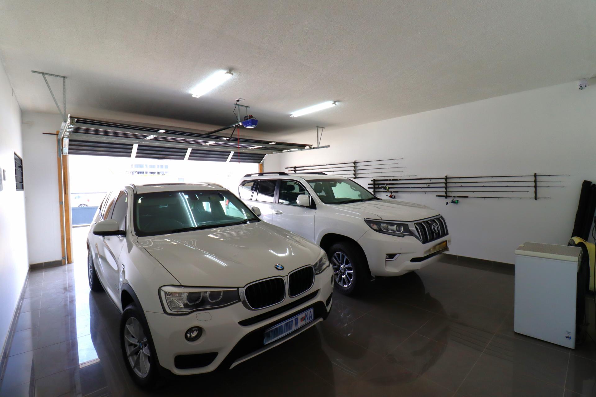 The double garage closest to the main entrance has direct access to the house. Small guest gate with bell.