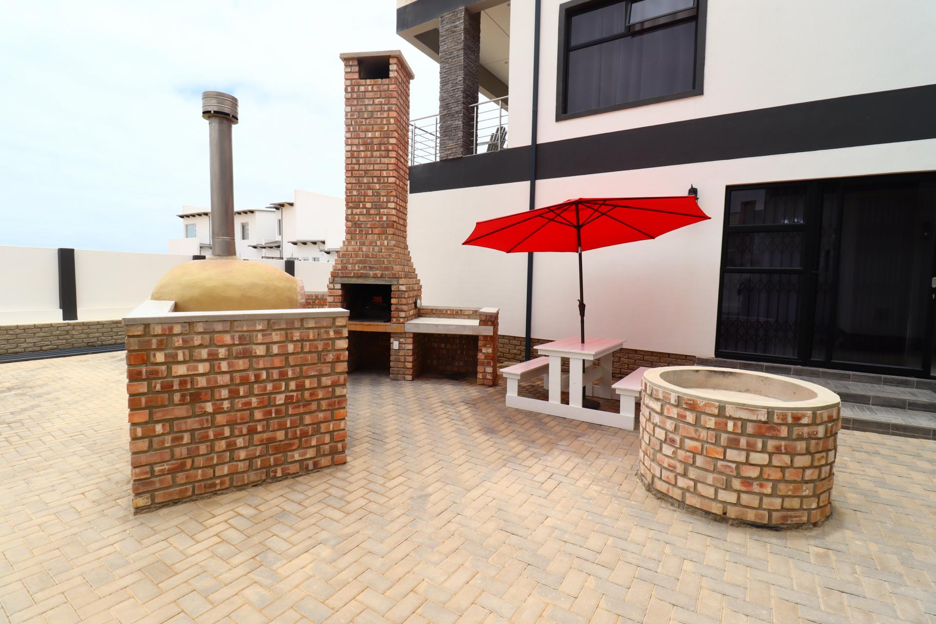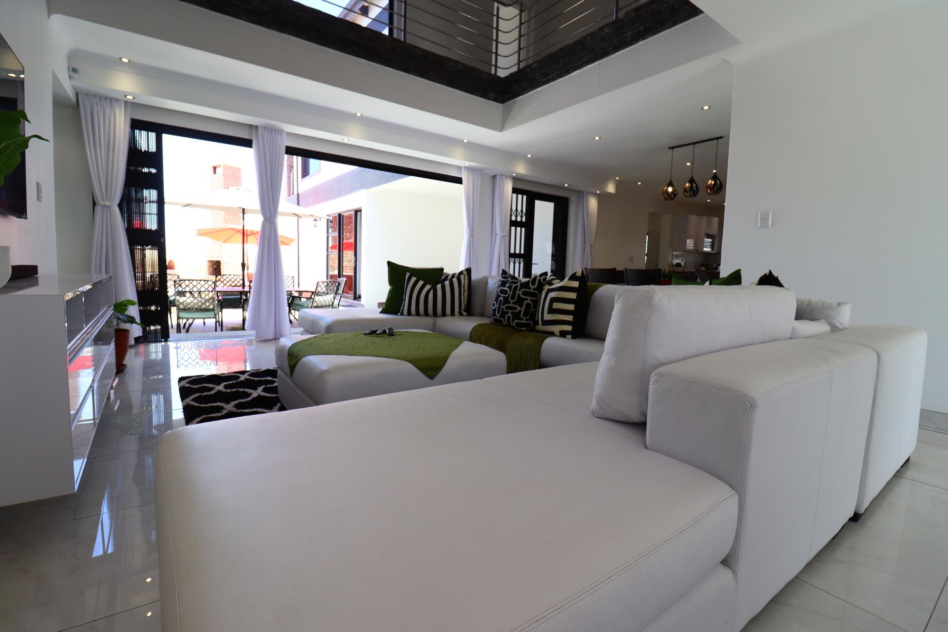 The Ground Floor has a welcoming patio and enters into the classy spacious lounge area with a double volume decorated by a beautiful chandelier. Stacking doors opens onto a private beautifully tiled patio for family and guest entertainment with an outdoor BBQ and Pizza Oven (wood fire), Bonfire, and outdoor shower to wash off the sand and ocean after a beach visit.