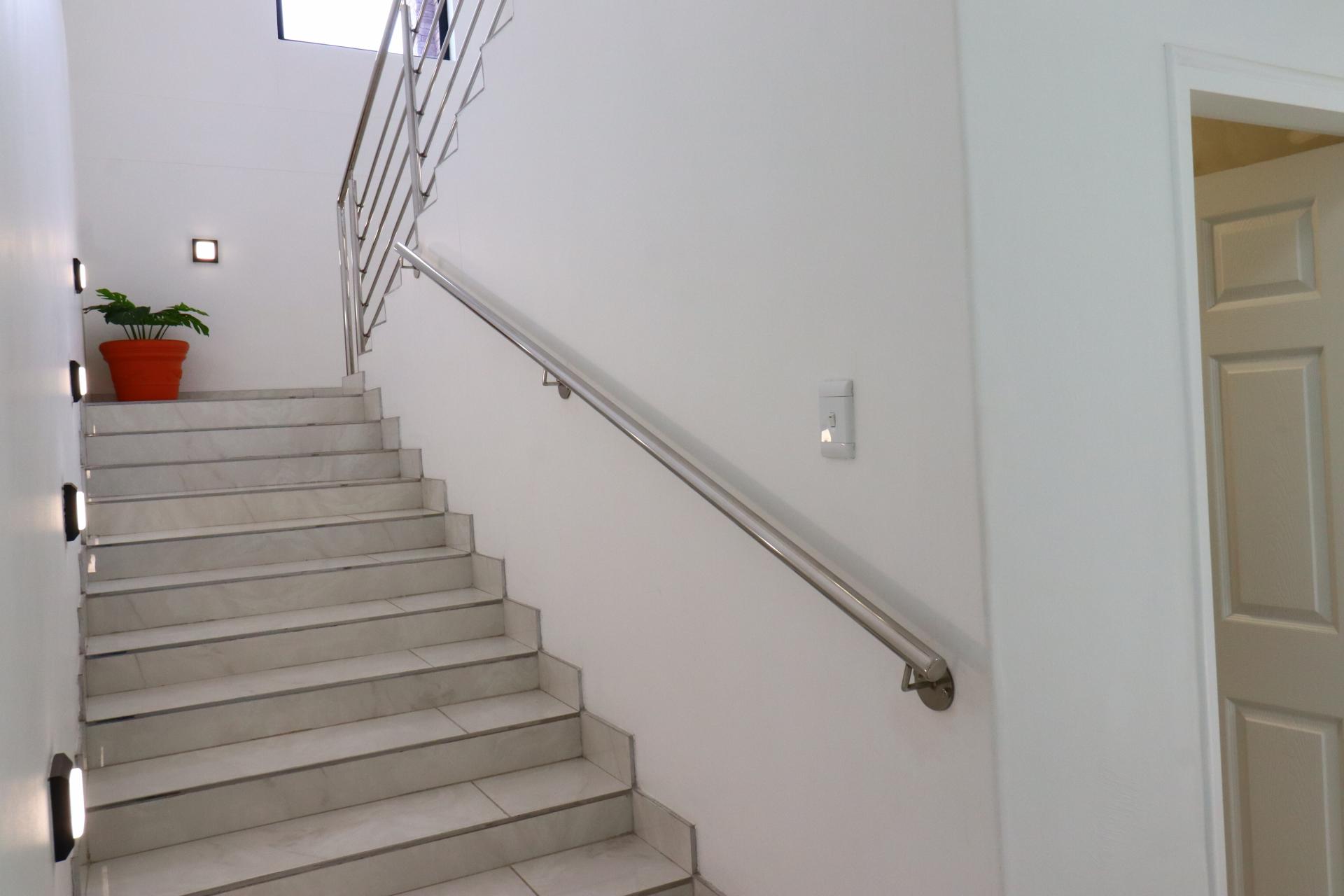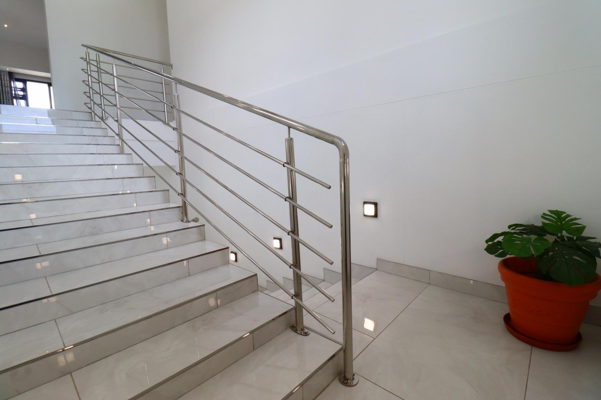 An easy to climb staircase add to the sleek and modern look of the house with fitted lights for the evening.