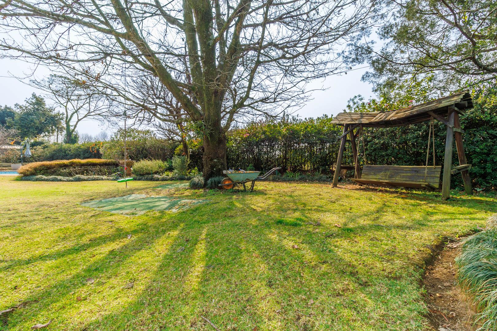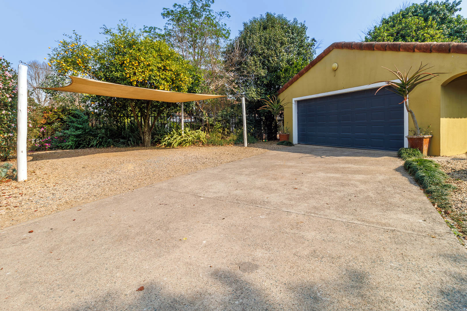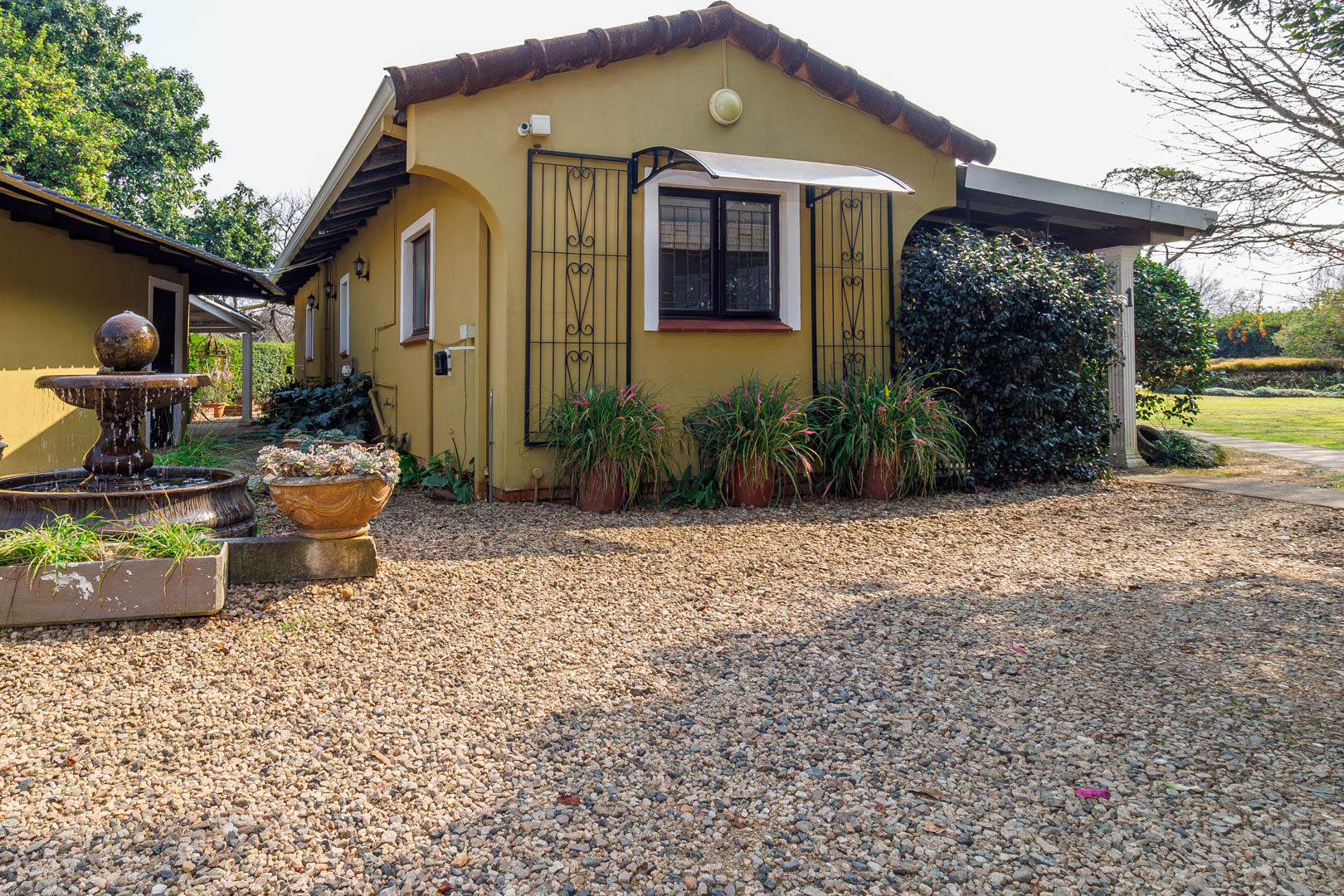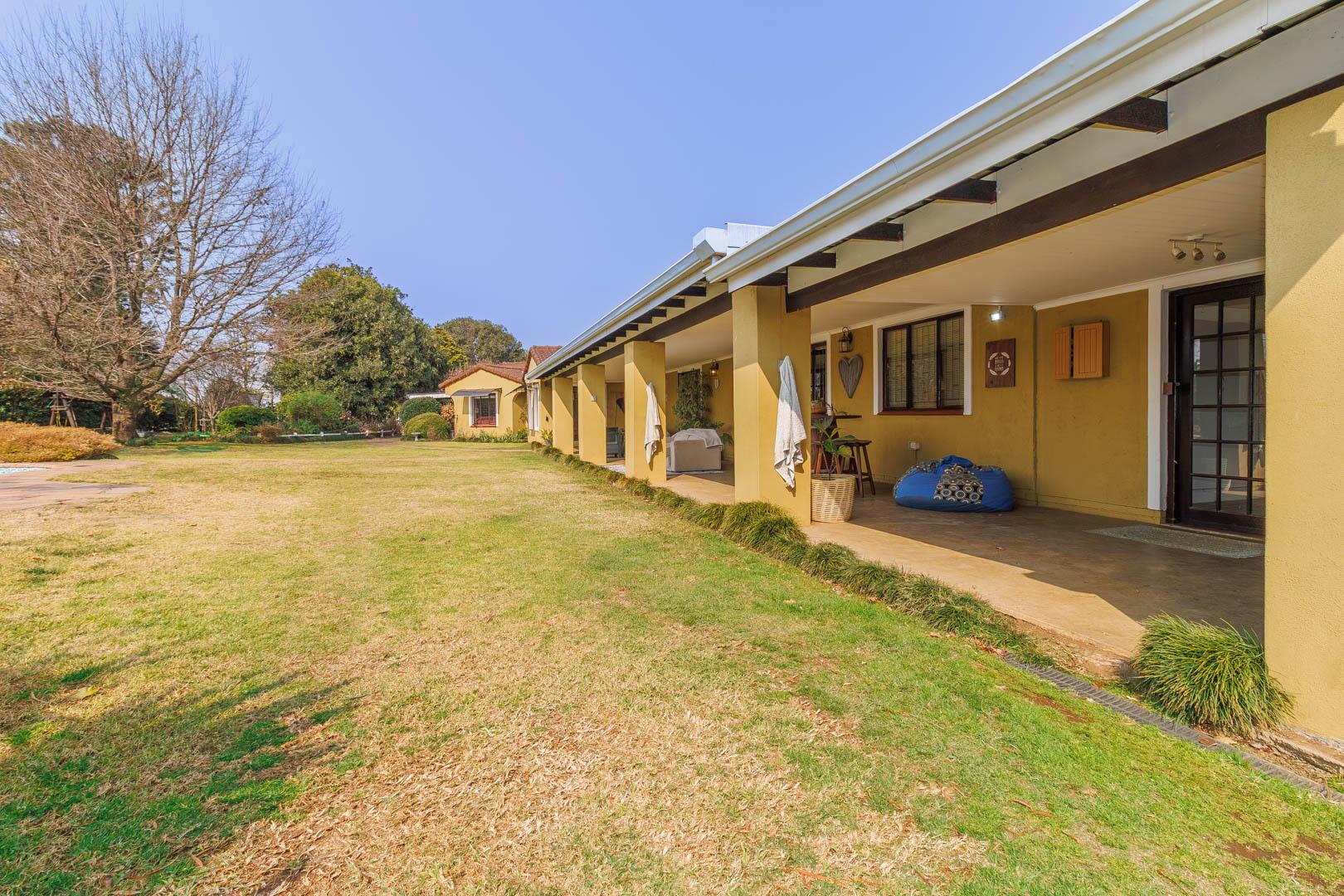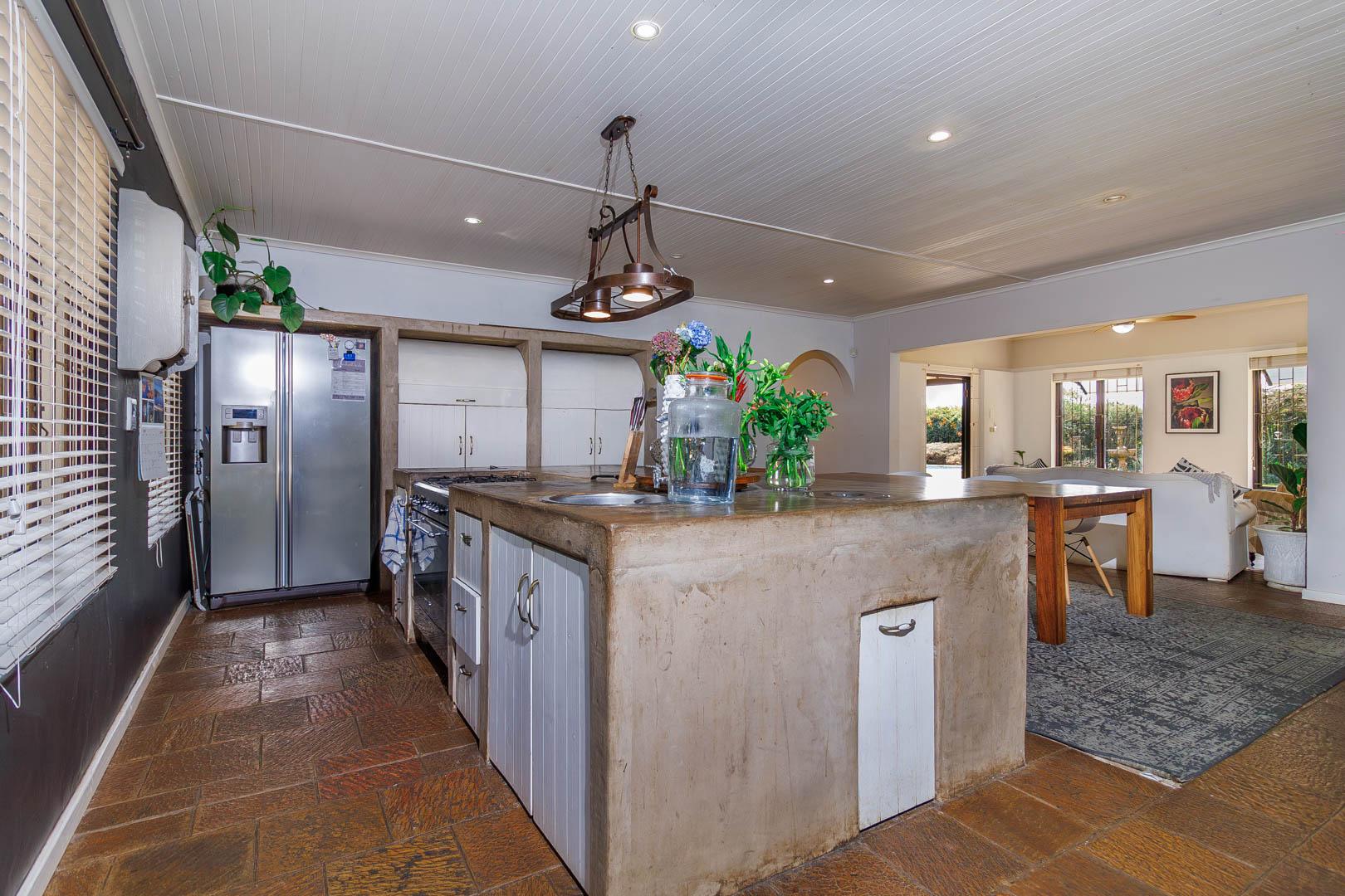 Practical extras include a three-car carport, double garage with secure storage, domestic quarters, and a sophisticated rainwater storage and solar heating system, ensuring efficient water use and cost savings.