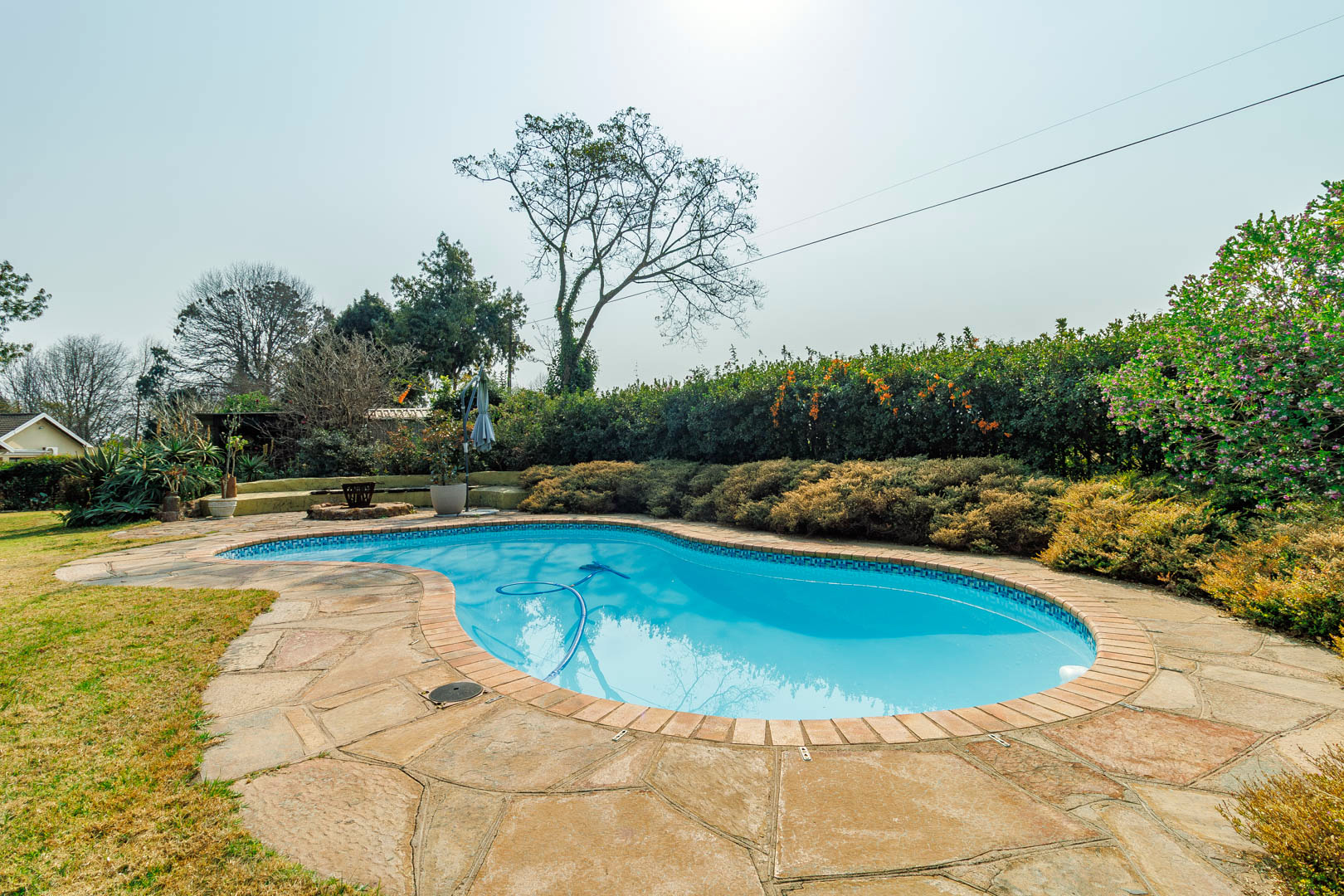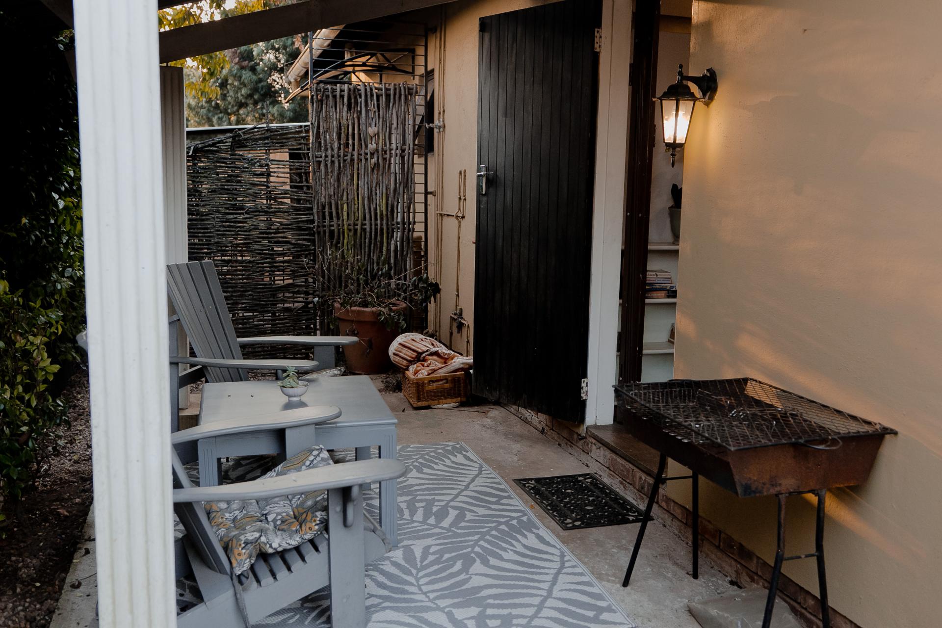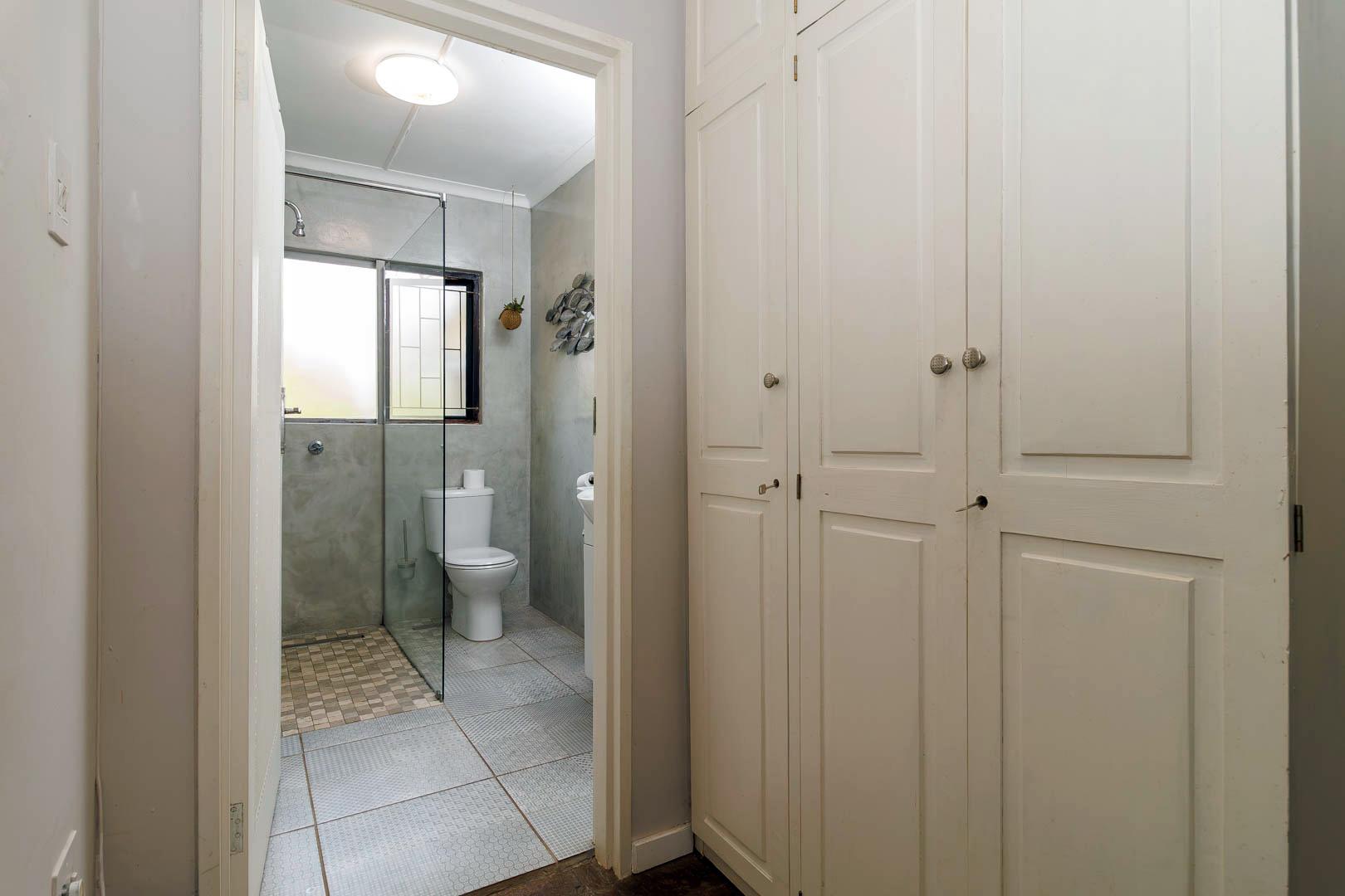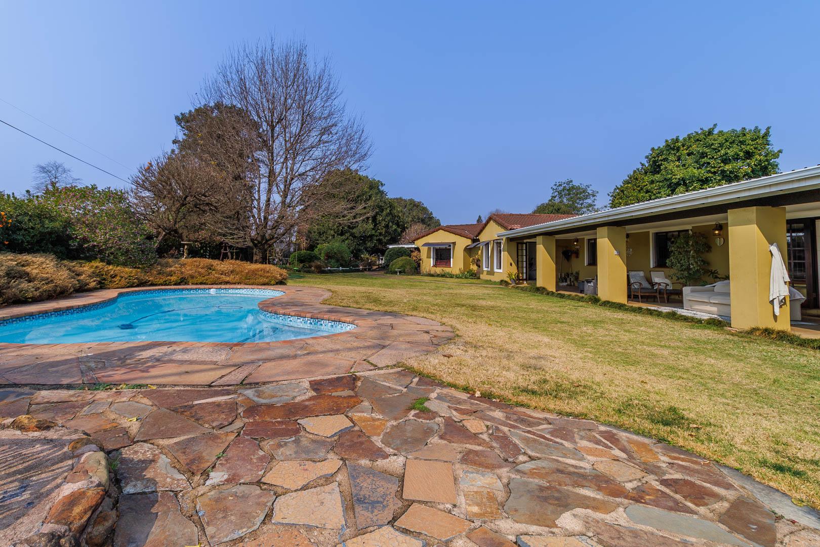 Step outside to find a generous, covered veranda with a built-in braai, overlooking a sparkling pool and beautifully manicured garden—a perfect setting for outdoor entertaining. The property is also equipped with innovative water-saving features, including a greywater system and solar technology, ensuring significant monthly savings.