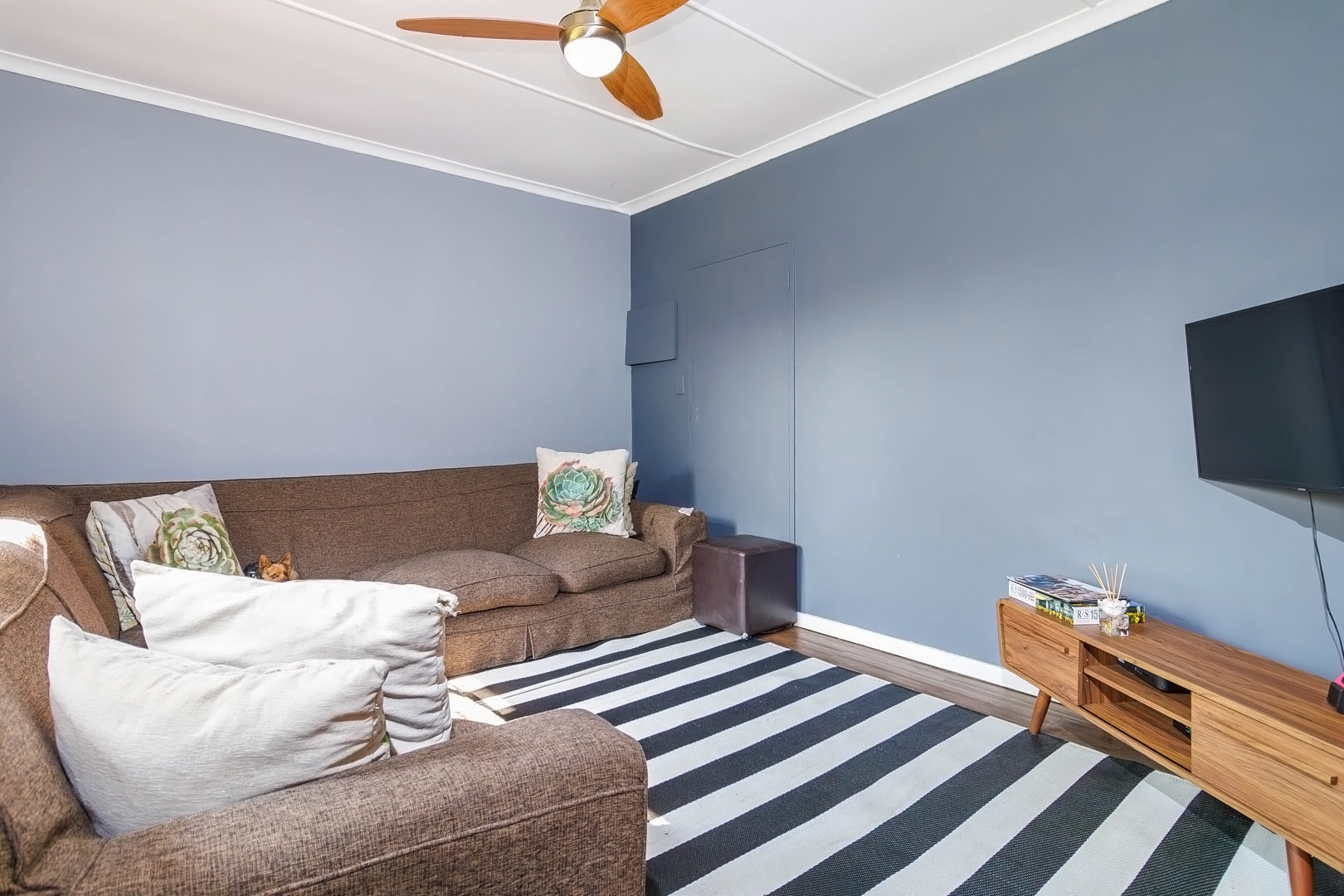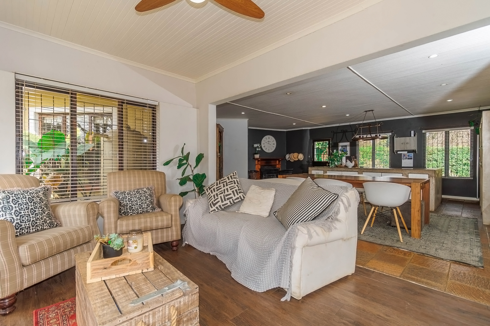 The open-plan lounge, dining, and kitchen area invites family gatherings, while a separate lounge offers space for cozy movie nights.
