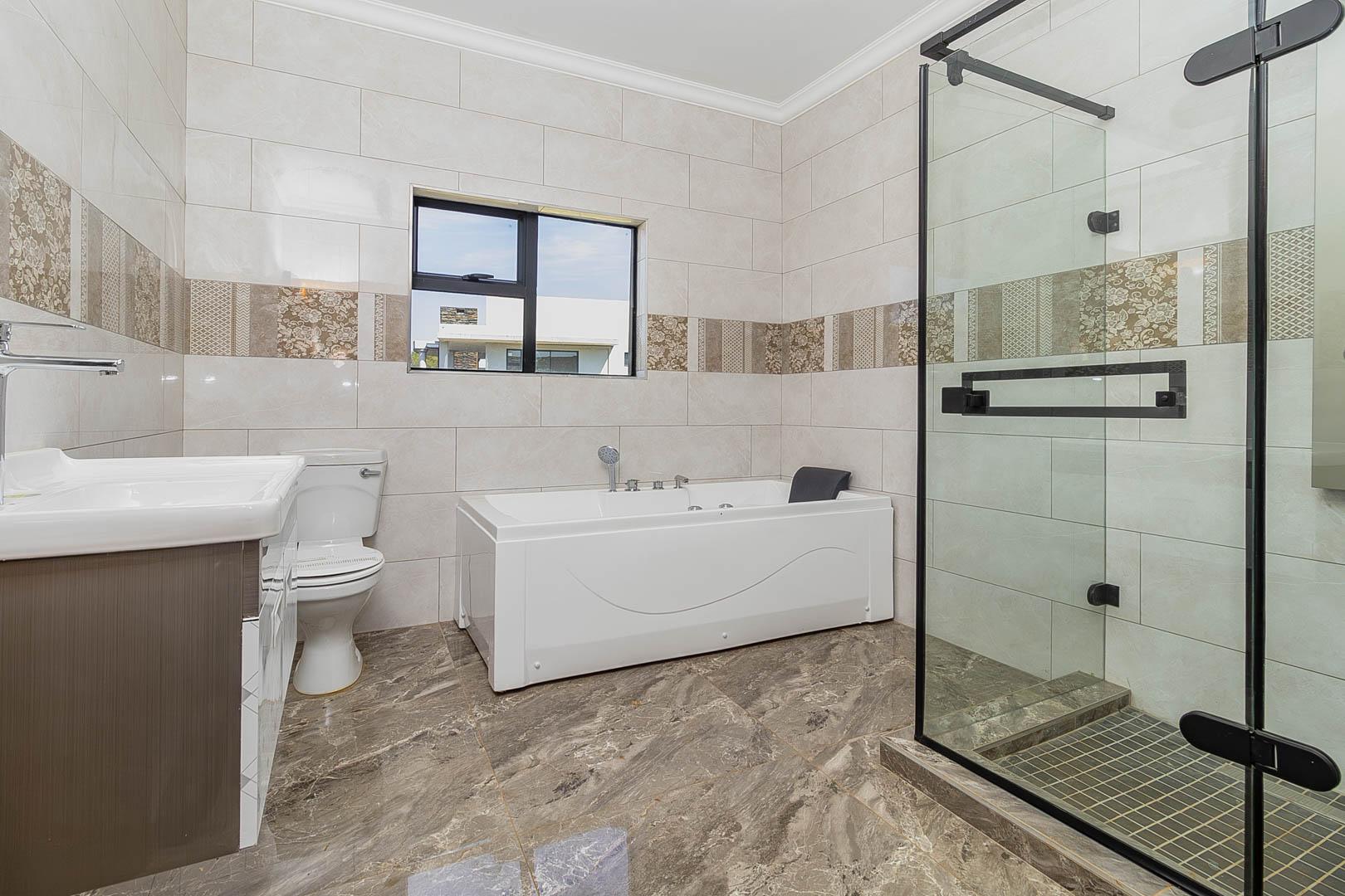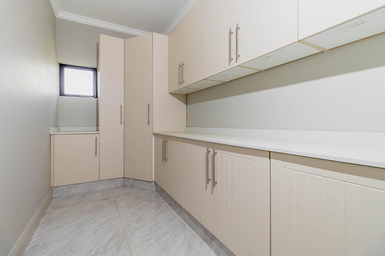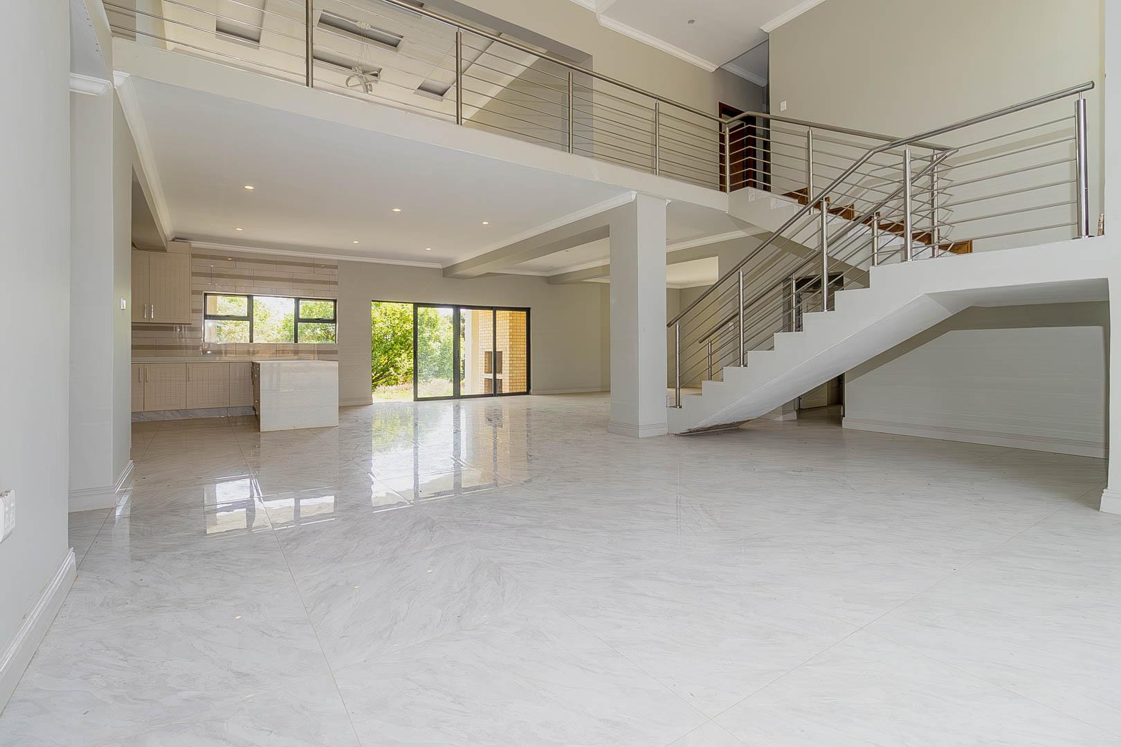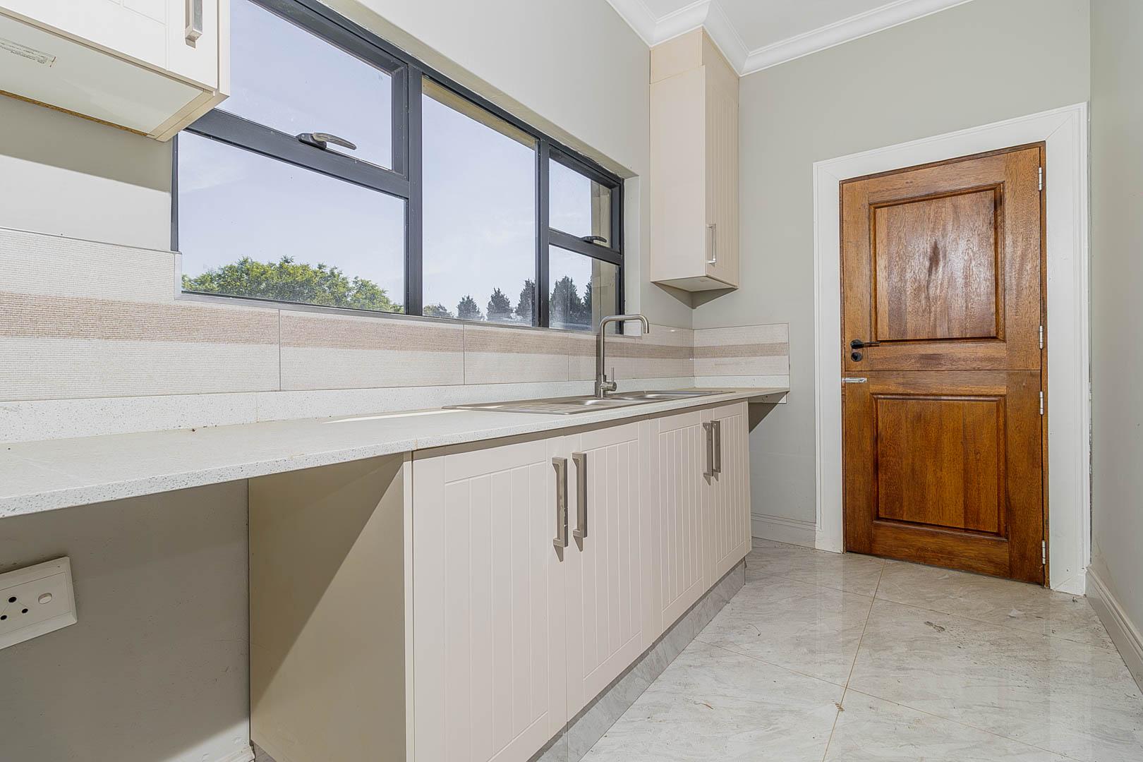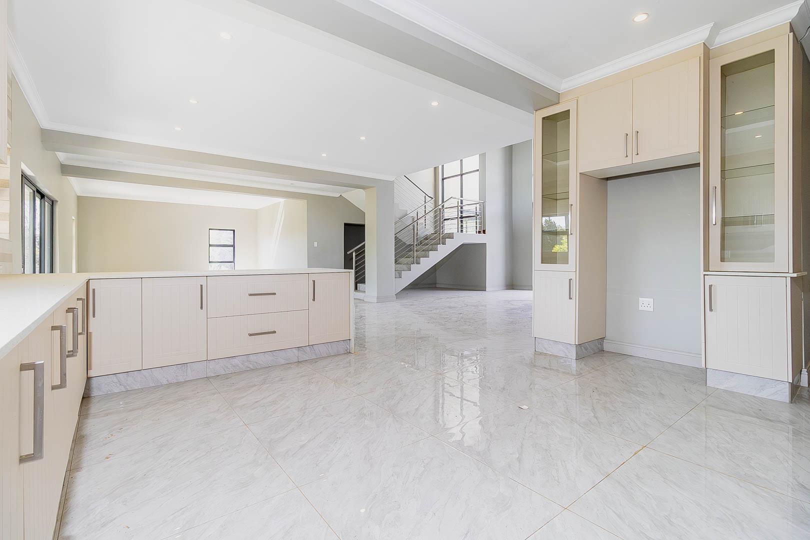 Tucked away on a quiet street, this stunning 5-bedroom, 5.5-bathroom home offers modern luxury in a sought-after location, just minutes from the hospital, shops, and top schools. The heart of the home is its expansive, beautifully designed kitchen, with sleek finishes and plenty of space for family meals. The open-plan layout extends to the living and dining areas, complete with a built-in braai for year-round entertaining.