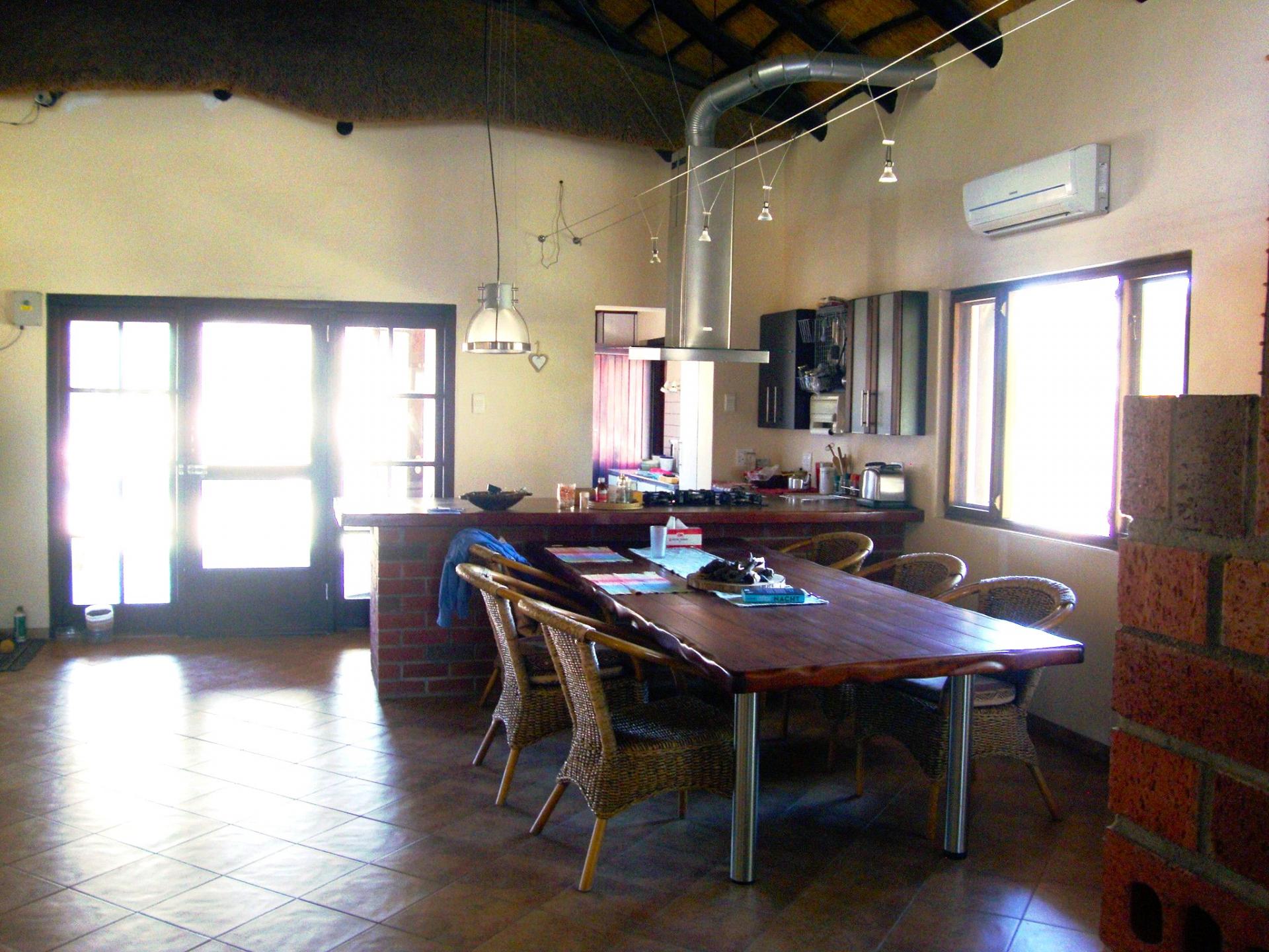 The smallholding features a swimming pool, a main thatched roof house, 3 fully equipped bungalows, carports, a garage, and employee rooms with an outdoor kitchen.