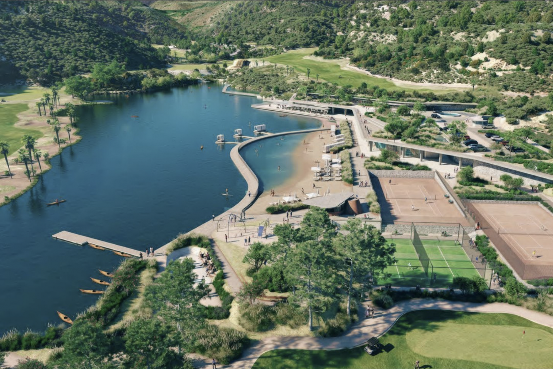 • a stunning central lake for water activities