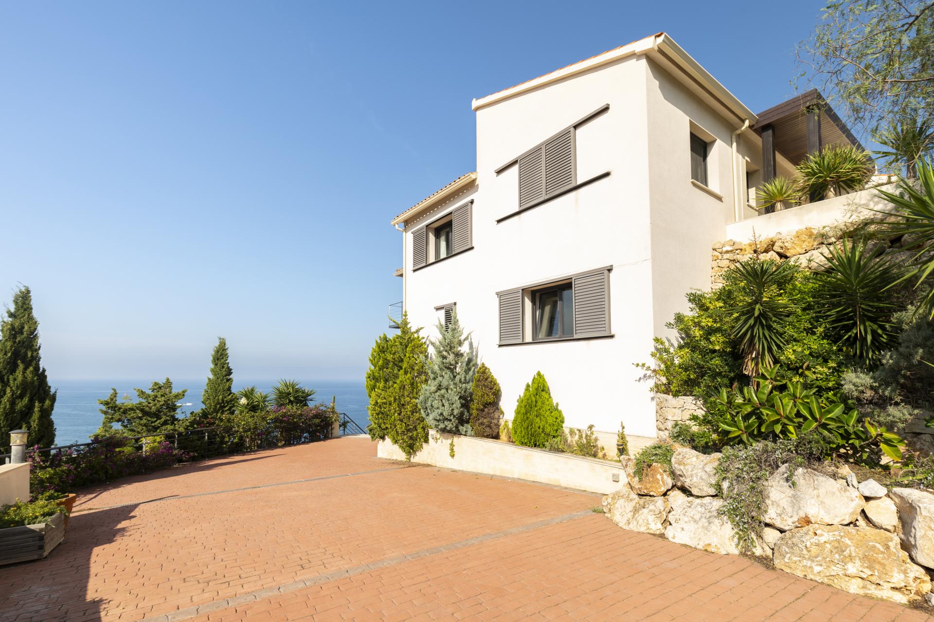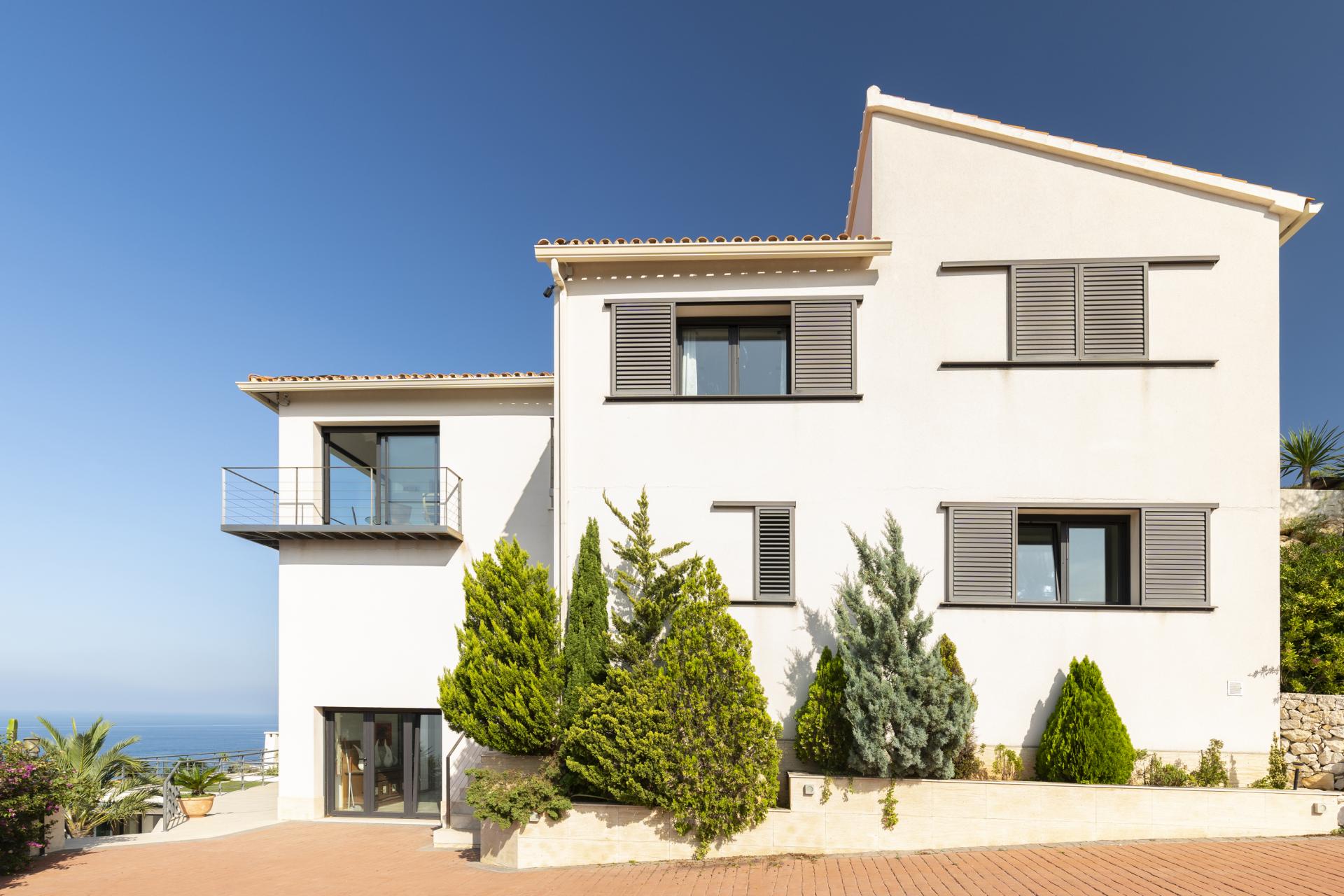 The main front exterior of the property may appear modest but looks can be deceiving as you will see from the other impressive façades and once you step inside the interior boasts expansive and luxurious spaces that are sure to captivate and impress as you step into the light bright and inviting entrance hall that sets the tone for the rest of the property. With your eyes constantly drawn to the sea views the spacious living area boasts a modern glazed fireplace as focal feature for the lounge & TV area which then further expands by opening the sliding wooden doors into a reading/relax room, the fully fitted kitchen and dining area are thoughtfully integrated into the same main lounge area perfect for family living requirements, the glass expanses make the most of the breath-taking views that encompass every corner, from the dining and kitchen there is direct access to an east-facing terrace, a perfect spot to enjoy the morning sun. The master bedroom is a private sanctuary, featuring an en suite bathroom, a walk-in dressing room, and its own access to the terrace. An additional bedroom with an en suite bathroom, an office that could easily double as a bedroom, and a guest toilet with a shower complete the well-designed layout on this floor.