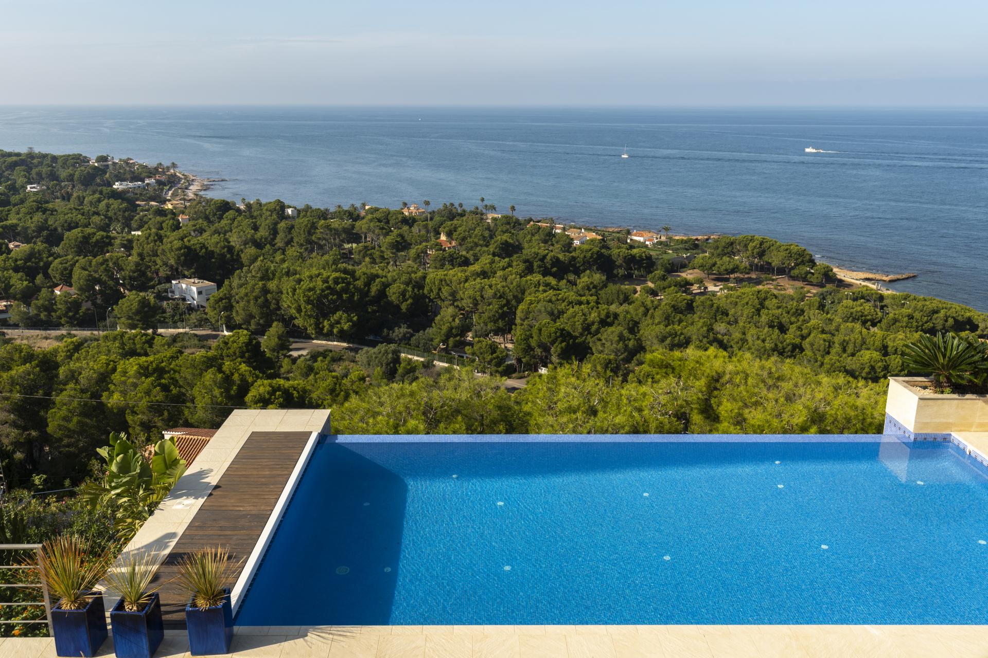 PROPERTY AT A GLANCE Designed to make the most of the breath-taking views of the Mediterranean sea, Denia castle, and the dramatic backdrop of the Montgó mountain. This property embraces the sought after and highly desired Mediterranean outdoor living, with seamless transitions between the interior and exterior. With terraces on different levels providing a variety of options for enjoying the beautiful surroundings and a glass elevator that adds a touch of luxury and convenience, allowing easy access to all four levels of the property including to the summer entertaining and relaxation ready terraces and to the salt-water infinity pool with an endless and envious sea view.