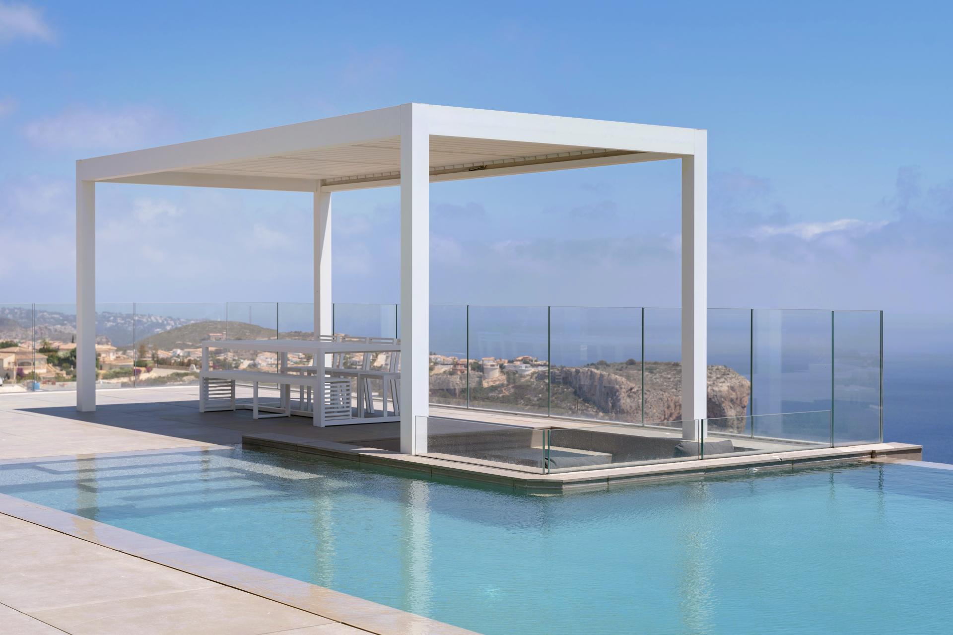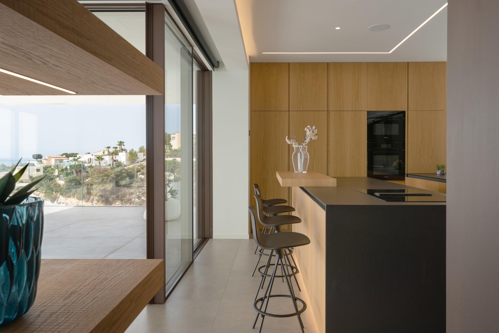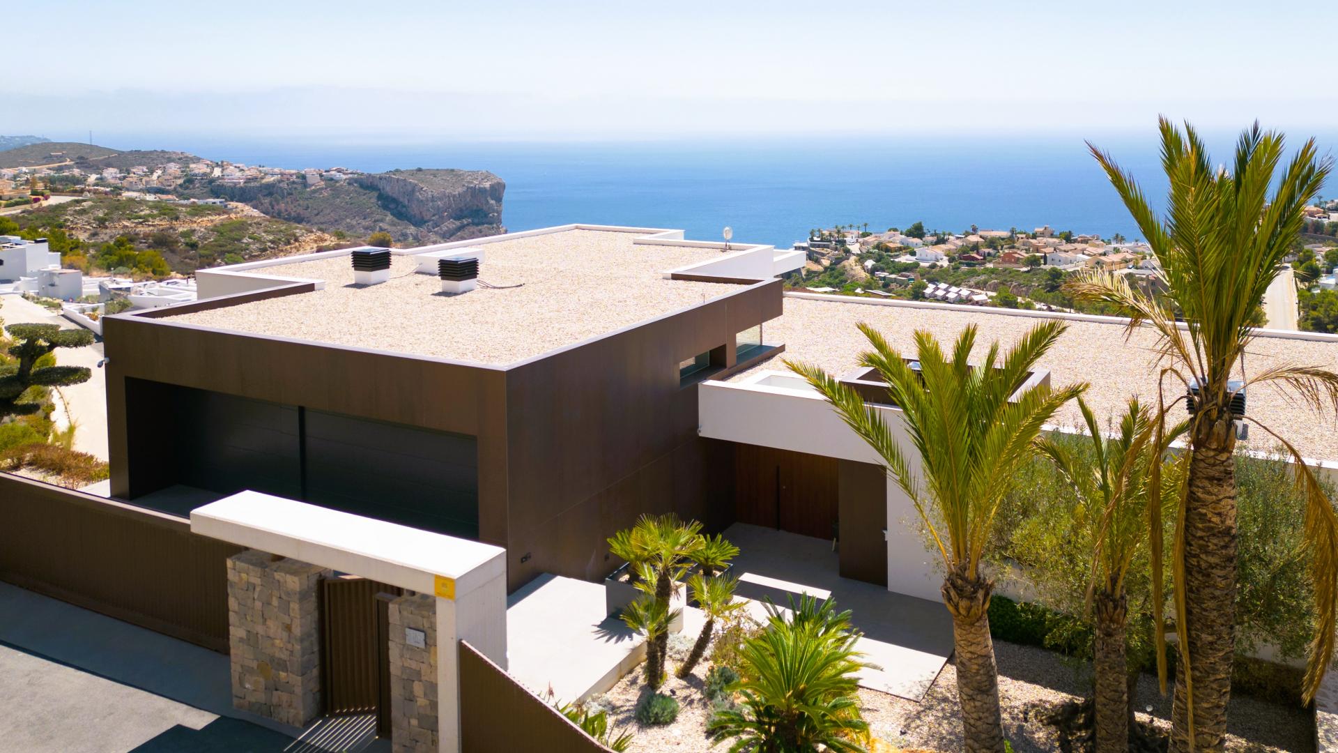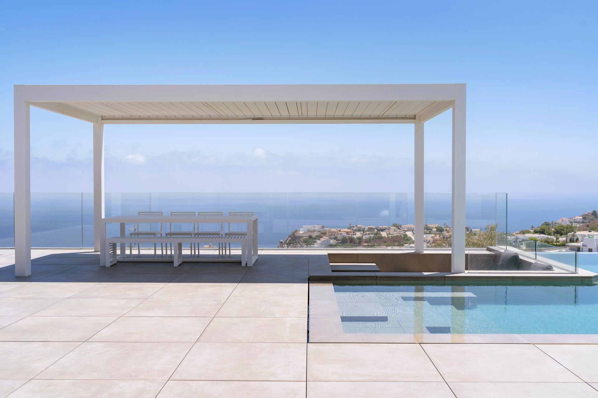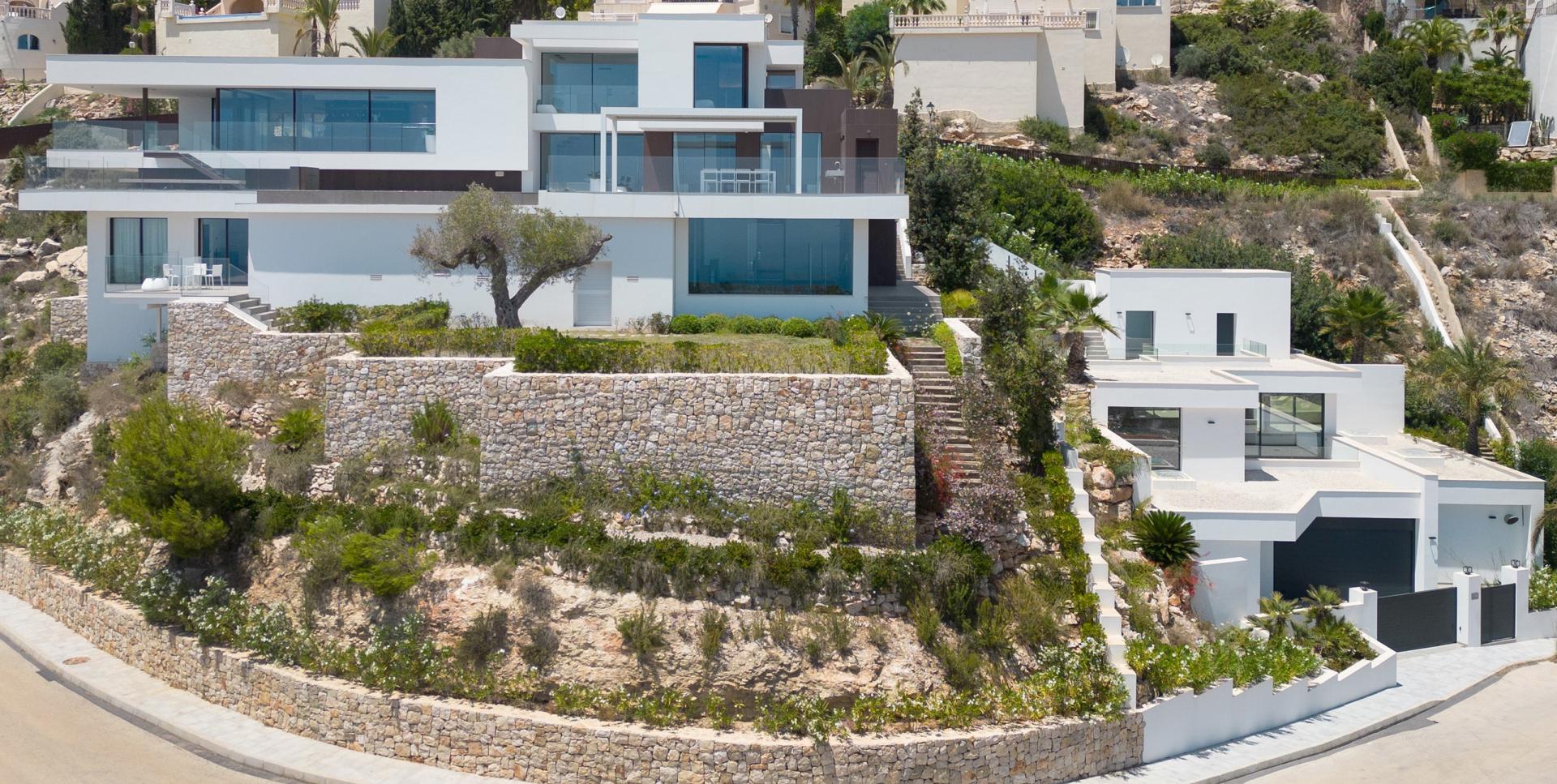 PROPERTY AT A GLANCE A unique south facing property located in an exclusive area of large luxury villas that elegantly overlook the Mediterranean Sea. A stunning modern property in the Spanish Mediterranean, on the Costa Blanca North, this property boasts a living area of 1085 m², five double bedrooms, and seven bathrooms, a luxurious spa area with heated indoor pool with a waterfall and hydromassage shower, a sauna for 4 people, and a fully equipped private cinema. If garaging and parking is a of the highest priority then this property has a double garage with a charging station for electric cars, a gigantic independent garage, accommodating up to ten vehicles converted from the adjacent villa has an impressive gym, accessible by an elevator and internal stairs above it.