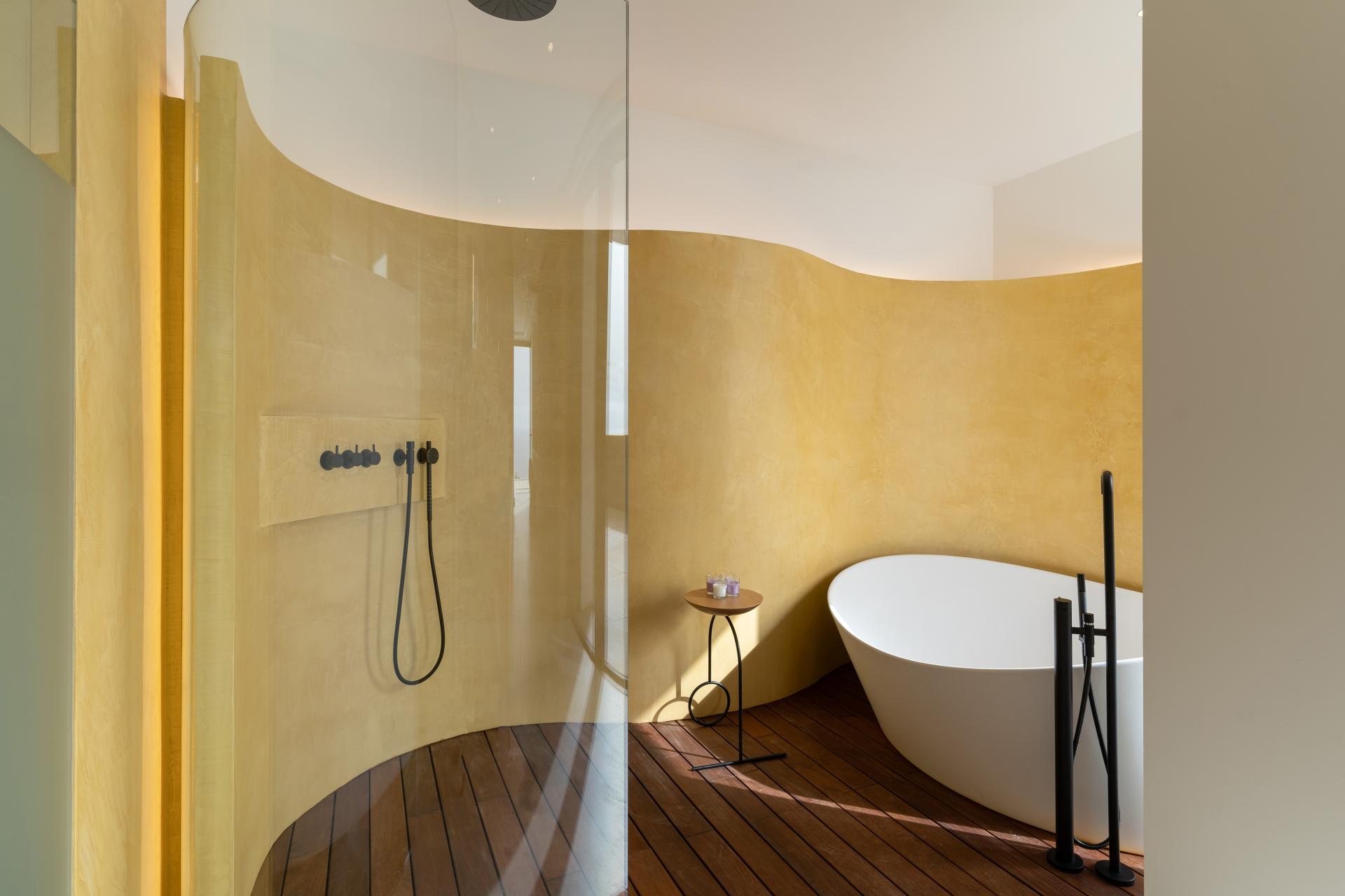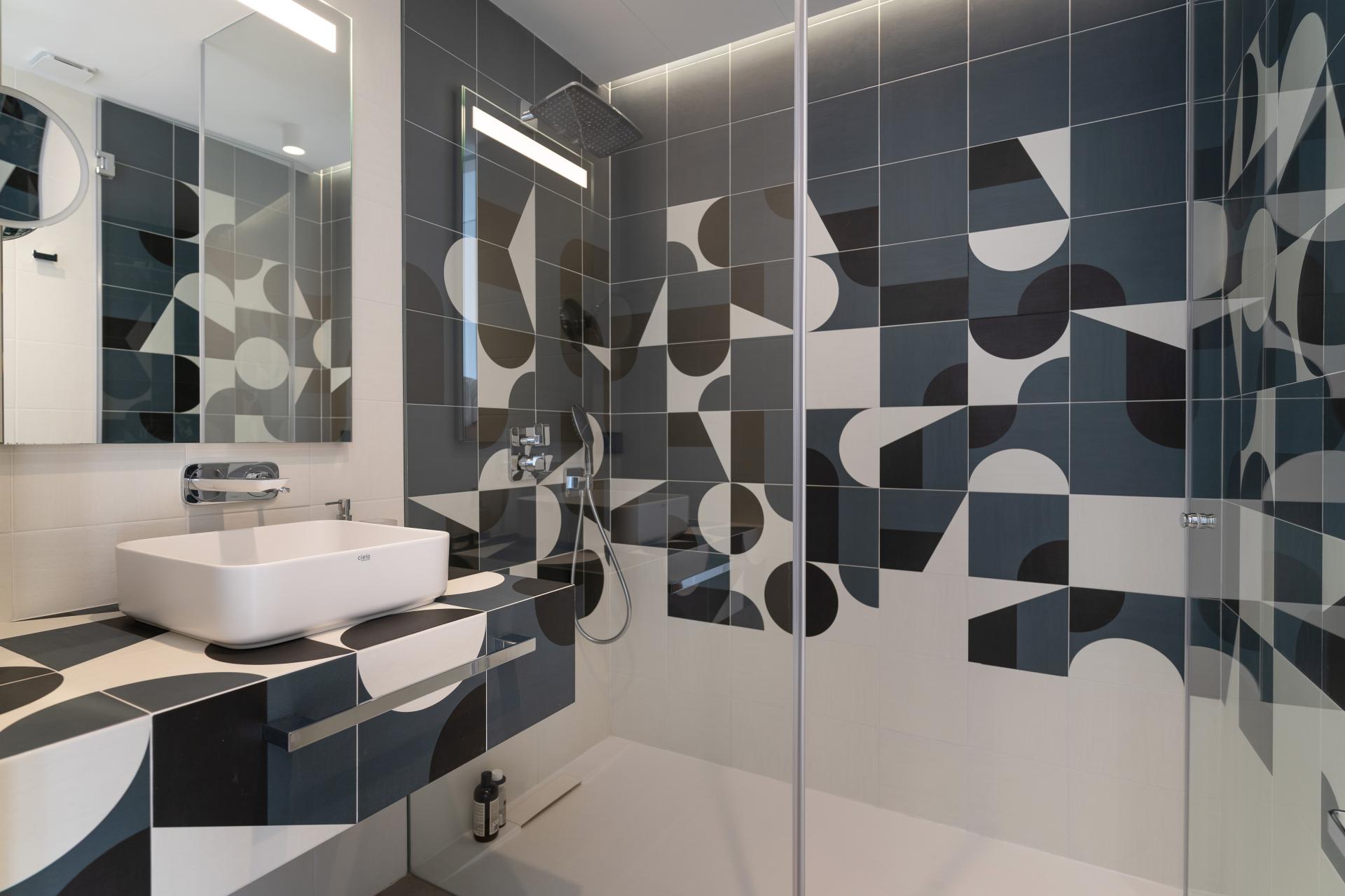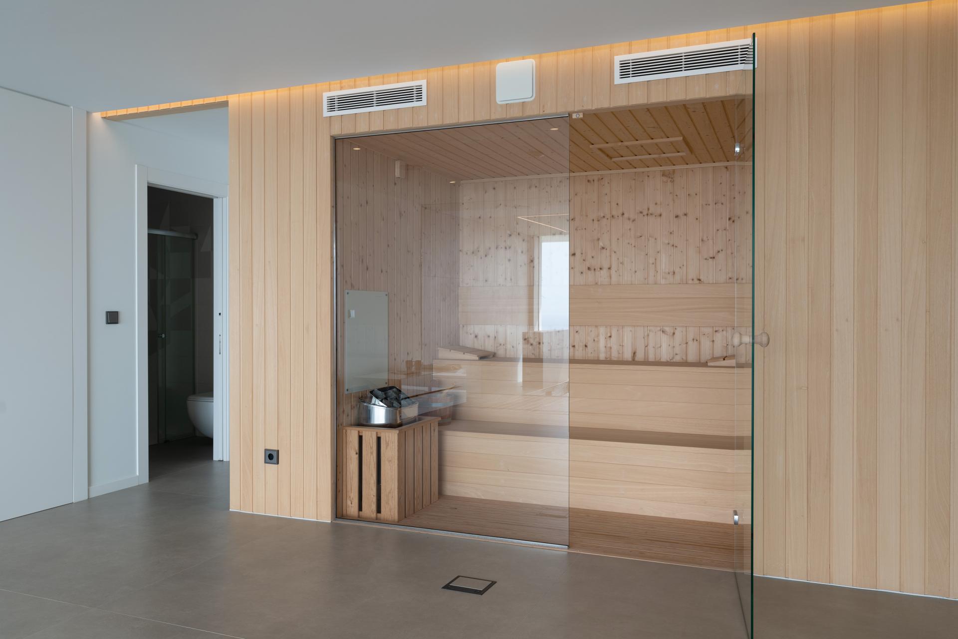 The basement is dedicated to relaxation and entertainment, housing a luxurious spa area with a heated indoor pool, complete with a waterfall and hydromassage shower, a four-person sauna, and a fully equipped private cinema. Imagine watching your loved ones swim through the pool's interior window, adding a touch of magic to your moments of rest. The independent guest apartment, featuring its own kitchen, bedroom, and terrace, ensures complete privacy for your guests.