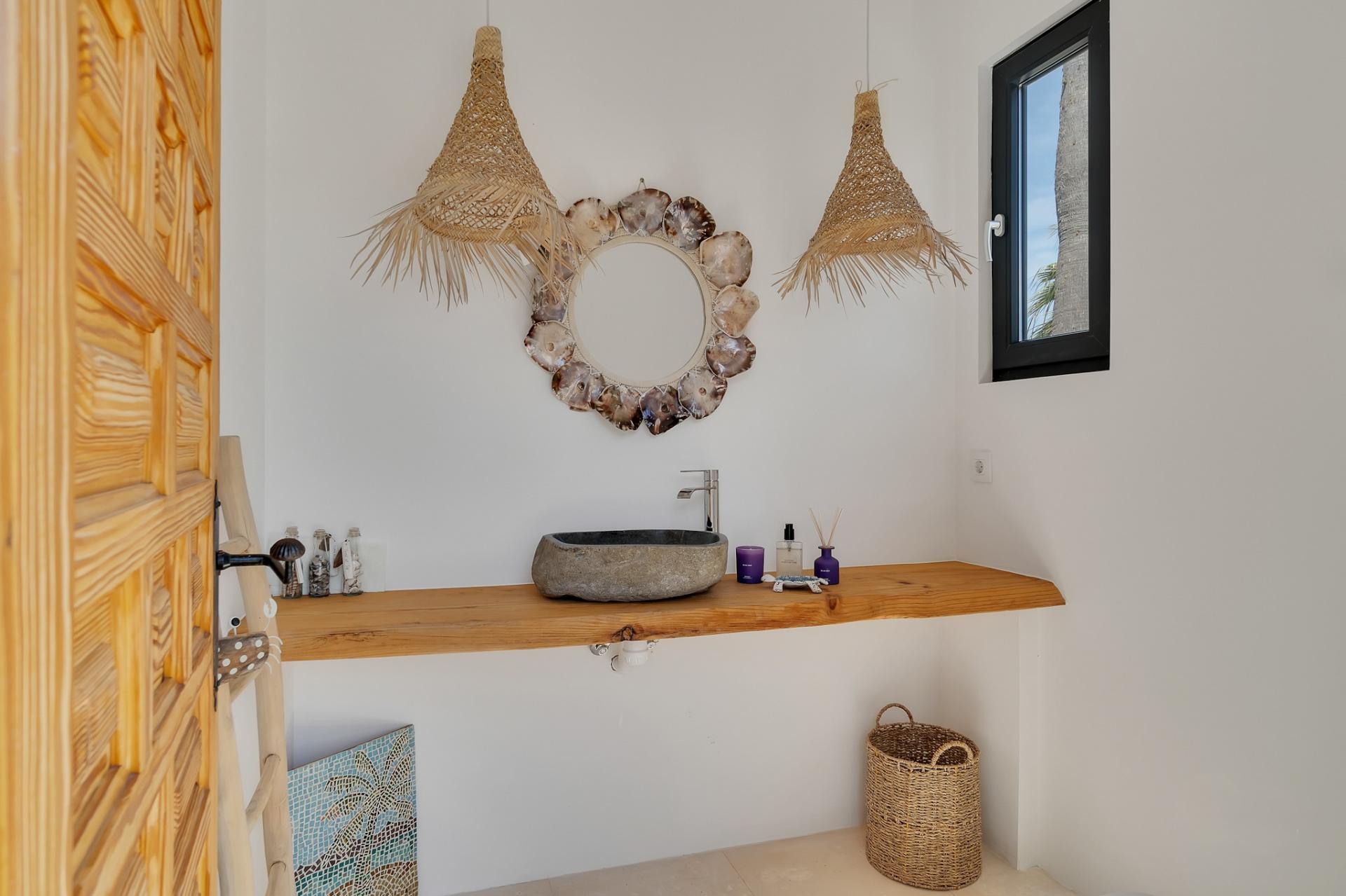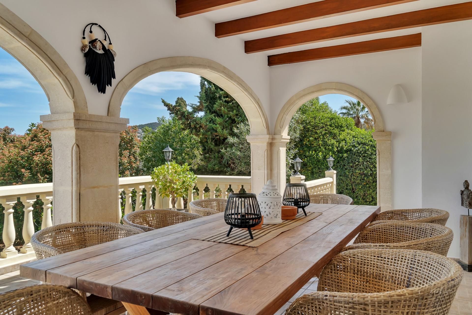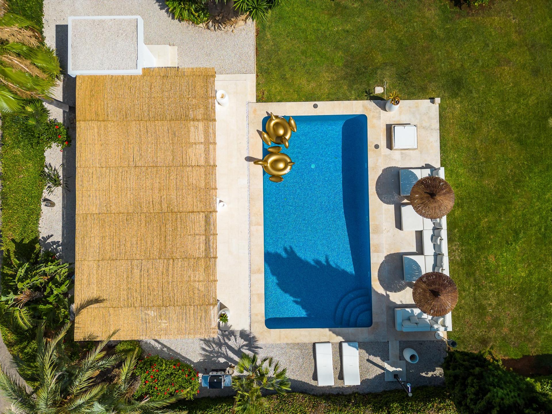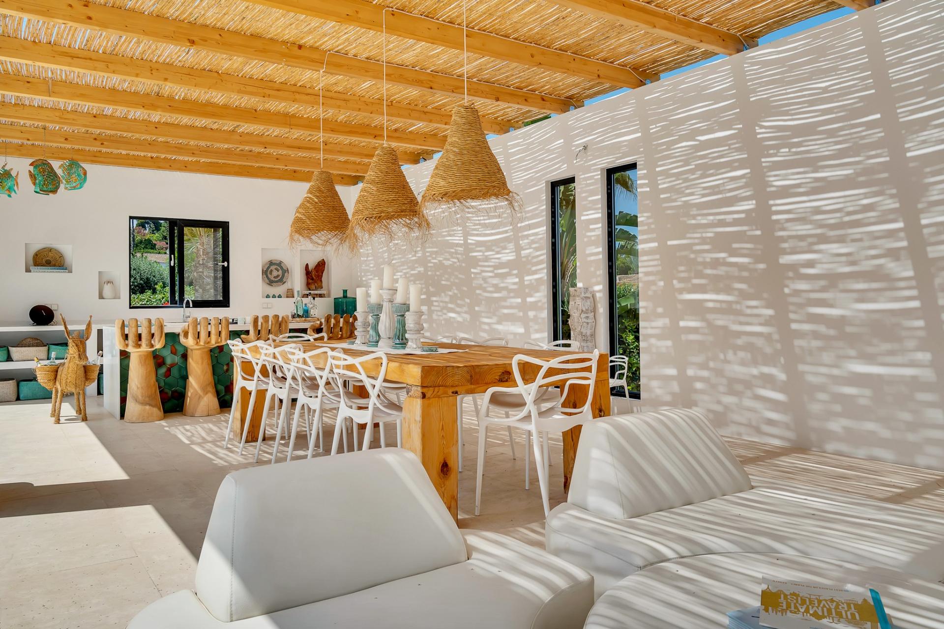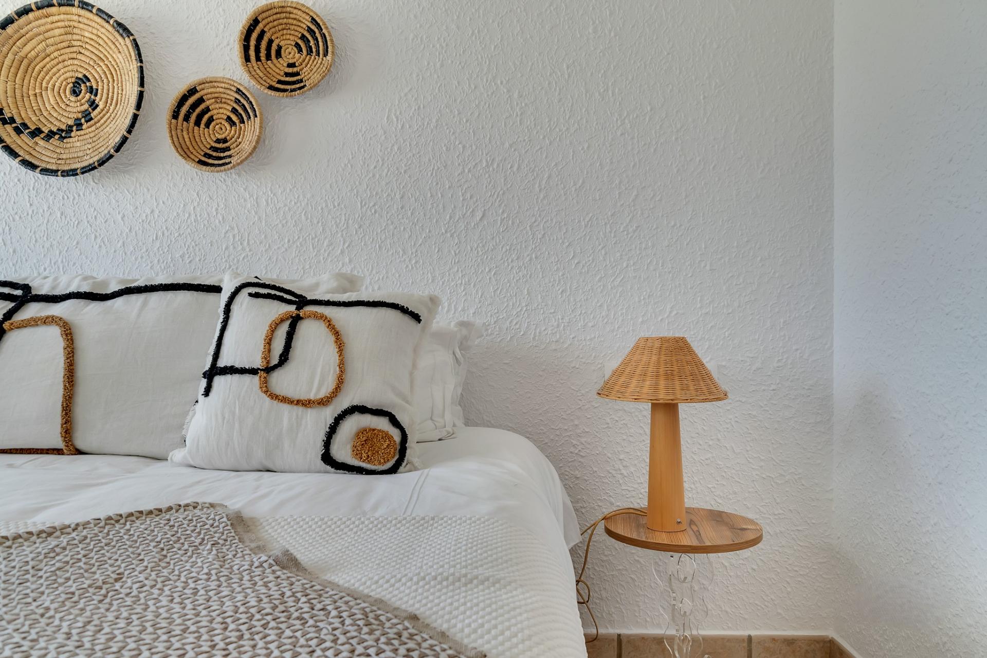 PROPERTY DETAILS Timeless Mediterranean Elegance This stunning villa is a masterpiece of classic Mediterranean architecture, seamlessly blended with contemporary interior styling. The white-painted façade, accented by Tosca stone details and natural wood, exudes warmth and character. Terracotta roof tiles add a rustic charm, while expansive terraces and arched windows enhance the home’s sun-drenched aesthetic. The villa’s impeccable presentation showcases a chic, modern décor infused with boho-chic influences, creating an atmosphere of understated luxury.