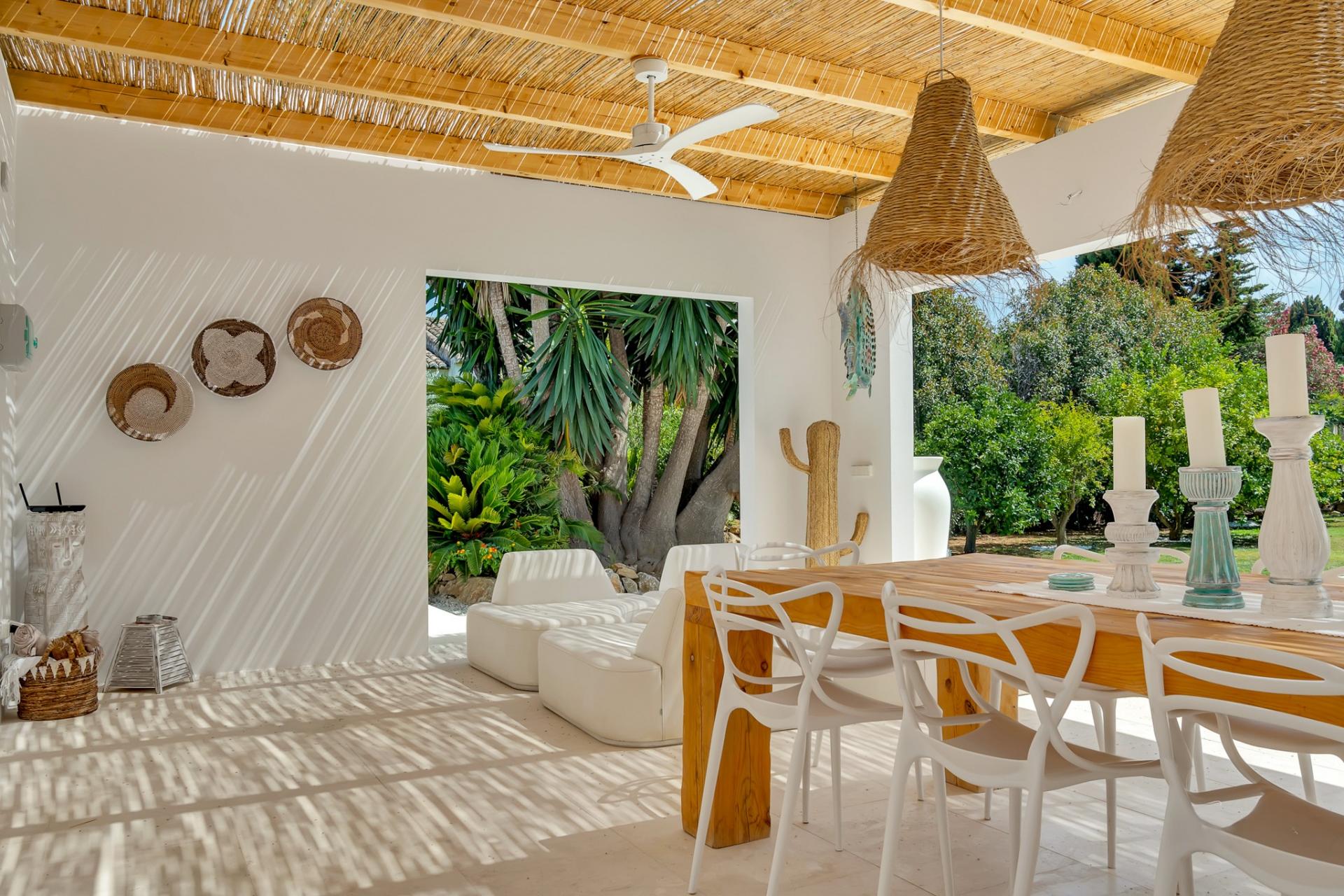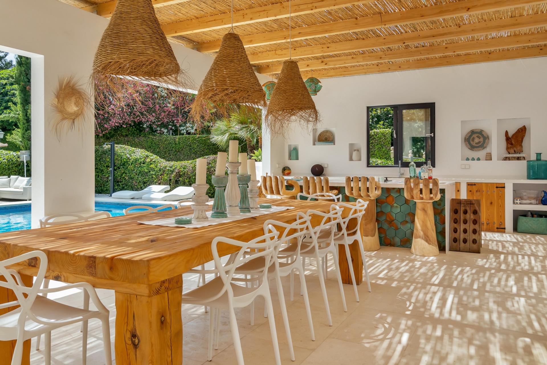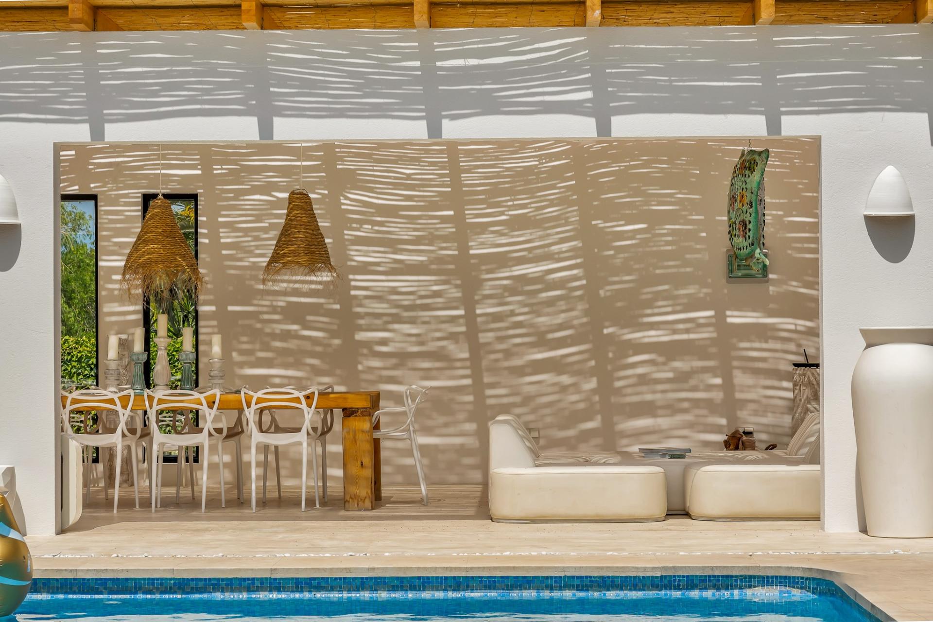 - Entertainment hub with summer kitchen, bar, dining area and chillout lounge with ceiling fan