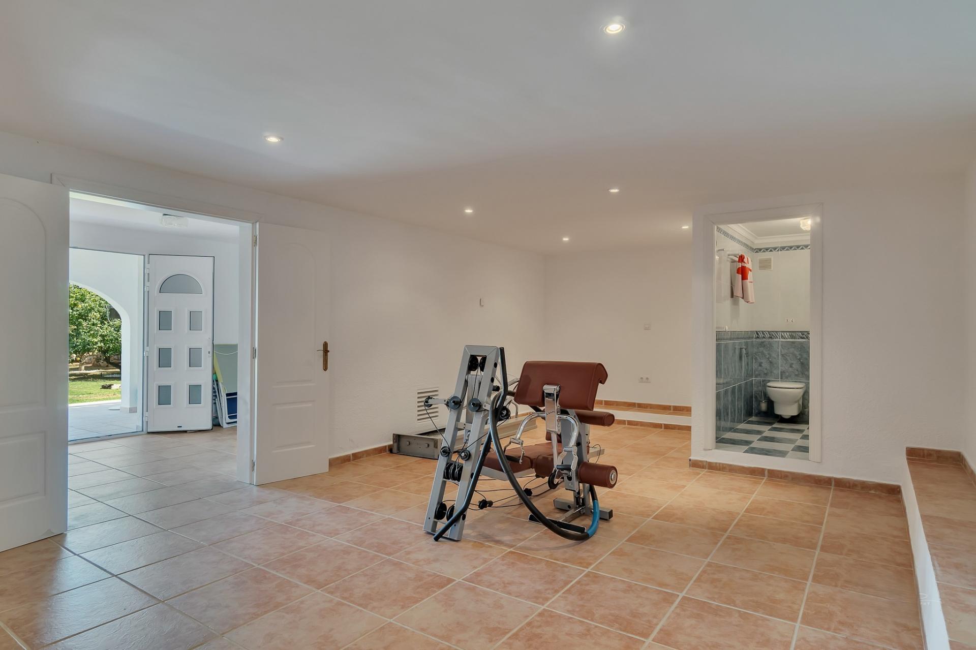 Versatile Lower-Level Retreat The villa’s lower level offers a large basement designed for entertainment and leisure. This space features a bar area, gym, and a shower room. With its private entrance, the area could easily be converted into a sixth bedroom or self-contained guest accommodation, offering remarkable flexibility.