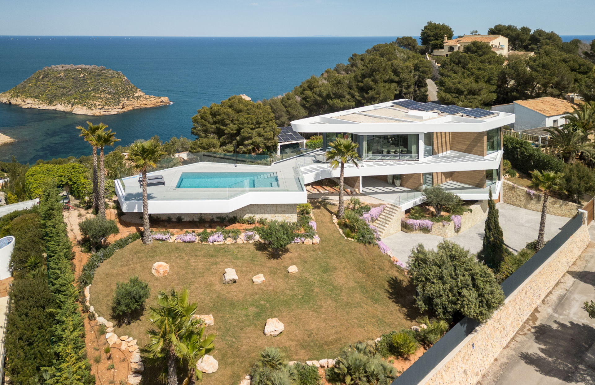 PROPERTY AT A GLANCE Brand new and ready to move into, this exceptional villa crowns a privileged seafront plot in one of Jávea’s most exclusive enclaves, offering breath-taking Mediterranean panoramas stretching to Ibiza on clear days. Impeccably finished and built to the highest specifications by a renowned luxury constructor, the property combines state-of-the-art energy efficiency with striking contemporary design.