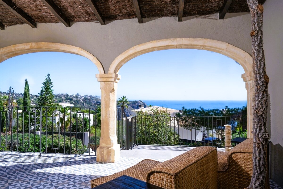 PROPERTY AT A GLANCE An exquisite fusion of modern artistry and timeless Mediterranean charm, this beautifully reimagined five-bedroom villa is an exceptional offering in one of Costa Blanca North’s most coveted coastal enclaves. Nestled above the azure waters near Granadella beach, the property has been fully reformed to the highest standard, blending natural materials and refined textures with bold design elements and bespoke craftsmanship. Terracotta tiles, arches, and wrought-iron details honour its Spanish heritage, while clean lines, curated artwork, and high-end finishes introduce a luxurious, contemporary edge. With sea and mountain views, multiple entertaining terraces, a floating deck above a heated saltwater pool, and serene wellness zones, this villa delivers an effortless indoor-outdoor lifestyle designed for the discerning buyer.