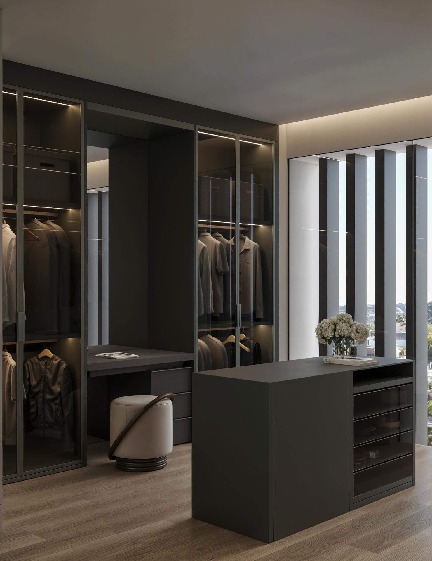 A dedicated entertainment floor features a bespoke cinema lounge and bar area, perfect for hosting. Residents also benefit from a fully equipped home gym that caters to both daily fitness and wellness routines.