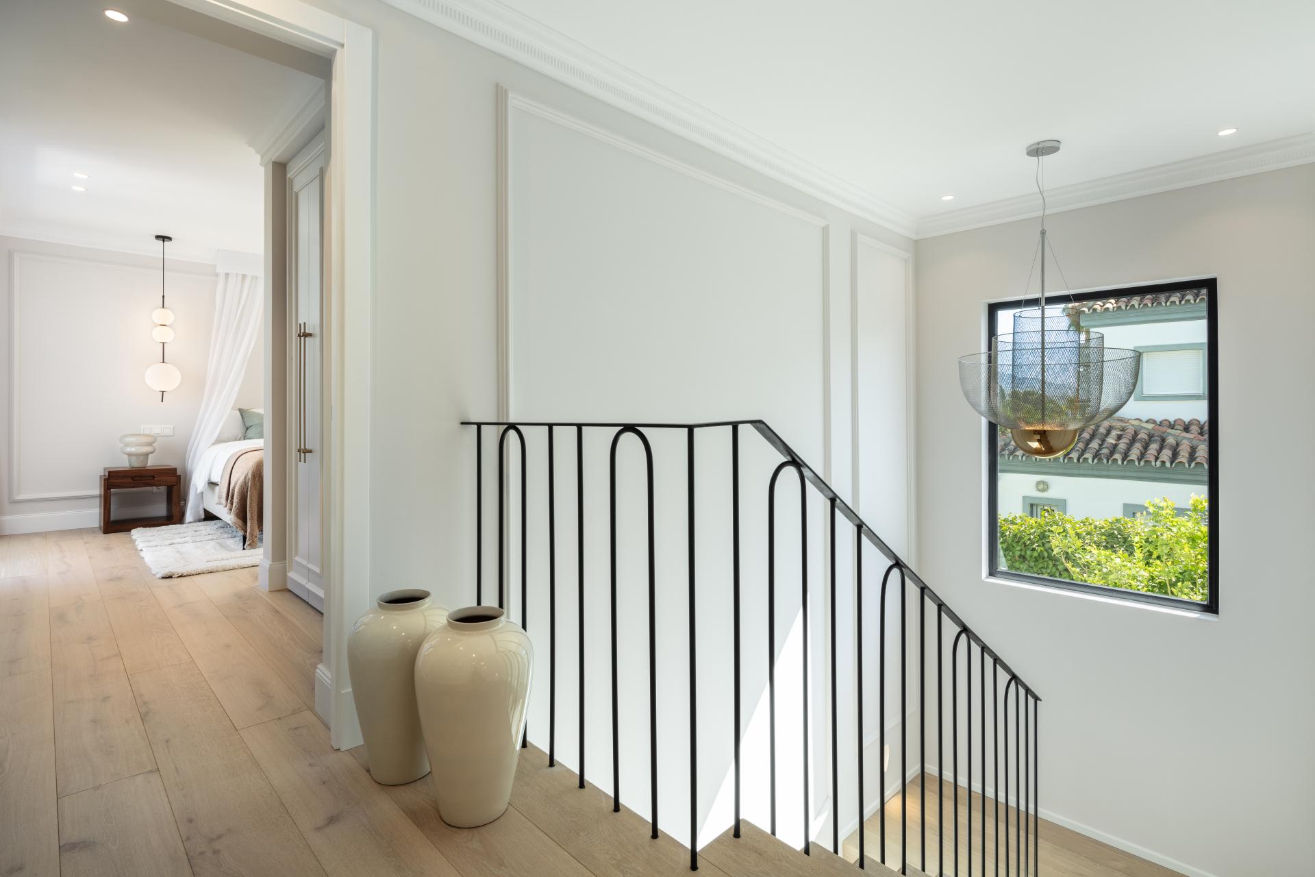 The property offers an array of outdoor terraces, perfect for alfresco dining, BBQs and relaxed chill-out areas, allowing residents to enjoy Marbella's pleasant weather throughout the year. Surrounded by lush greenery, the villa ensures utmost privacy from neighbouring properties. The pool's distinctive shape, connected to a jacuzzi, adds visual appeal. The circular theme continues throughout the property, seen in the ground floor's arched windows that connect the living area to the terrace. Inside, the interiors exude elegance with refined decorations and attention to detail. Luscious wood flooring and arches add character while complementing the property's curvature theme. The open-plan layout facilitates a seamless flow between interior spaces, while ample windows fill the property with natural light. The fully equipped kitchen showcases immaculate carpentry that blends beautifully with the selection of marble and a stunning central kitchen island. The informal living room features a long sofa that mimics the dome's curved shape, creating an ideal space for family gatherings. Each of the 5 bedrooms is meticulously designed to prioritise luxury and comfort. The master bedroom is an epitome of elegance, with a luxurious bed and direct access to a private terrace. The master bathroom boasts a stunning double vanity, walk-in shower and bathtub adorned with the same exquisite marble featured in the kitchen. Situated on an ample plot in the sought-after area of Aloha, the villa offers breathtaking views of La Concha mountain and convenient access to a wealth of amenities within Nueva Andalucia's Golf Valley.